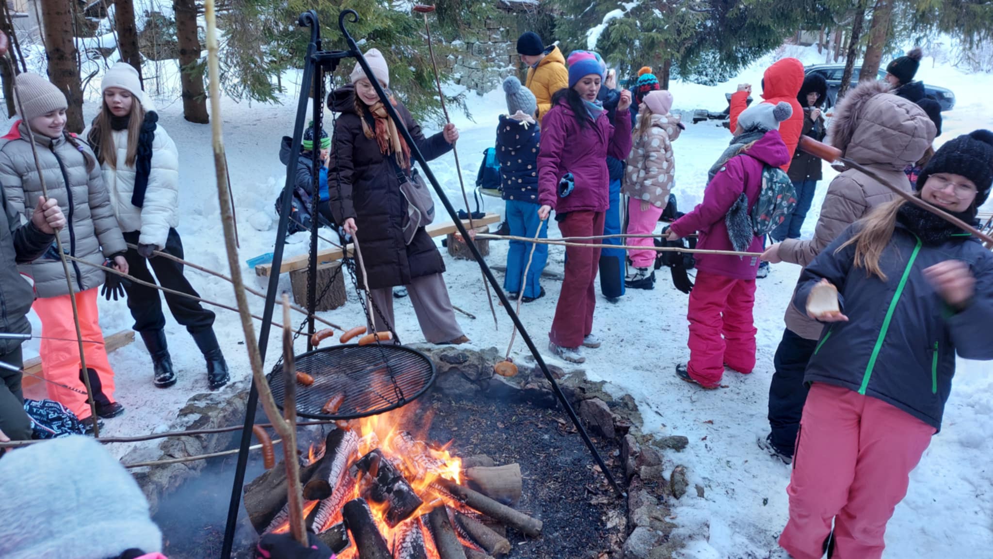 Dopisała nam idealna zimowa pogoda! Słońce radośnie świeciło prosto w oczy, mróz delikatnie szczypał w policzki, a wśród drzew panowała cisza i prawdziwie magiczna atmosfera. Śniegu było pod dostatkiem, więc sanie sunęły jak z bajki, a krajobrazy wokół wyglądały jak z pocztówki!  Po emocjonującym kuligu przyszedł czas na wspólne ognisko i zabawy na śniegu.