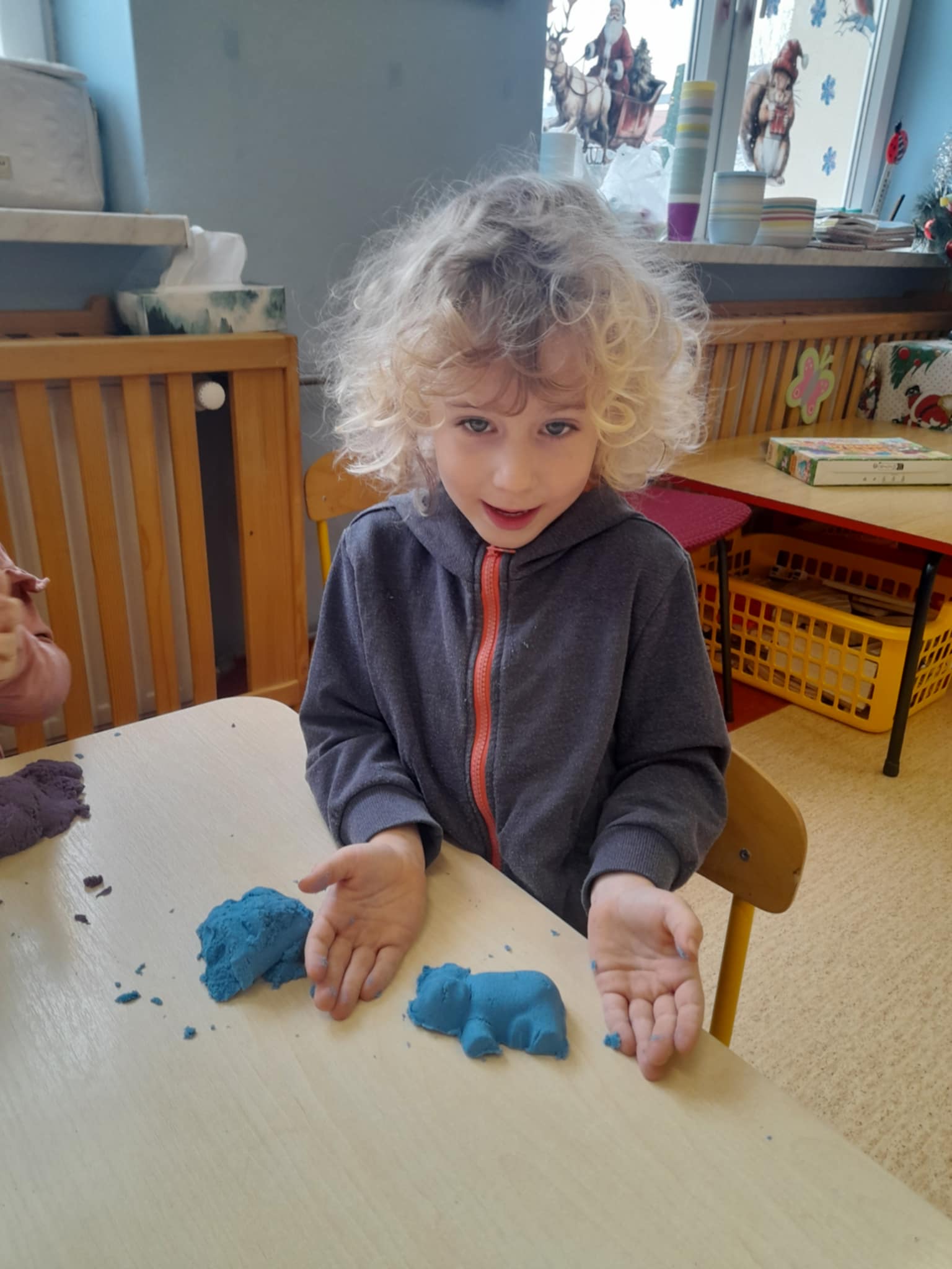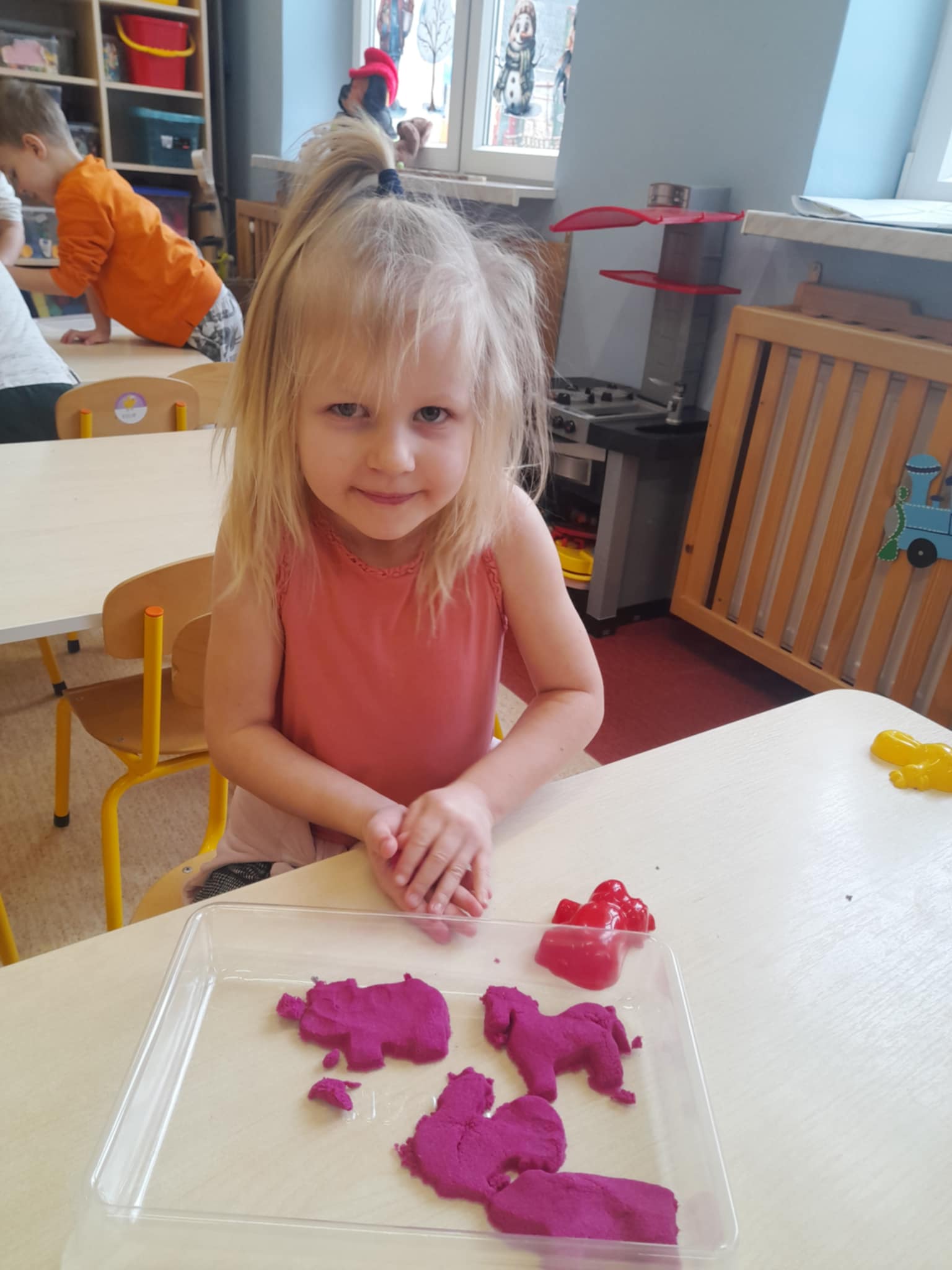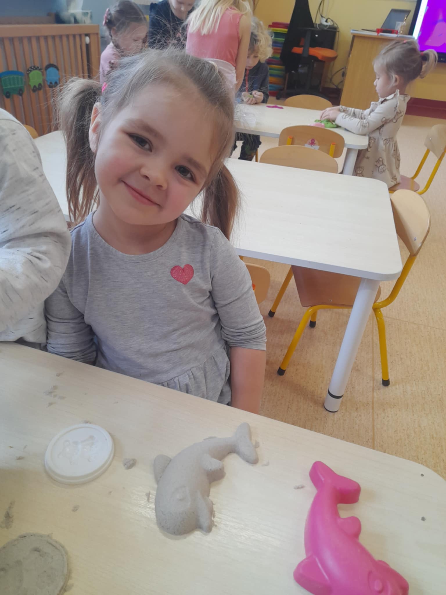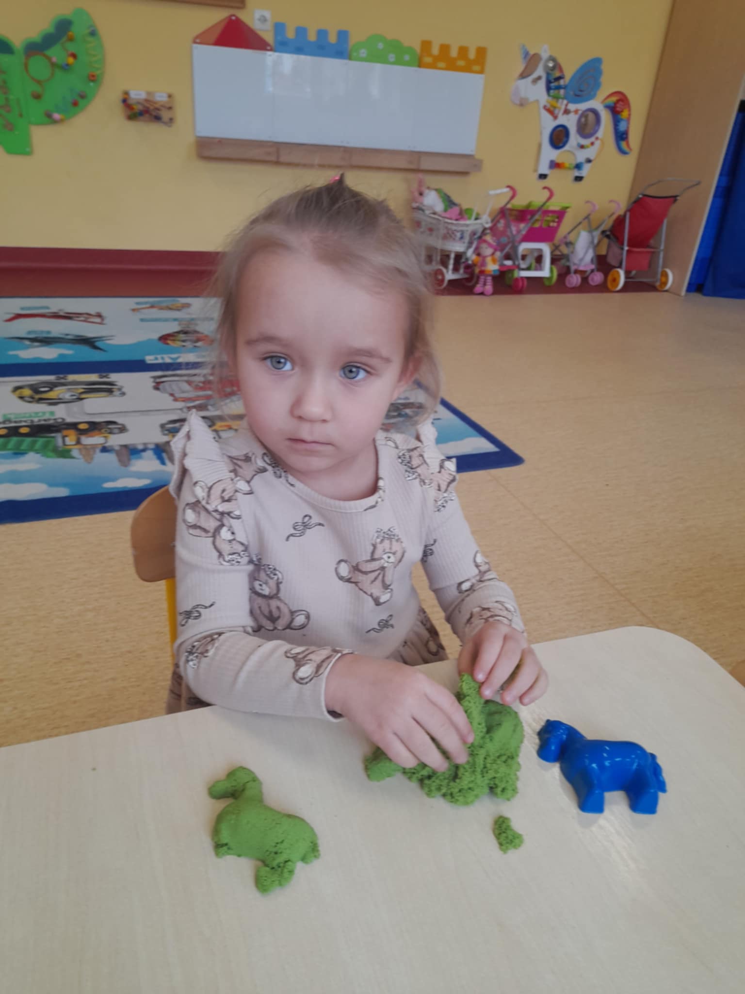 Maluchy nie próżnują! Dziś było lepienie, ugniatanie i mnóstwo radości – zabawy z piaskiem dynamicznym pochłonęły naszych najmłodszych bez reszty. To świetna okazja do rozwijania wyobraźni, sprawności rączek i kreatywności… a przy tym po prostu dobra zabawa!