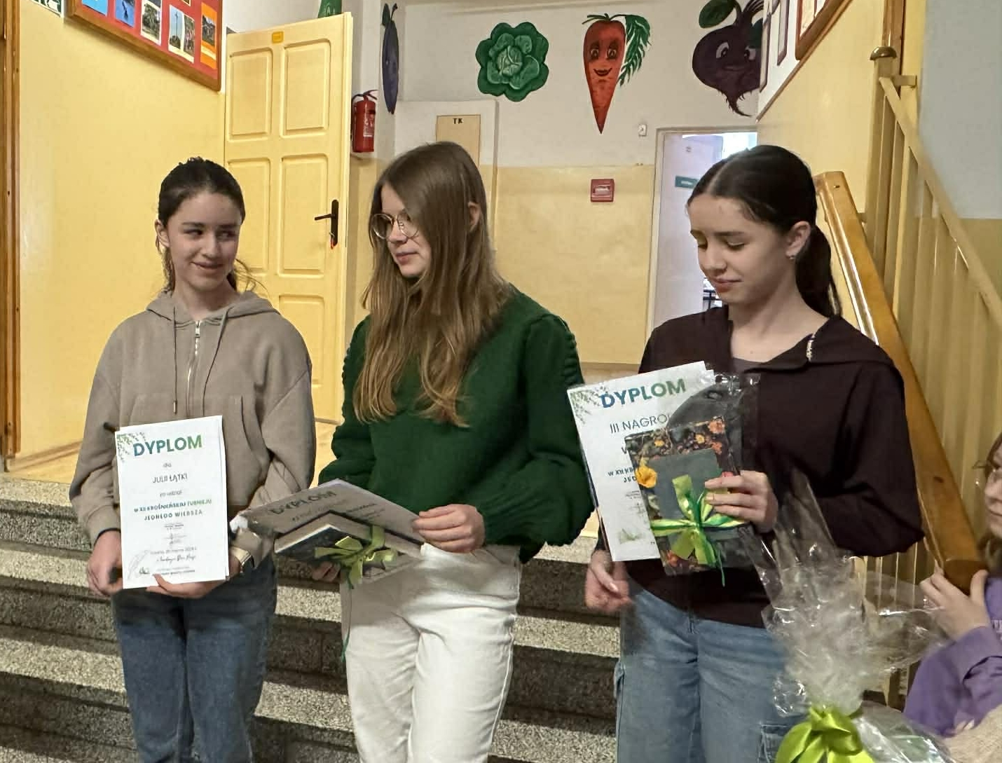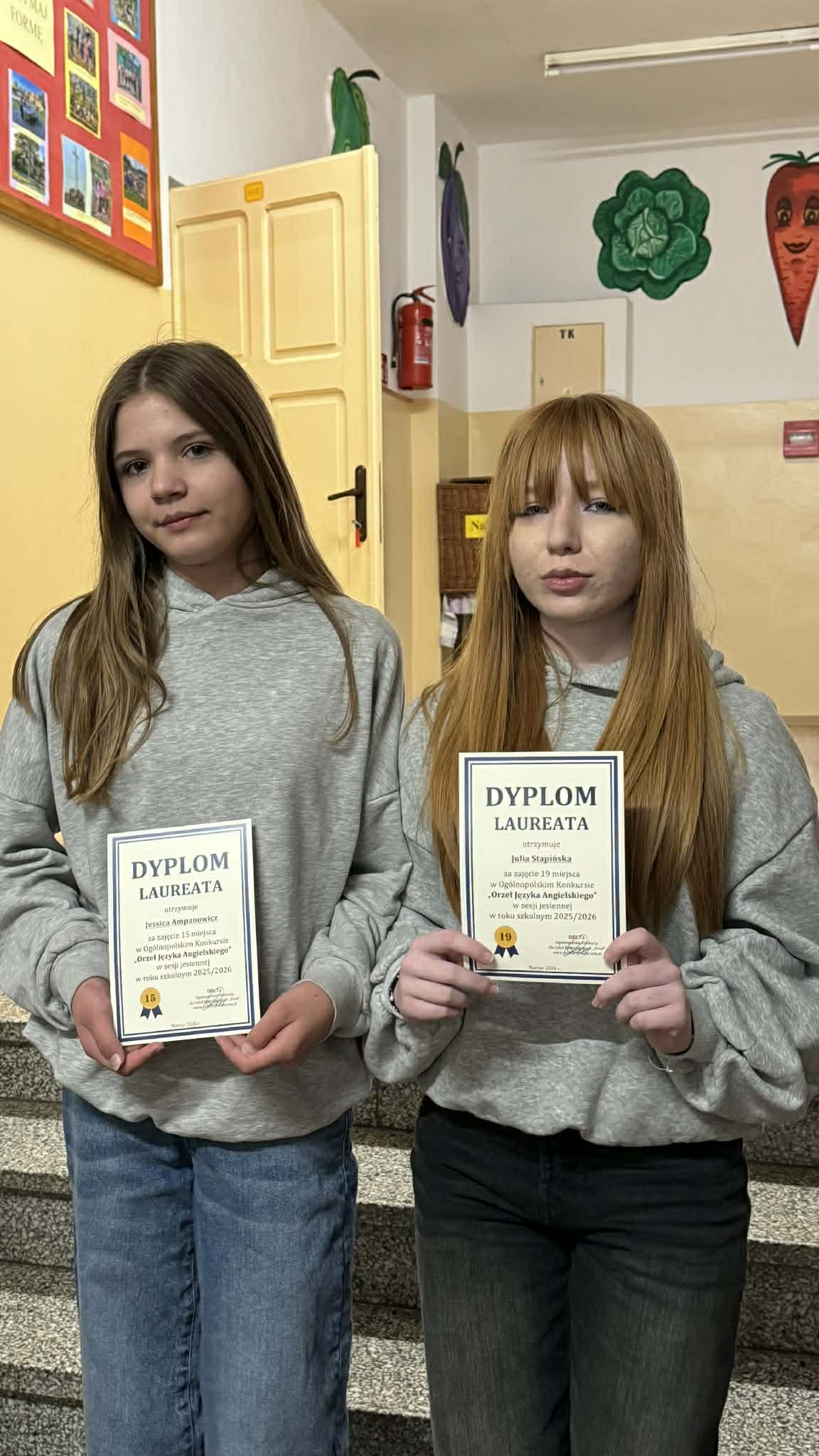 Wyniki przyszły w marcu, natomiast dziś rozdaliśmy dyplomy. Miło nam poinformować, że wśród uczestników konkursu mamy dwójkę laureatów. Są to Jessica Ampanowicz, która zajęła 15 miejsce w kraju oraz Julia Stapińska, która zajęła 19 miejsce w kraju. Ponadto w konkursie brali udział Eliza i Lena z klasy 3, Zuzanna z klasy 4, Alan i Milena z klasy 5, Marcin z klasy 6, Aleksander oraz Sandra z klasy 7, Agnieszka, Oliwia i Karol z klasy 8.