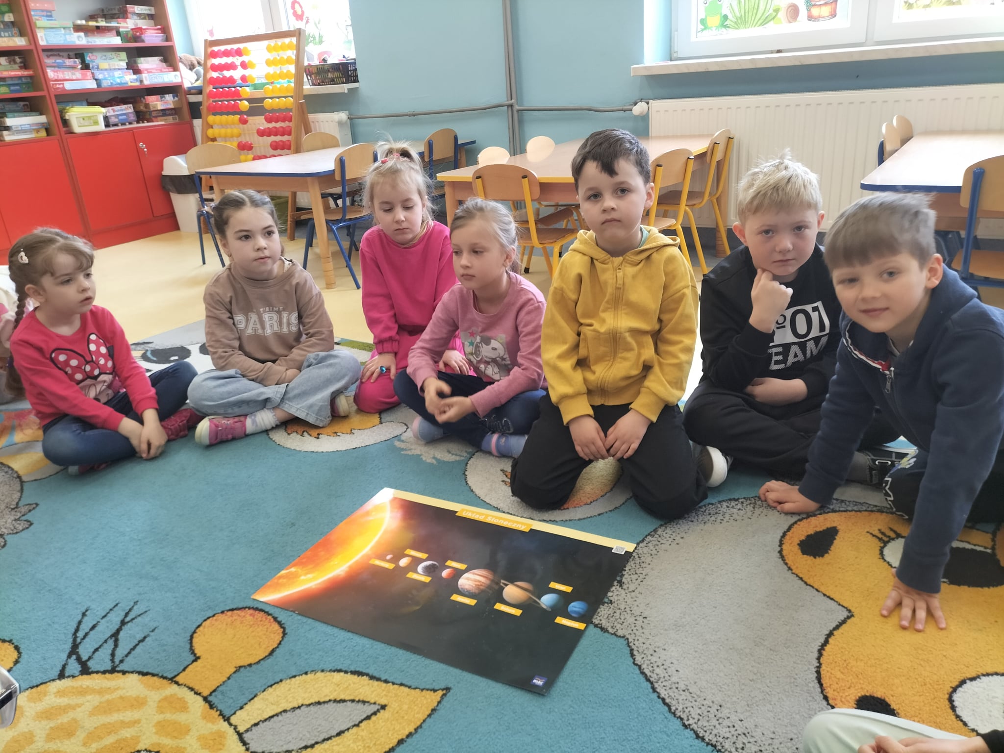 Cały tydzień upłynął nam pod znakiem niezwykłej podróży w kosmos! Dzieci z ogromnym zaangażowaniem poznawały planety Układu Słonecznego – dowiedziały się, czym się charakteryzują i co je wyróżnia. Podczas zajęć świetnie poradziły sobie z rozkodowywaniem wyrazów oraz głoskowaniem. Poznaliśmy także nową literę – R jak rakieta, a zwieńczeniem tej nauki było wykonanie własnych rakiet. Rozmawialiśmy o pracy astronauty i jego stroju, a także o Księżycu i jego fazach . Na zakończenie tygodnia dzieci wykazały się kreatywnością, tworząc ufoludki z rolek . Nie zabrakło też powtórki pór roku i miesięcy oraz zabaw na spostrzegawczość – dzieci bardzo dobrze radziły sobie z odnajdywaniem właściwych ilustracji. To był tydzień pełen nauki, zabawy i kosmicznych odkryć!