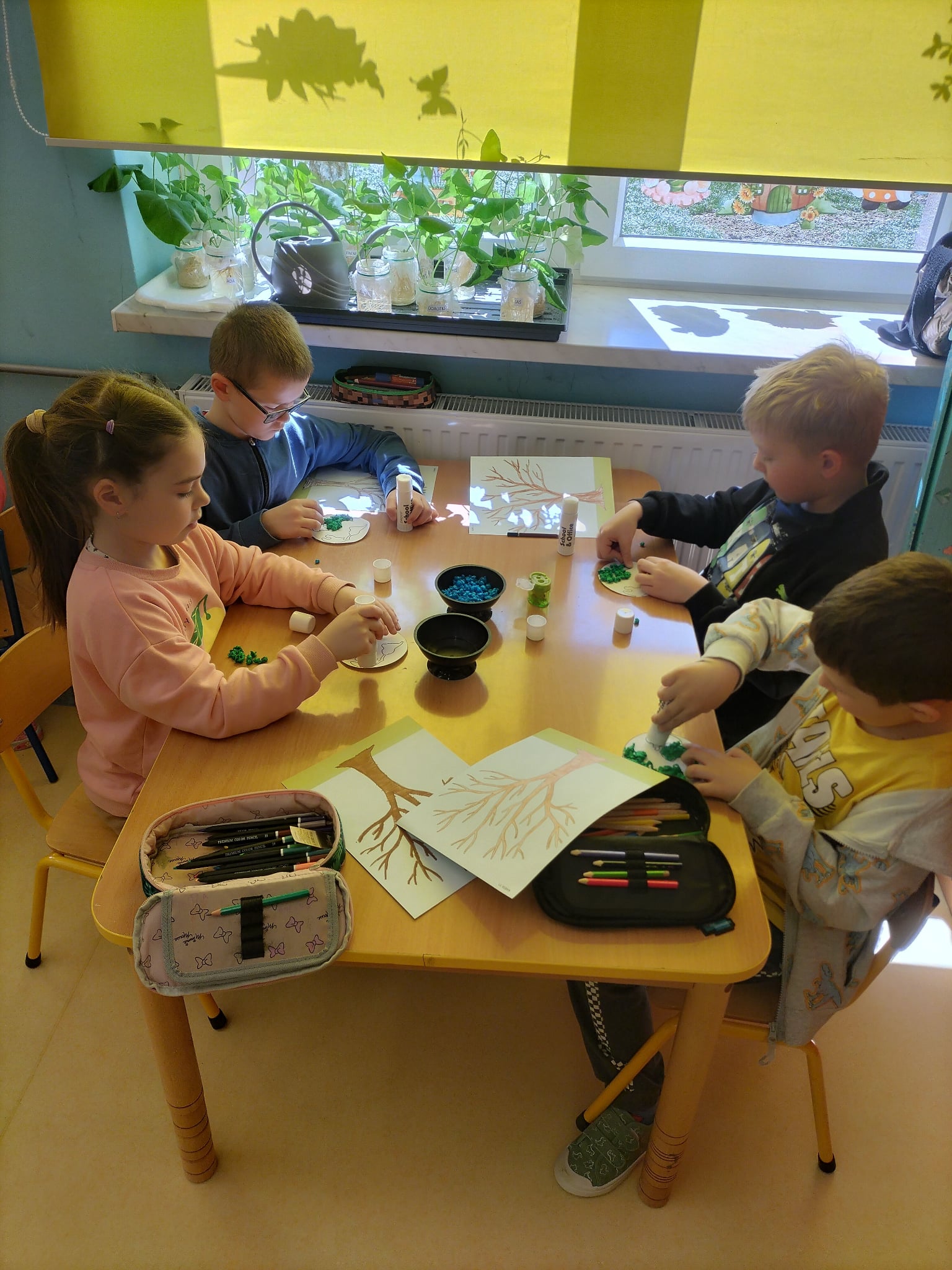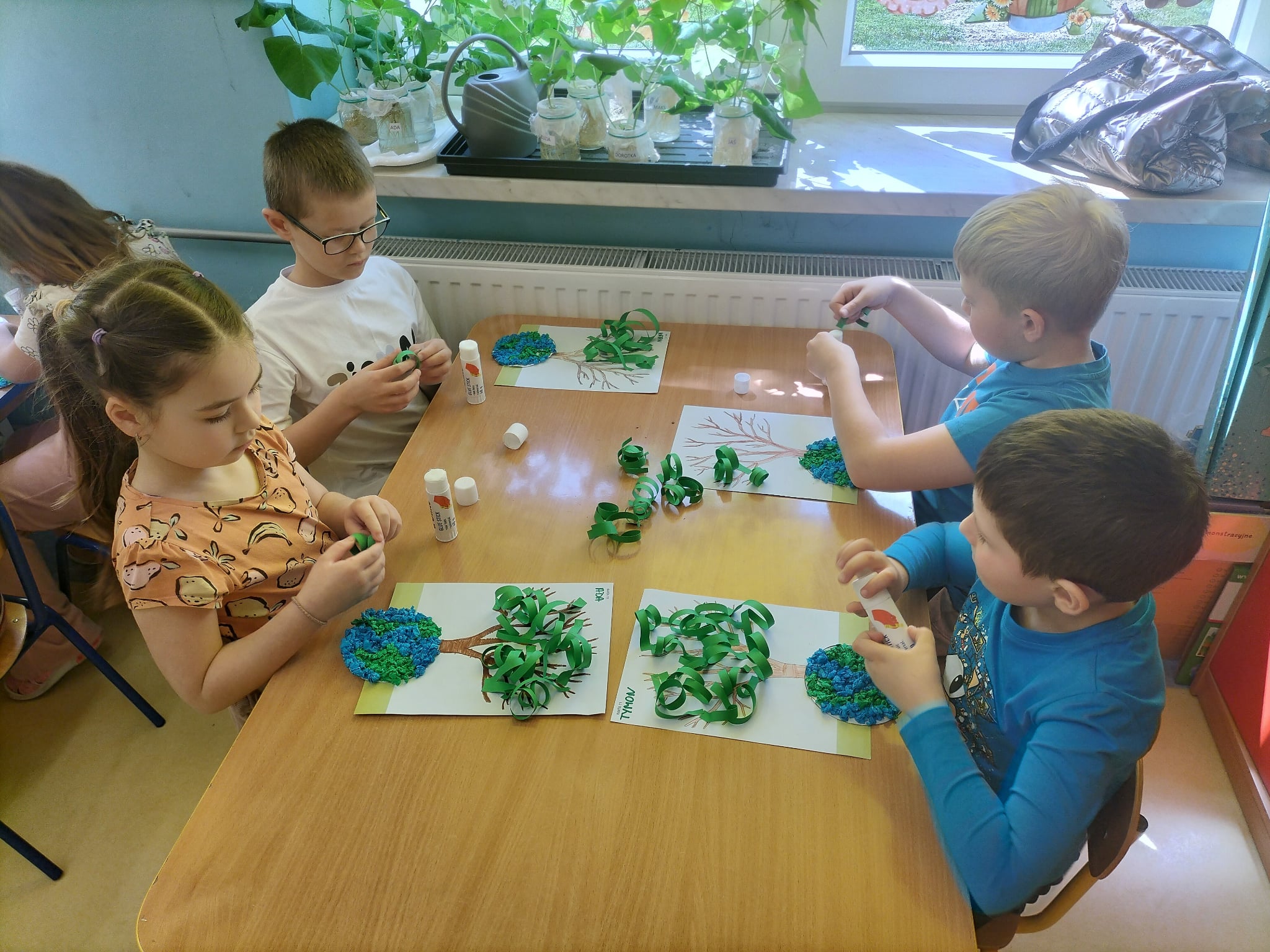 Na zakończenie powstały piękne prace plastyczne przedstawiające drzewa i Ziemię, które były podsumowaniem naszych zajęć. To był dzień pełen zaangażowania, nauki i dobrej zabawy!
