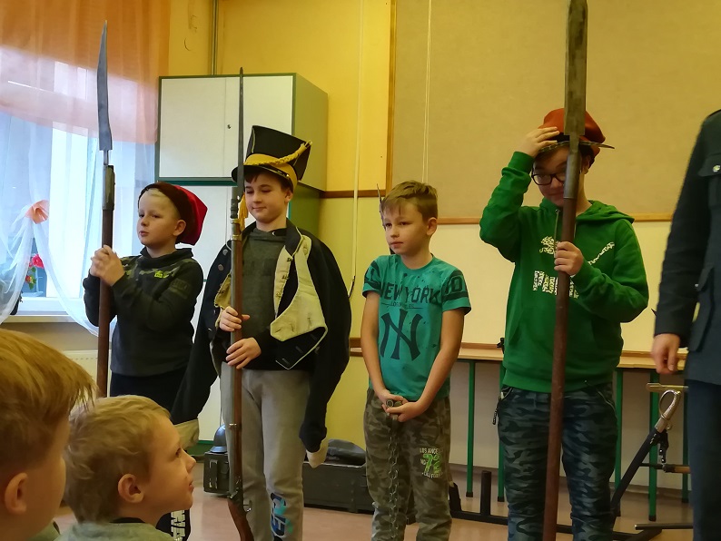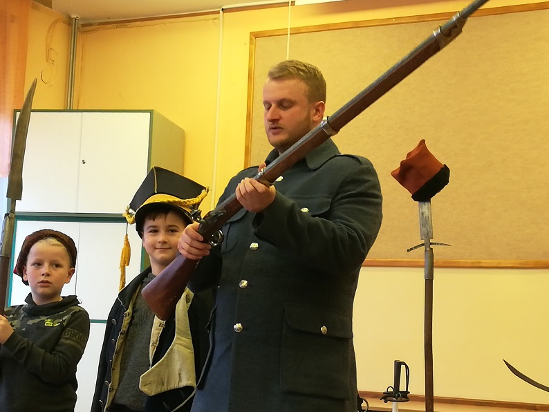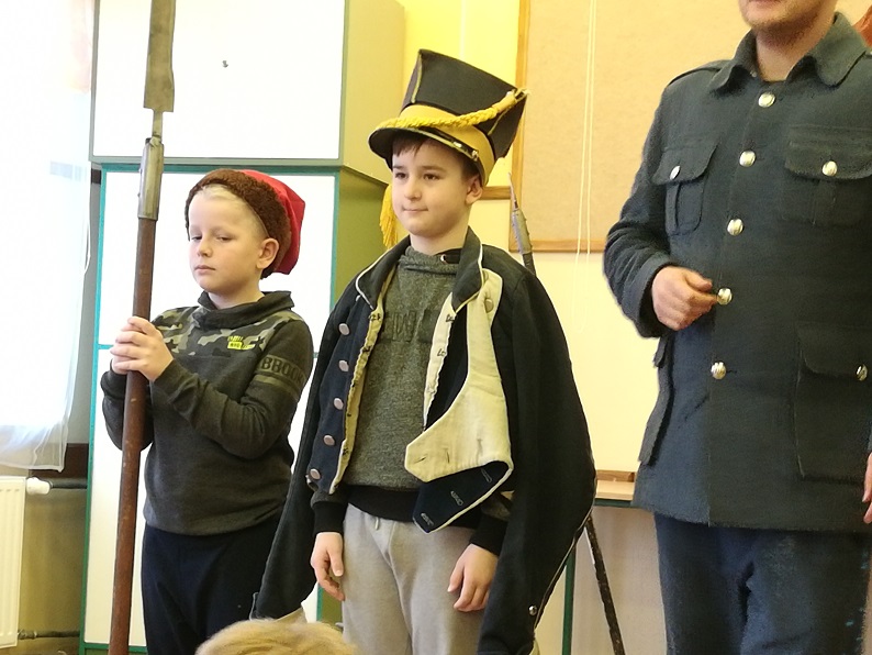 21 listopada 2018 r. gościliśmy w naszej szkole Grupę Artystyczną „Rekonstrukto” z pokazem historycznym „Ku Niepodległej”. Ta żywa lekcja historii poświęcona była tematyce narodowowyzwoleńczej.