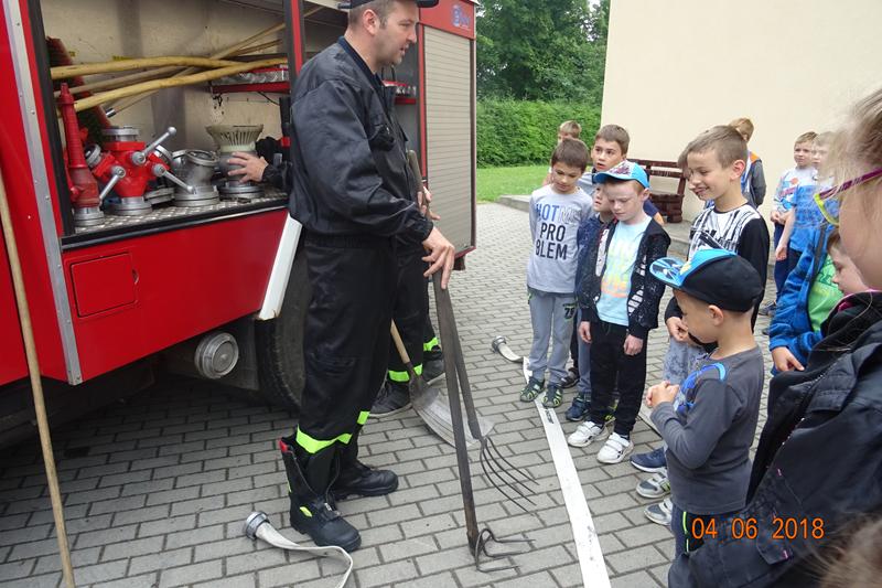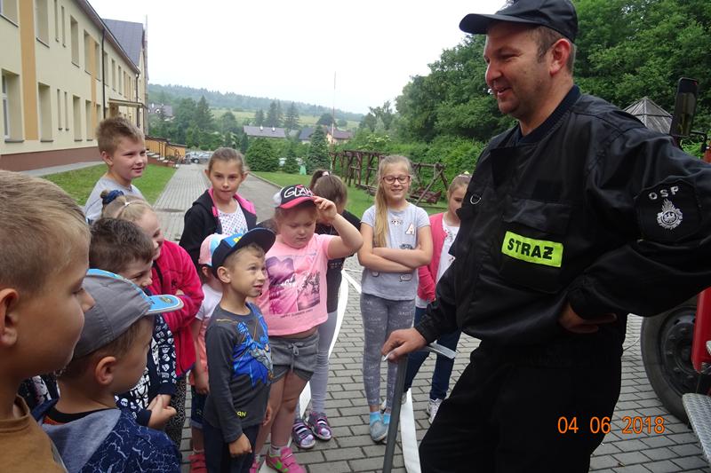 Dnia 4 czerwca nasza szkoła gościła strażaków z Ochotniczej Straży Pożarnej w Króliku Polskim. Uczniowie klas „0” oraz I-III szkoły podstawowej uczestniczyli w pogadance, którą poprowadzili prezes OSP druh Jan Urbanik oraz druhowie: Paweł Pitrus, Zdzisław Lorenc i Tomasz Pitrus.