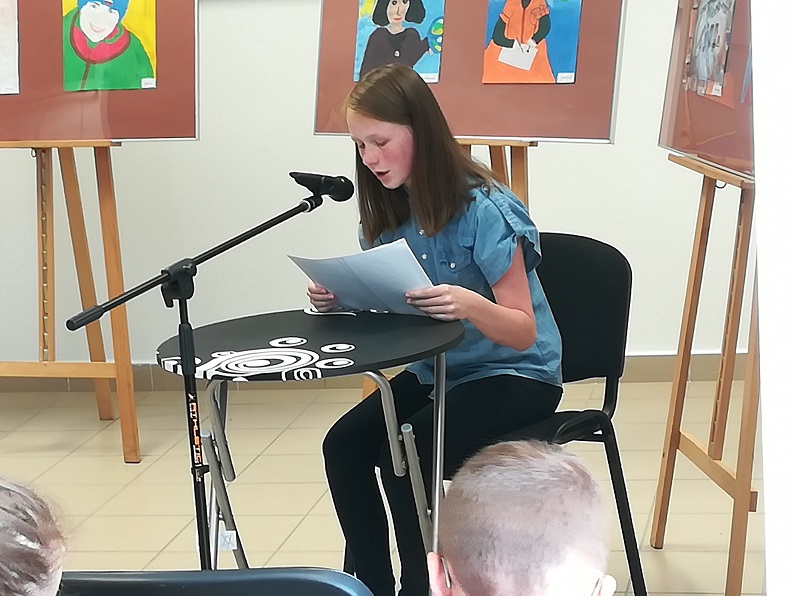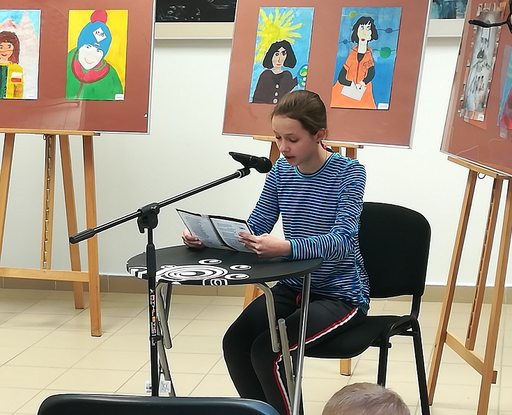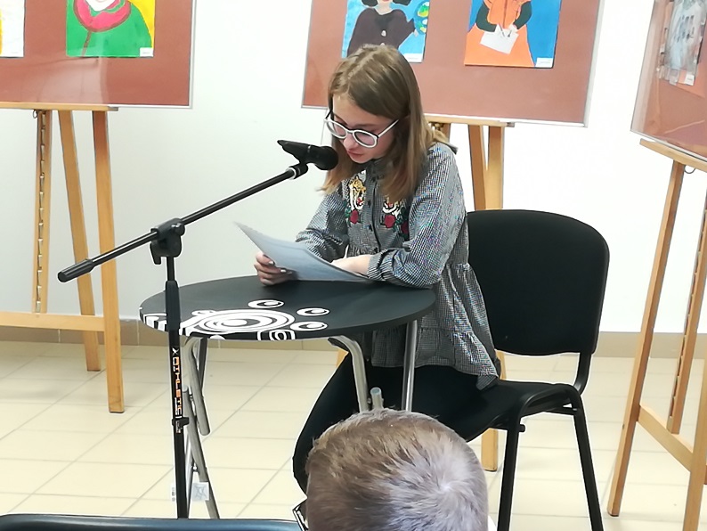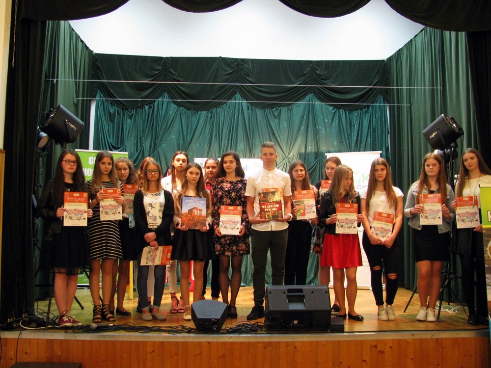 Naszą szkołę w konkursie reprezentowały trzy uczennice: Julia Gugała i Monika Smoleń z klasy VI oraz Otylia Borek z klasy VII. Ich zadaniem było wylosowanie i piękne odczytanie jednego tekstu o tematyce narodowej z przygotowanej przez organizatora listy. Jury oceniało interpretację utworu, poprawność czytania oraz jego płynność i wyrazistość.