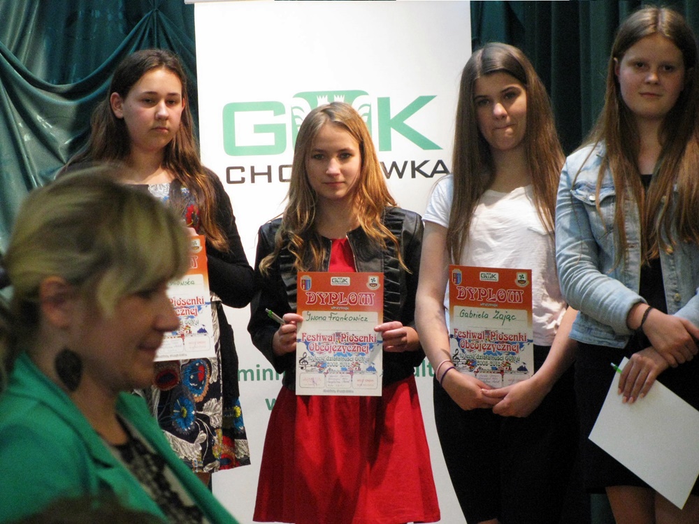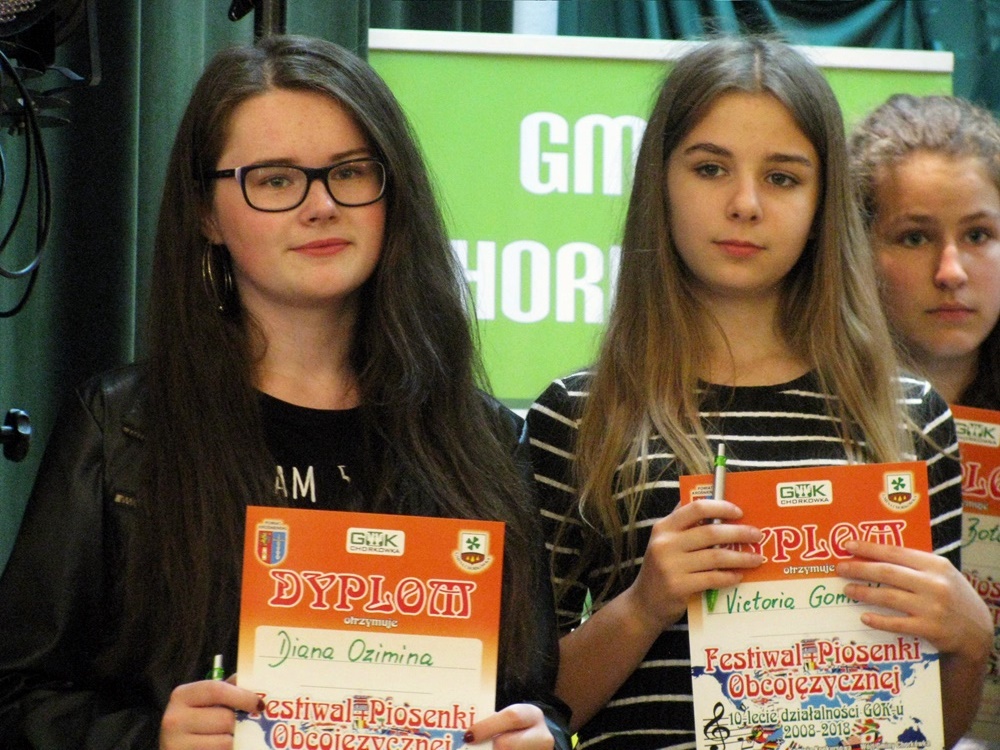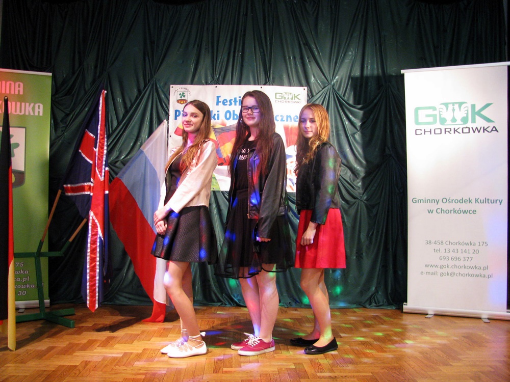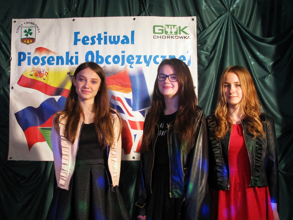 W dniu 10 maja 2018 roku trzy uczennice reprezentowały naszą szkołę na Festiwalu Piosenki Obcojęzycznej zorganizowanym przez Gminny Ośrodek Kultury w Chorkówce.