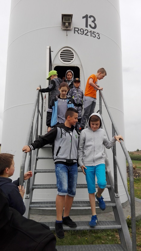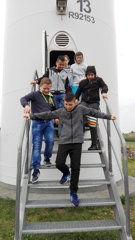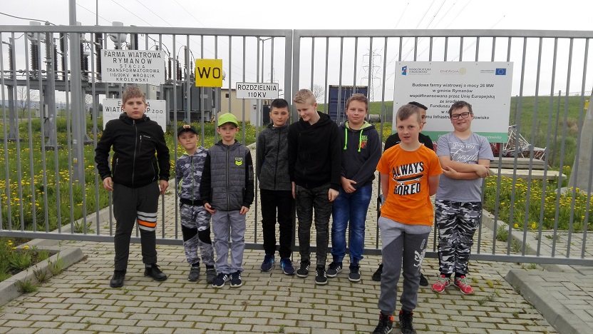 W dniu 27 kwietnia 2018 roku uczniowie klas V i VI w ramach realizacji programu „Na tropie zielonej energii” uczestniczyli w wycieczce edukacyjnej do Farmy Wiatrowej Rymanów w Stacji Transformatorowej we Wróbliku Królewskim.