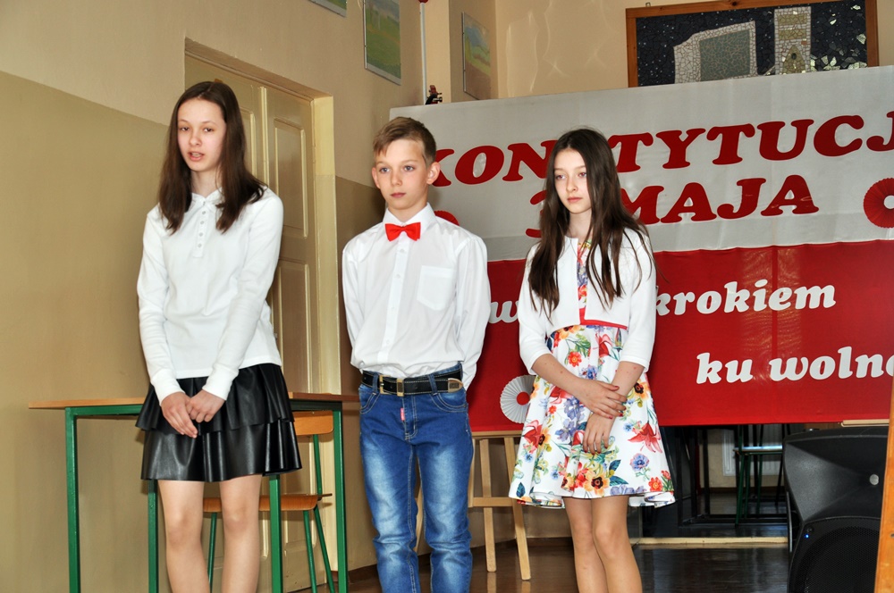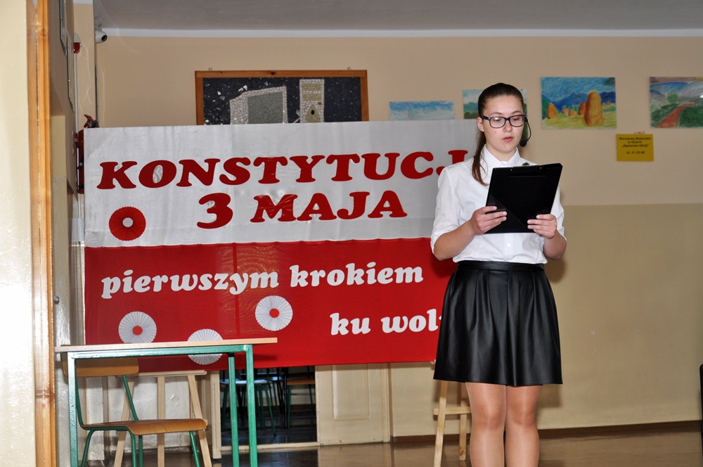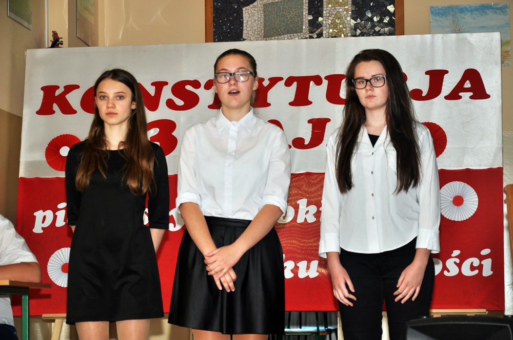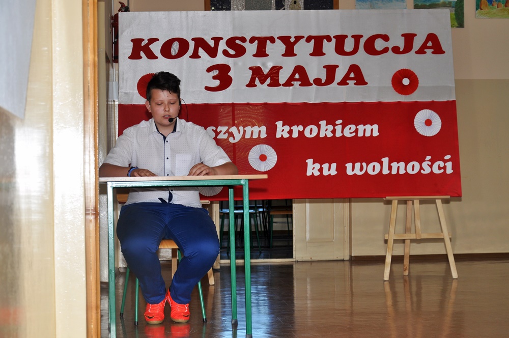 7 maja odbyła się w naszej szkole uroczysta akademia z okazji 227. rocznicy uchwalenia Konstytucji 3 maja. Uczniowie zaprosili swoich rówieśników do obejrzenia montażu słowno-muzycznego, by przybliżyć im wydarzenia, które rozegrały się w 1791 roku.