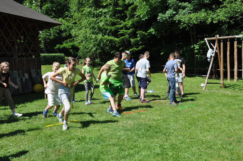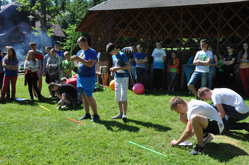 Dzień Dziecka w lesie? Dlaczego nie! Dnia 08.06.2016 r. uczniowie klas IV – VI oraz I-III gimnazjum wraz z opiekunami wybrali się na wycieczkę zorganizowaną w ramach obchodów Dnia Dziecka. Naszym celem był Ośrodek Edukacji Ekologicznej w Odrzechowej, gdzie w otoczeniu przyrody uczniowie rywalizowali między sobą w przygotowanych przez każdą klasę oraz SU konkurencjach sportowych.