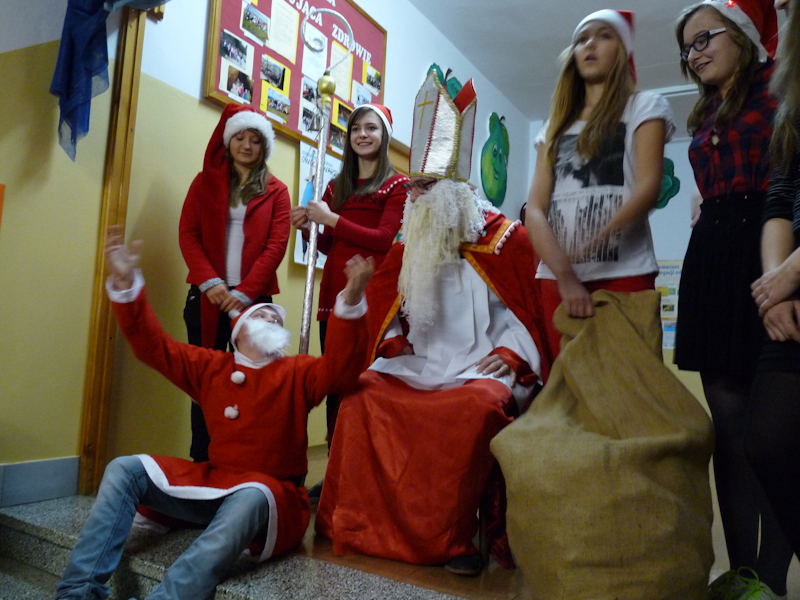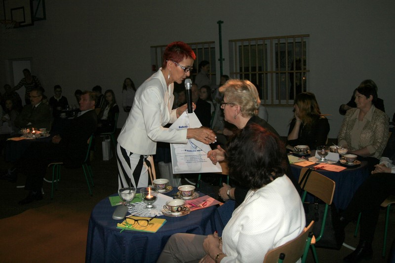 Obchody tradycyjnie rozpoczęła msza święta z udziałem szkolnego pocztu sztandarowego odprawiona przez księdza Wiesława Słotwińskiego. Dalsza część imprezy przeniosła się do sali gimnastycznej, która na czas jej trwania zamieniła się w kawiarnianą salę.