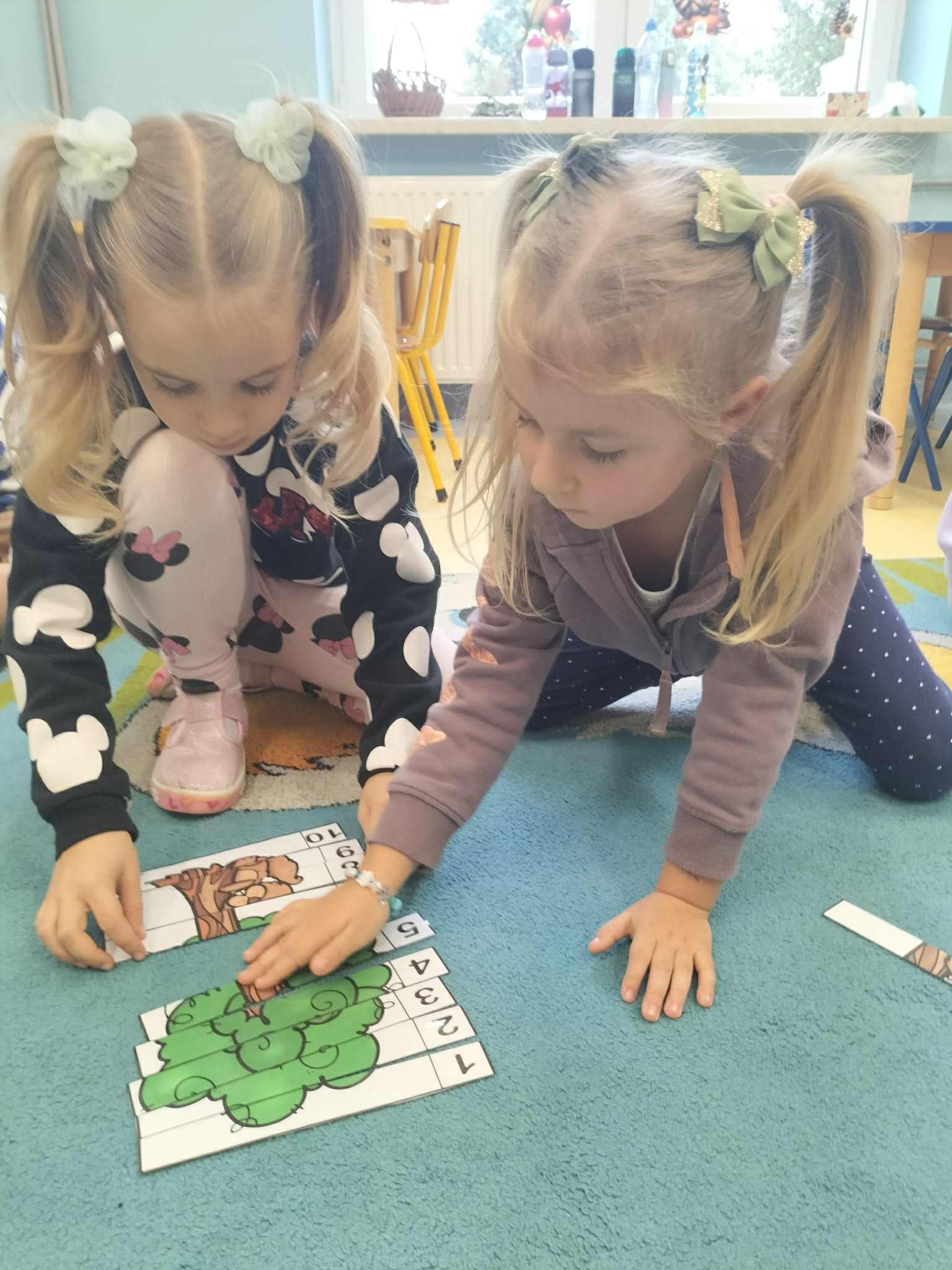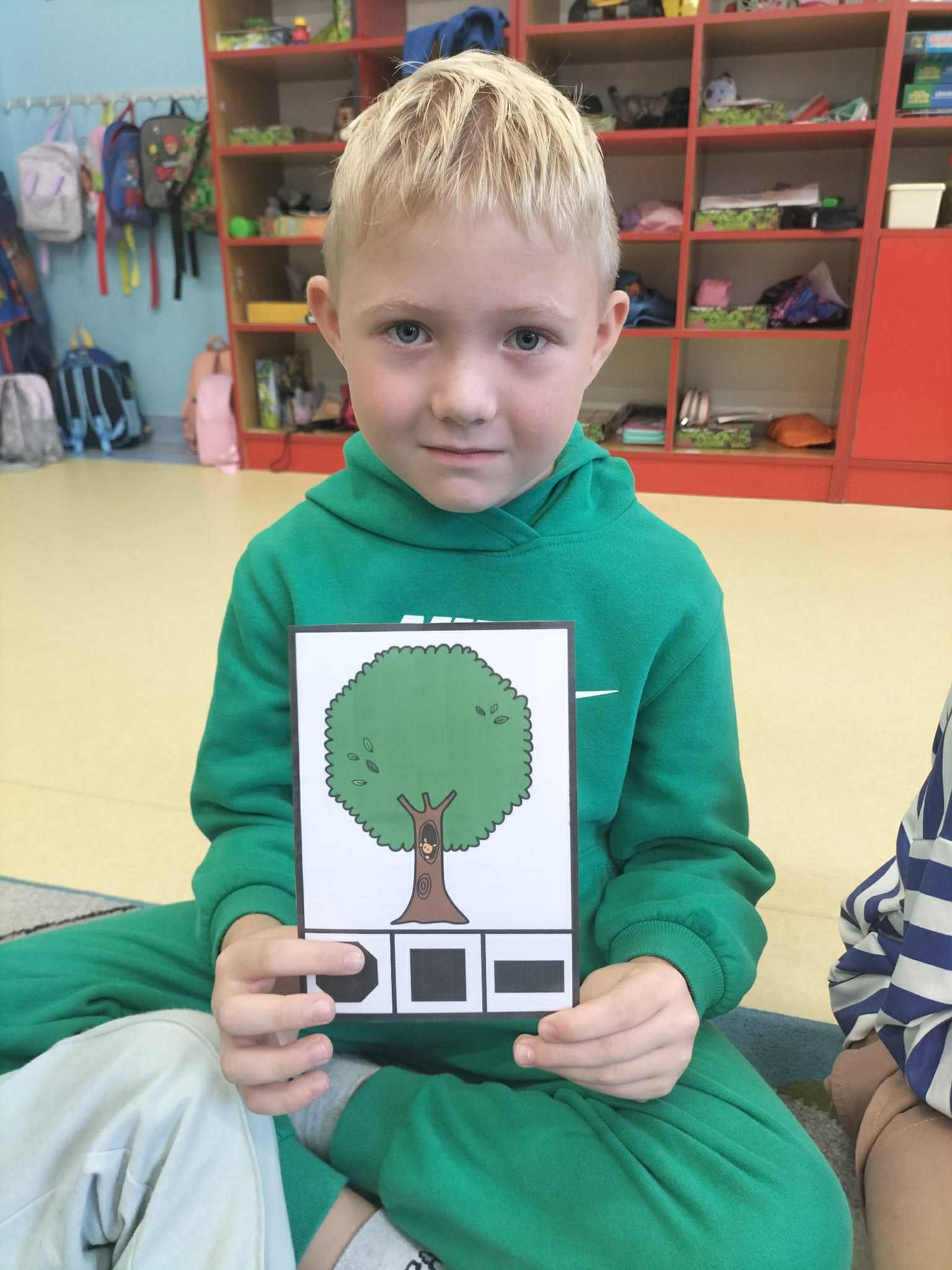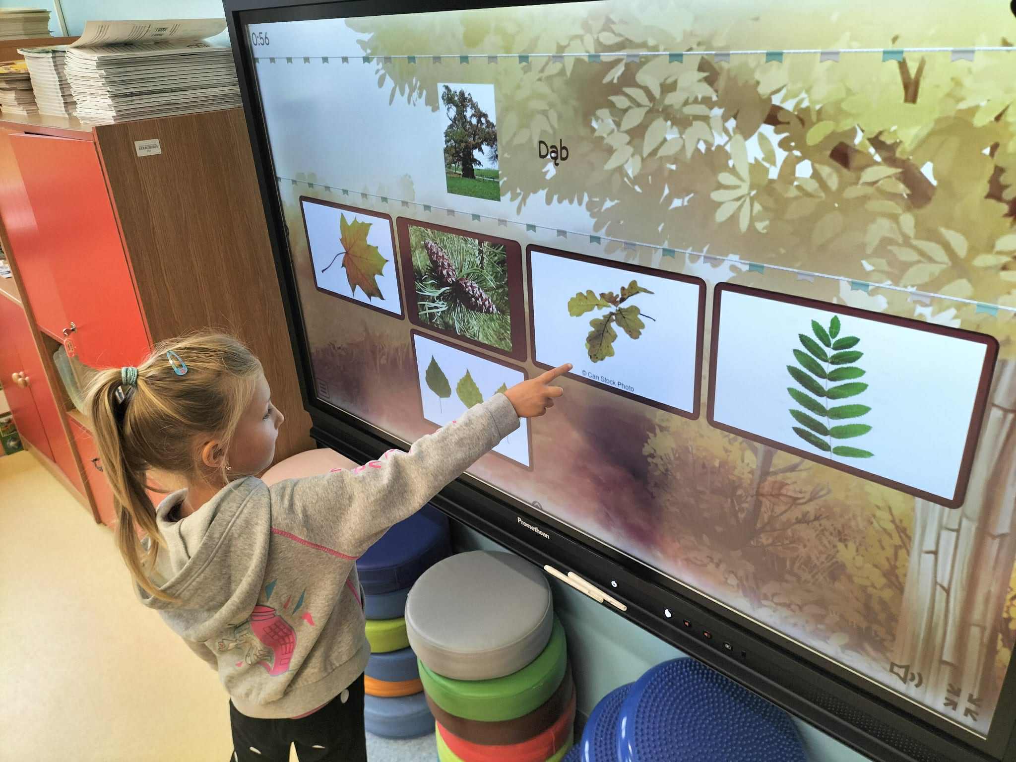 Poznały ich budowę oraz kolejne etapy wzrostu – od maleńkiego nasionka po dorodne, rozłożyste drzewo. Rozmawialiśmy też o tym, jak ważne są drzewa w przyrodzie i jak wiele pożytku dają człowiekowi, ale też jakie są zagrożenia dla drzew. Dzieci zapoznały się z podziałem drzew na liściaste i iglaste. W części praktycznej dzieci układały w parach puzzle, odszukiwały ich prawidłowych kształtów z figur geometrycznych, kodowały rysunek drzewa oraz rozwiązywały zadania na tablicy multimedialnej.