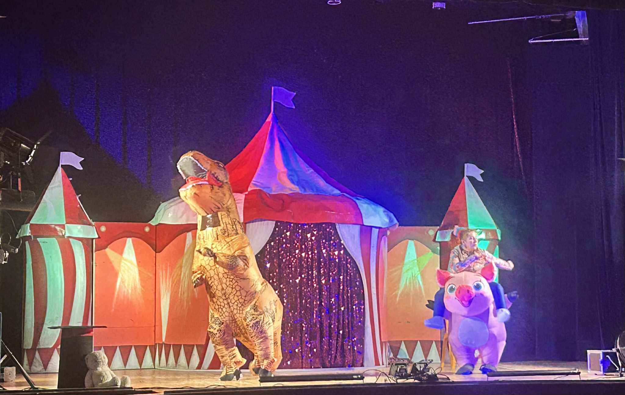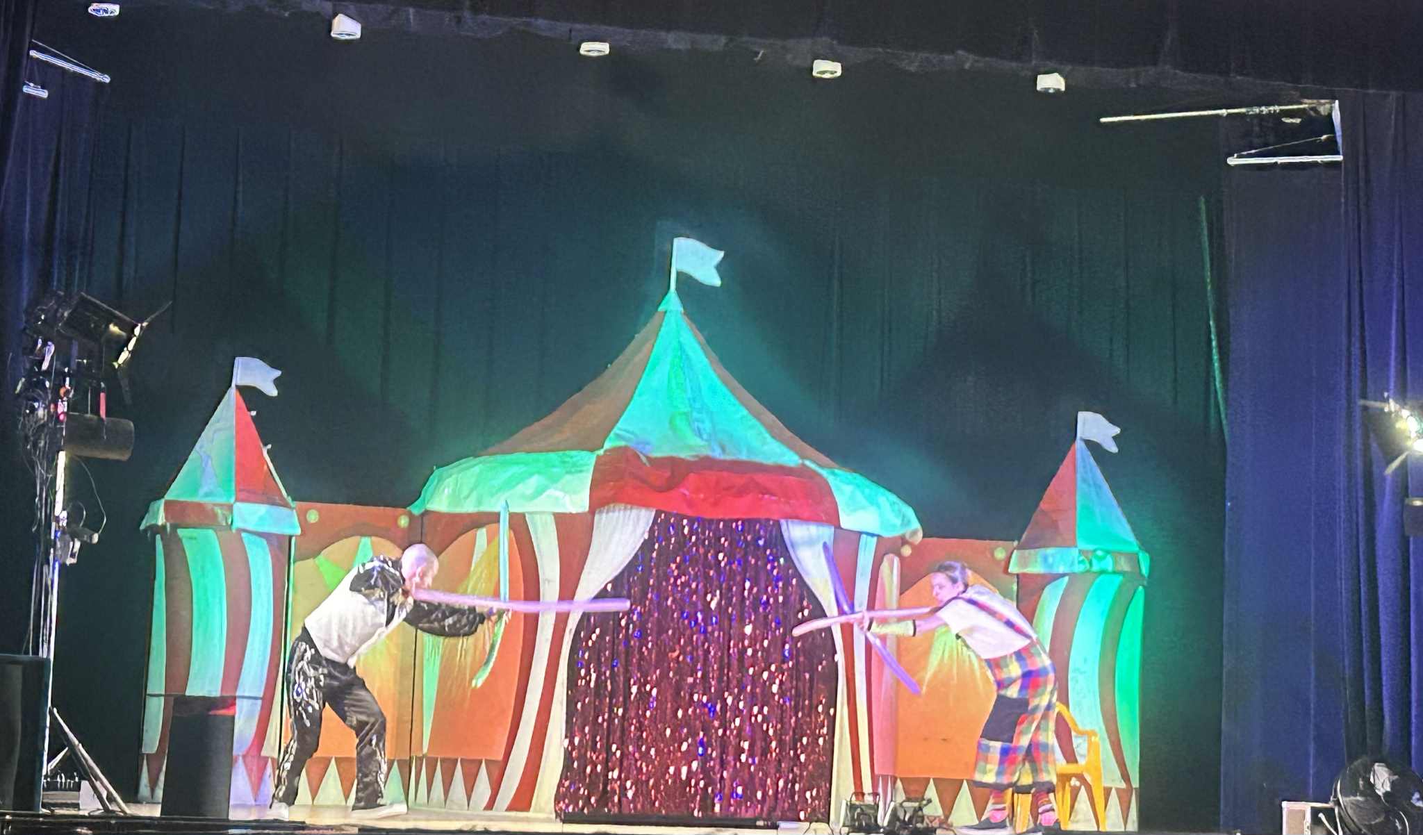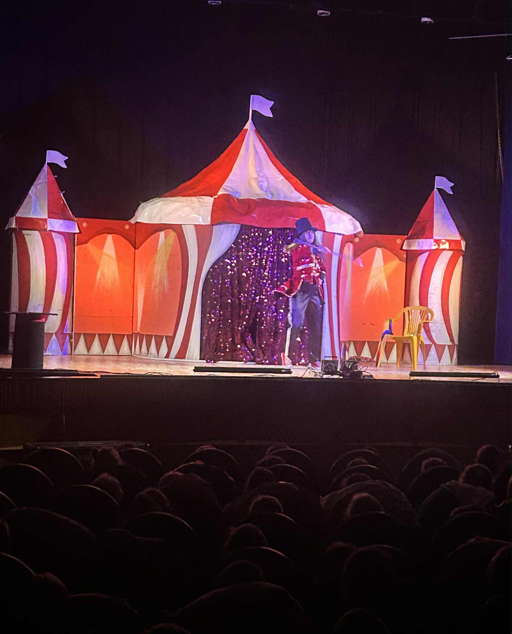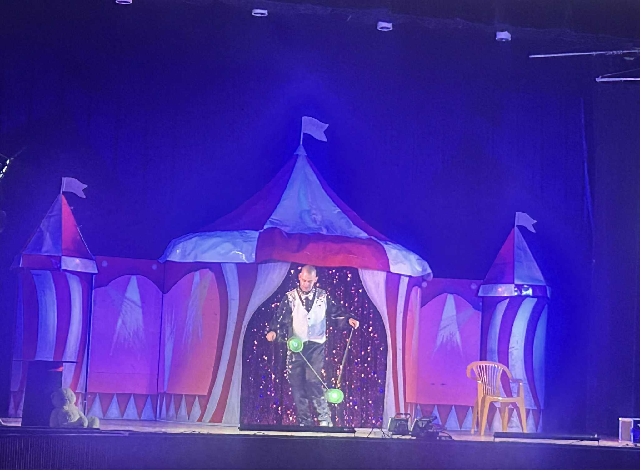 Na scenie działo się naprawdę wiele! Dzieci z zachwytem oglądały żonglerkę, ekwilibrystykę, iluzję oraz niezwykły pokaz świetlny, który rozświetlił salę feerią barw i dźwięków. To jednak nie wszystko – mali widzowie mogli również spróbować swoich sił w cyrkowych sztuczkach, co dostarczyło im mnóstwo radości i śmiechu.