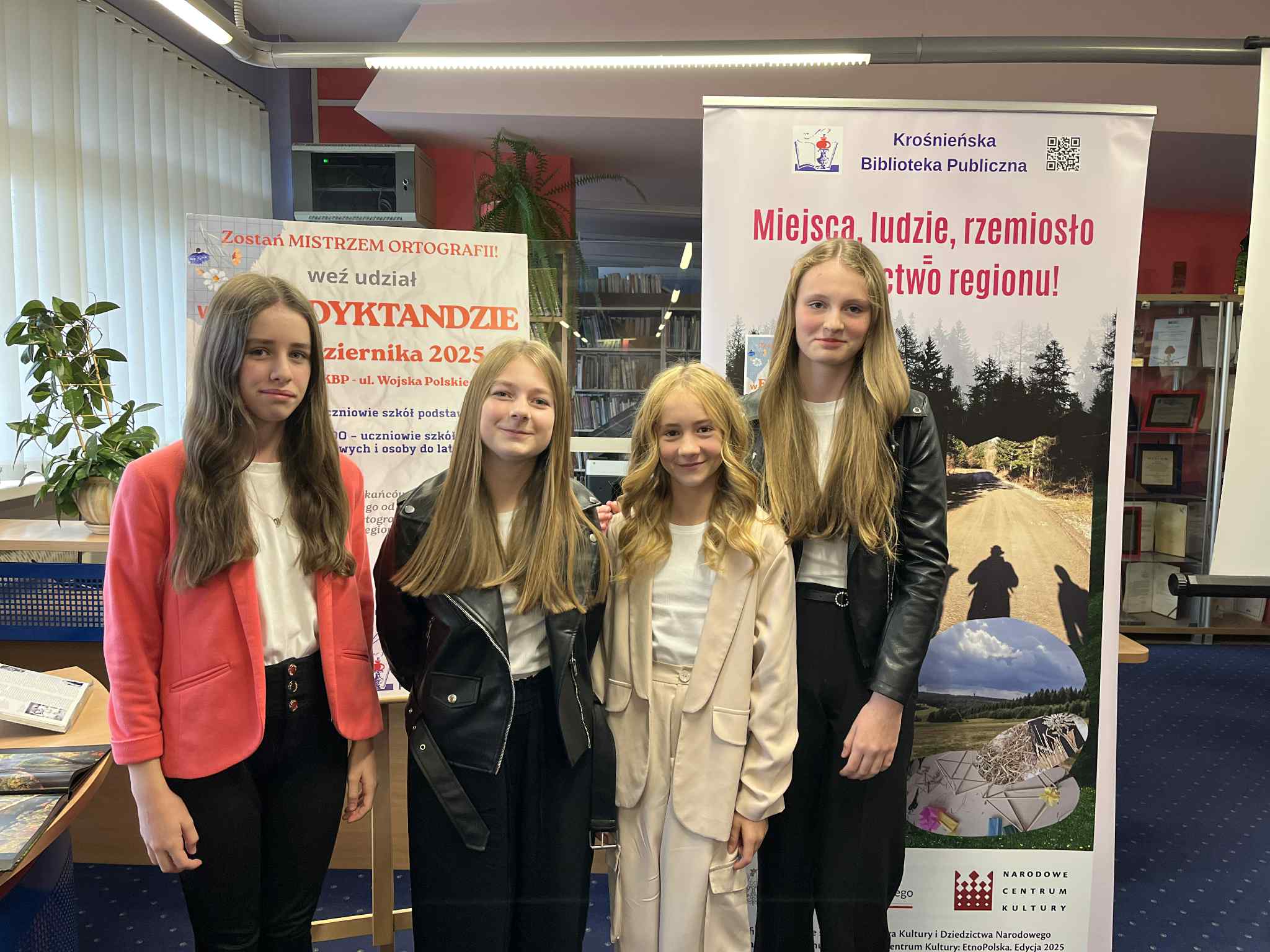 W środę 1 października cztery uczennice naszej szkoły (Milena Szałaj, Aleksandra Penar, Wiktoria Łątka, Agnieszka Urbanik) podjęły wyzwanie i wzięły udział w konkursie EtnoDYKTANDO zorganizowanym przez Krośnieńską Bibliotekę Publiczną. Była to niezwykle ciekawa ortograficzna podróż po regionie!