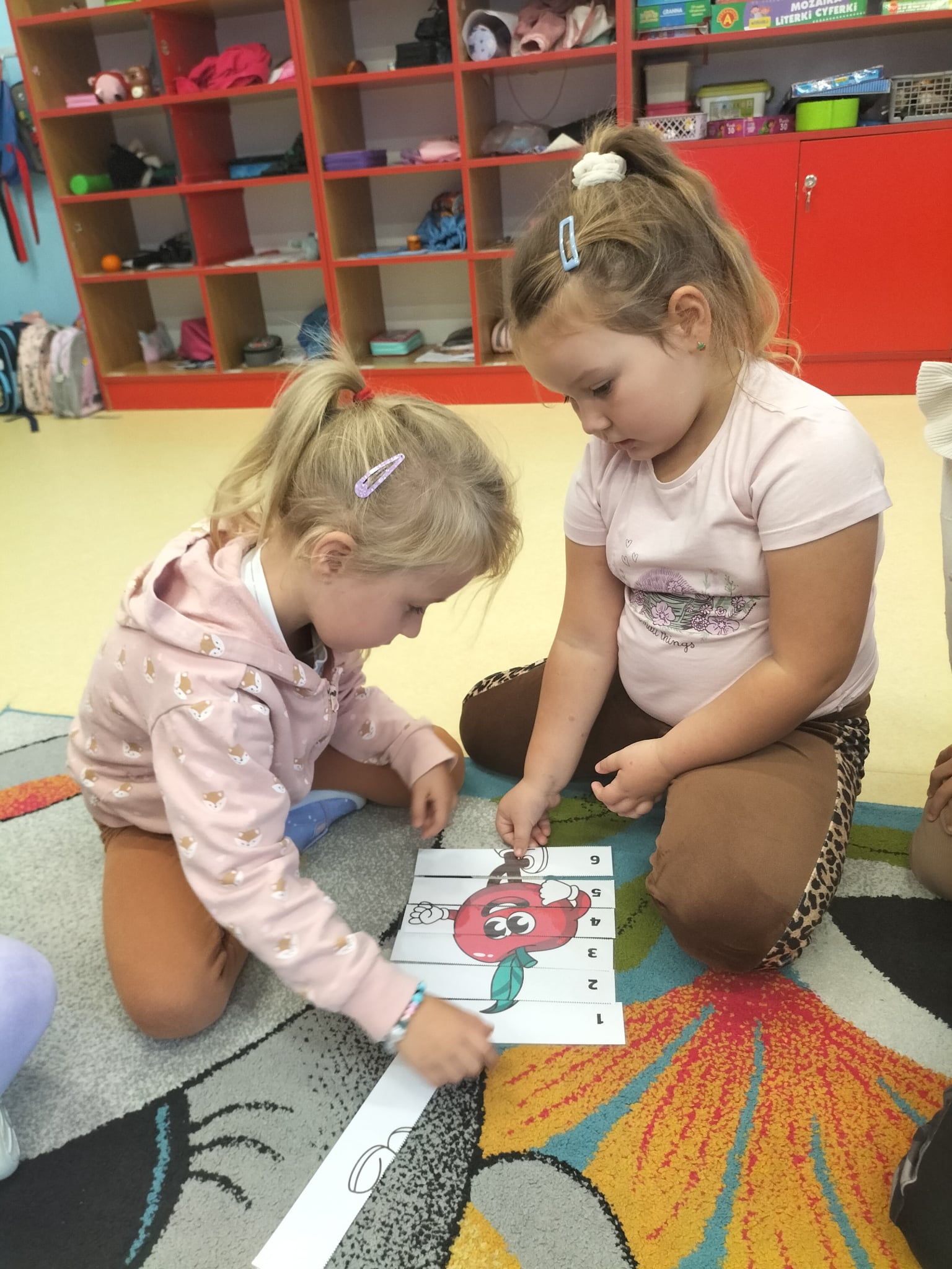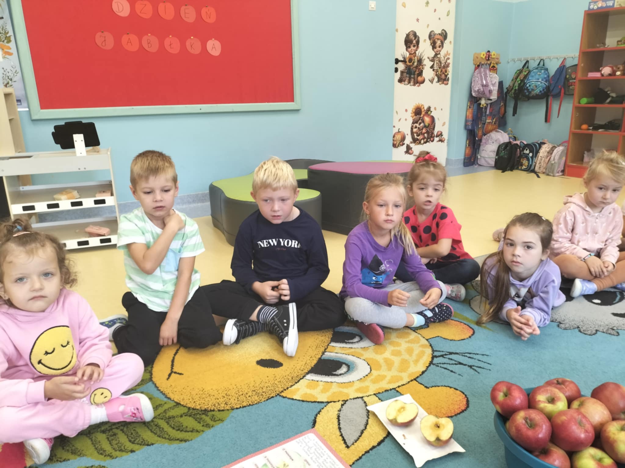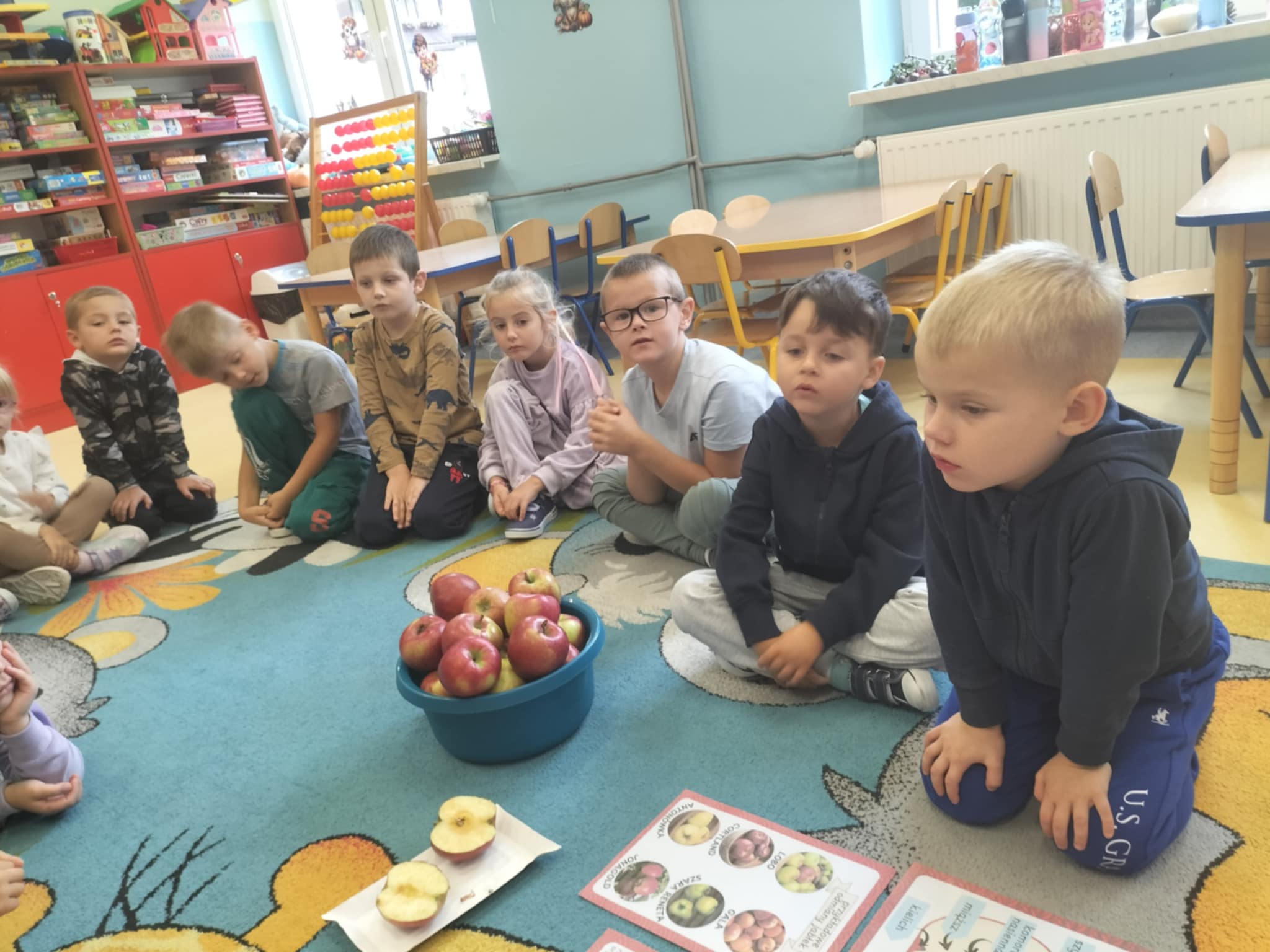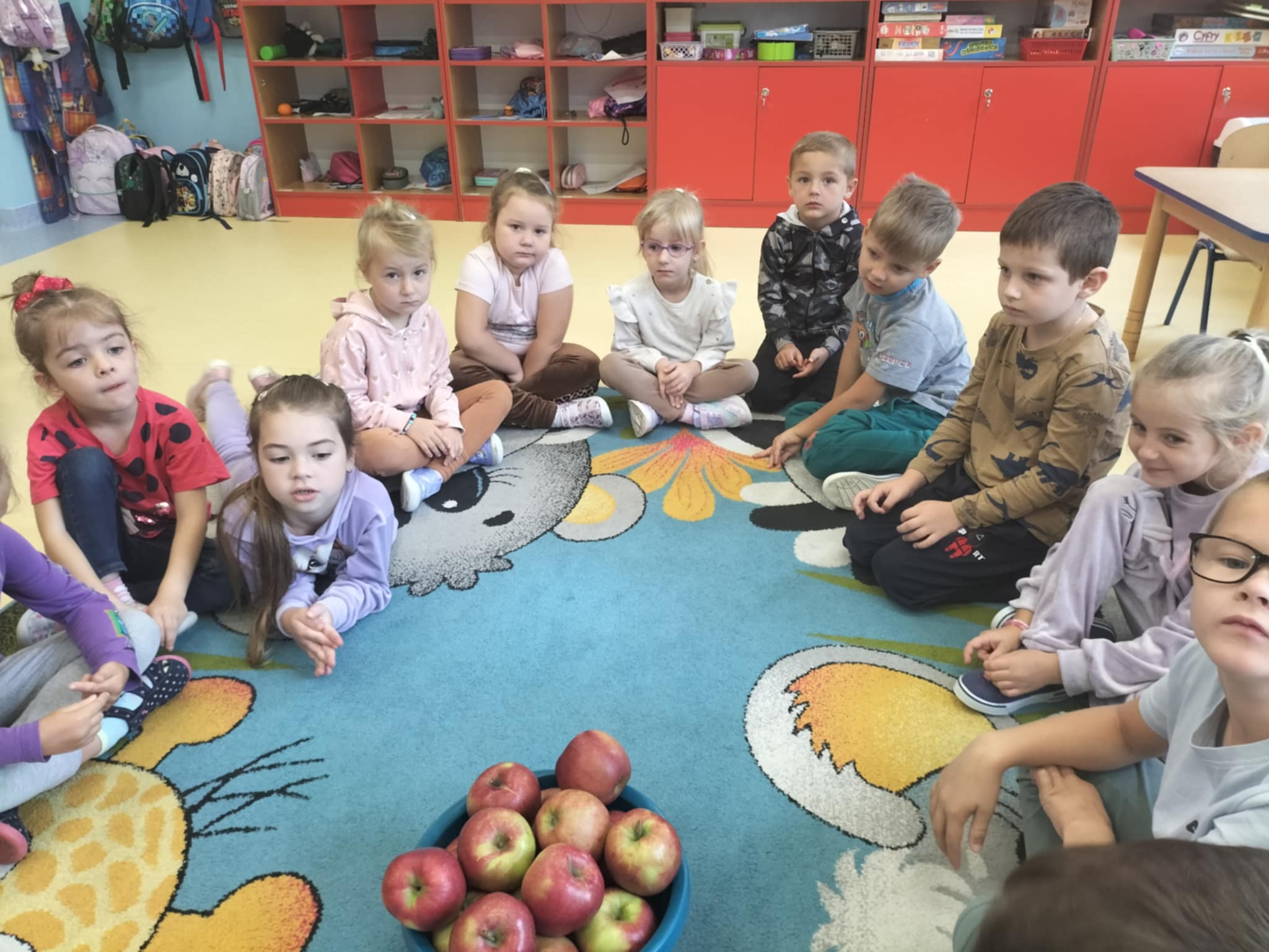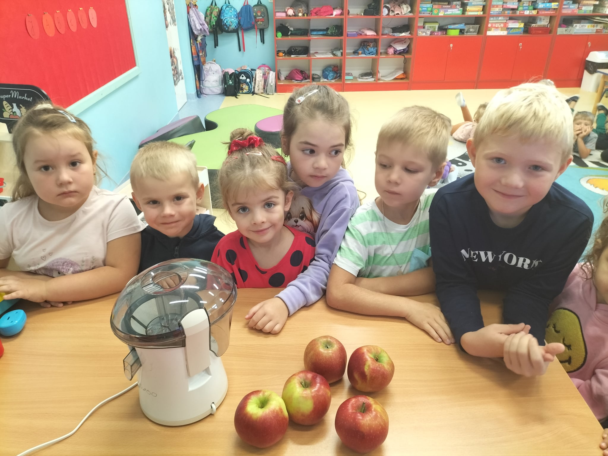 Podczas zajęć dzieci poznały różne rodzaje jabłek, budowę jabłka, cykl rozwoju oraz znaczenie jabłek dla zdrowia. Dzieci aktywnie uczestniczyły w zajęciach polegających na liczeniu i segregowaniu jabłek. Nie zabrakło też zgadywanek oraz zajęć plastycznych. Największą atrakcją dla dzieci było robienie soku jabłkowego. Dzieci z zaciekawieniem obserwowały przygotowanie soku, a później chętnie go wypiły.