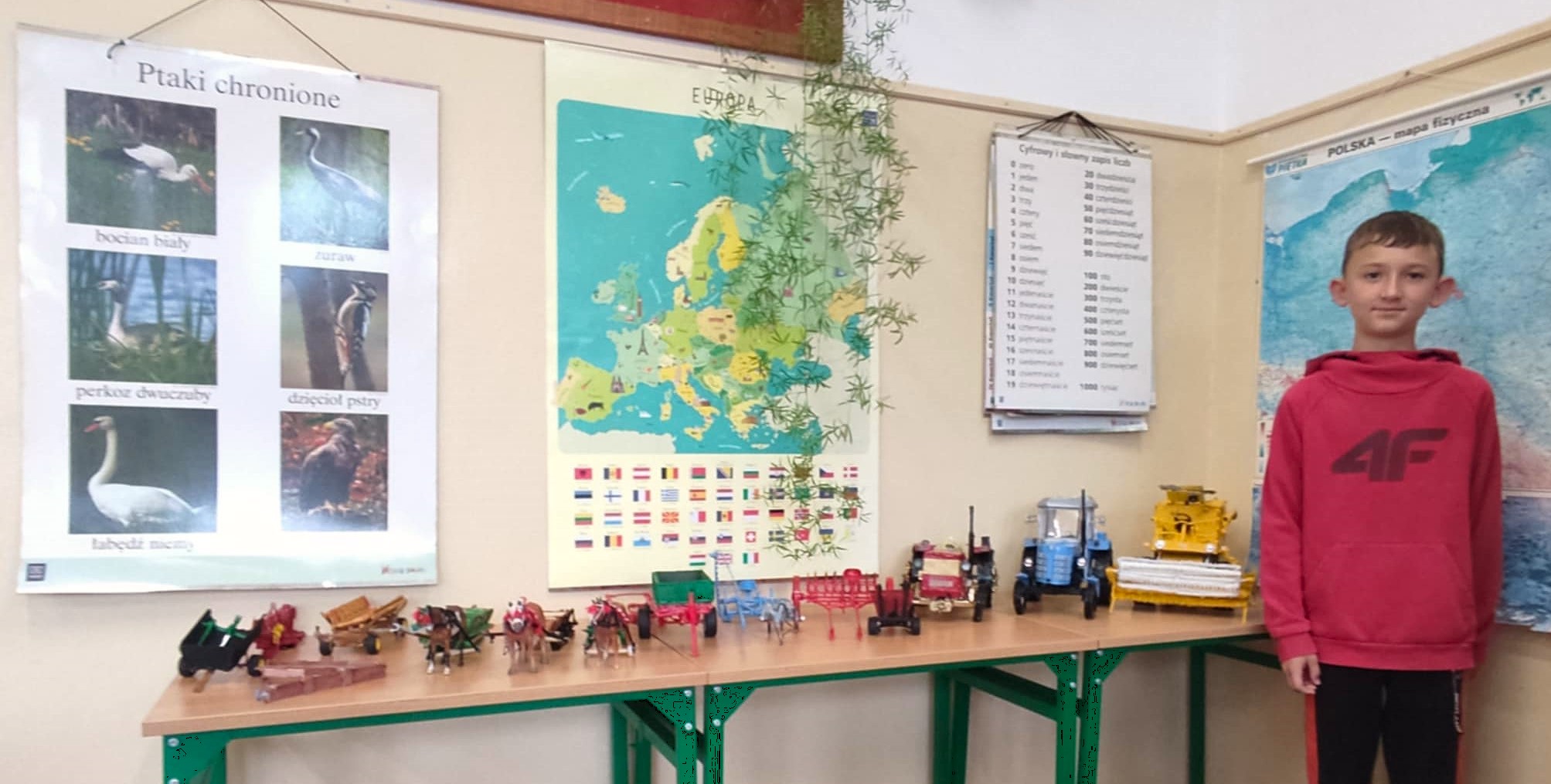 Zapraszamy do podziwiania efektów wakacyjnej pracy ucznia klasy 3 Wiktora Reptaka, który posiada niezwykłe zdolności plastyczno – techniczne. Wiktor wraz ze swoim starszym bratem Igorem, który także jest absolwentem naszej szkoły, wykonali różne pojazdy i sprzęty rolnicze. Rezultaty ich pracy są zdumiewające. Dziękujemy za możliwość obejrzenia eksponatów. Gratulujemy i trzymamy kciuki za dalszy rozwój talentu Wiktora!