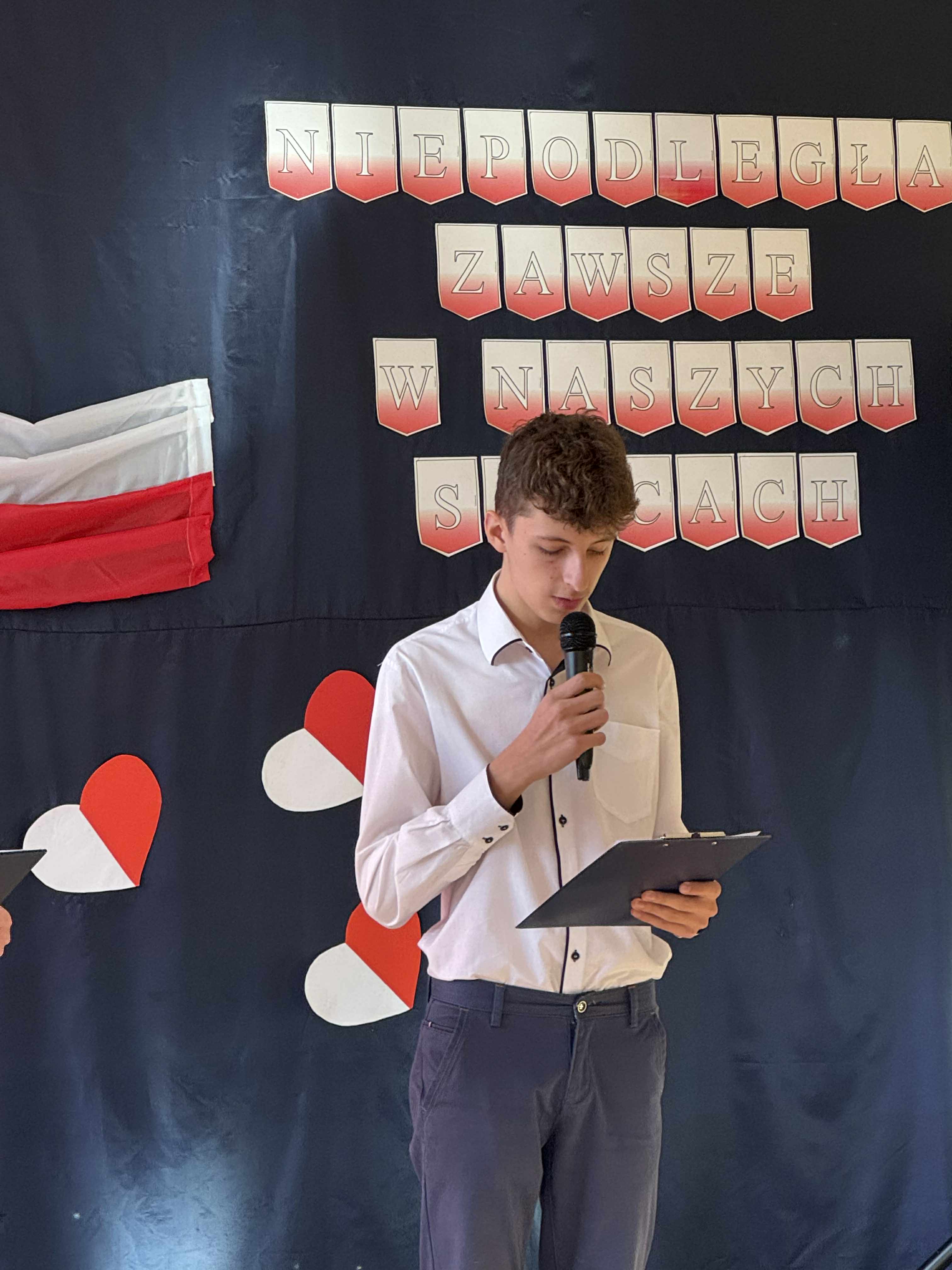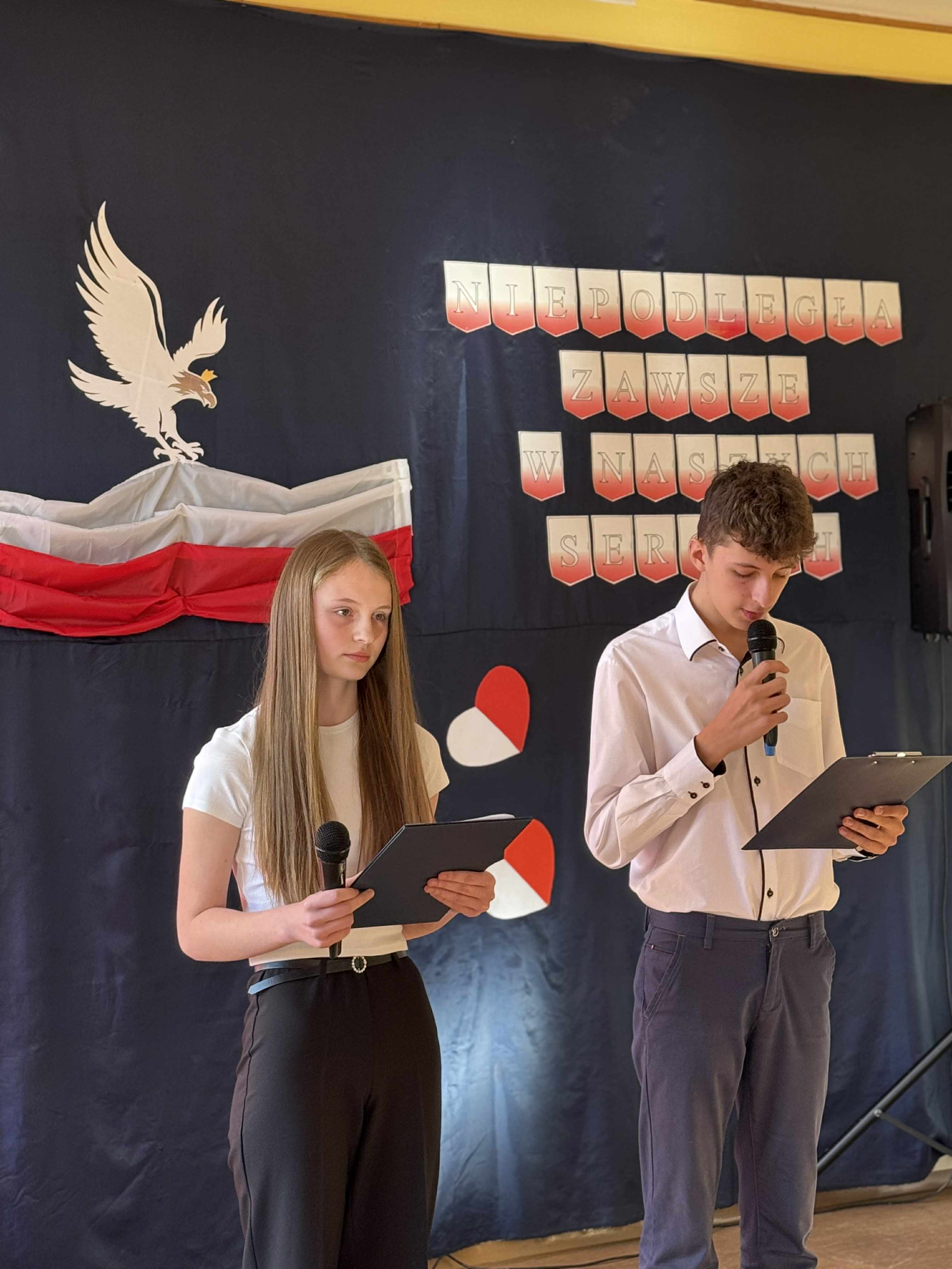 Podczas uroczystości uczniowie przypomnieli najważniejsze wydarzenia z historii naszej ojczyzny. Na scenie wybrzmiały patriotyczne wiersze i pieśni, które wprowadziły wszystkich w podniosły, a zarazem refleksyjny nastrój. Widzowie mogli podziwiać również taniec oraz skecz o patriotyzmie, który w przystępny sposób ukazał, czym jest miłość do ojczyzny we współczesnym świecie.