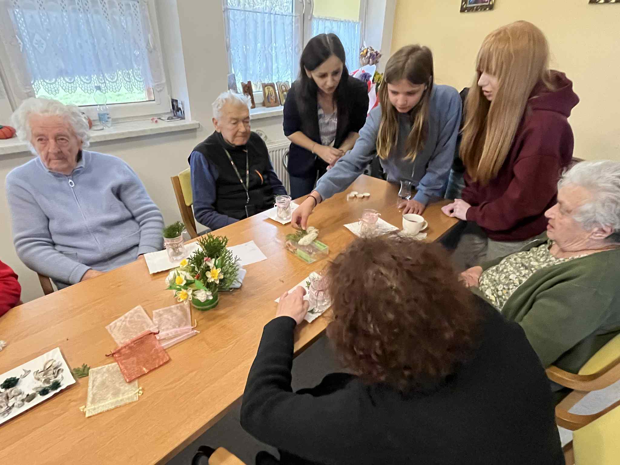 Na zakończenie młodzież otrzymała w prezencie piękne anioły – własnoręcznie wykonane przez Seniorów. To było niezwykle ciepłe i pełne serdeczności spotkanie, które na długo pozostanie w naszej pamięci.