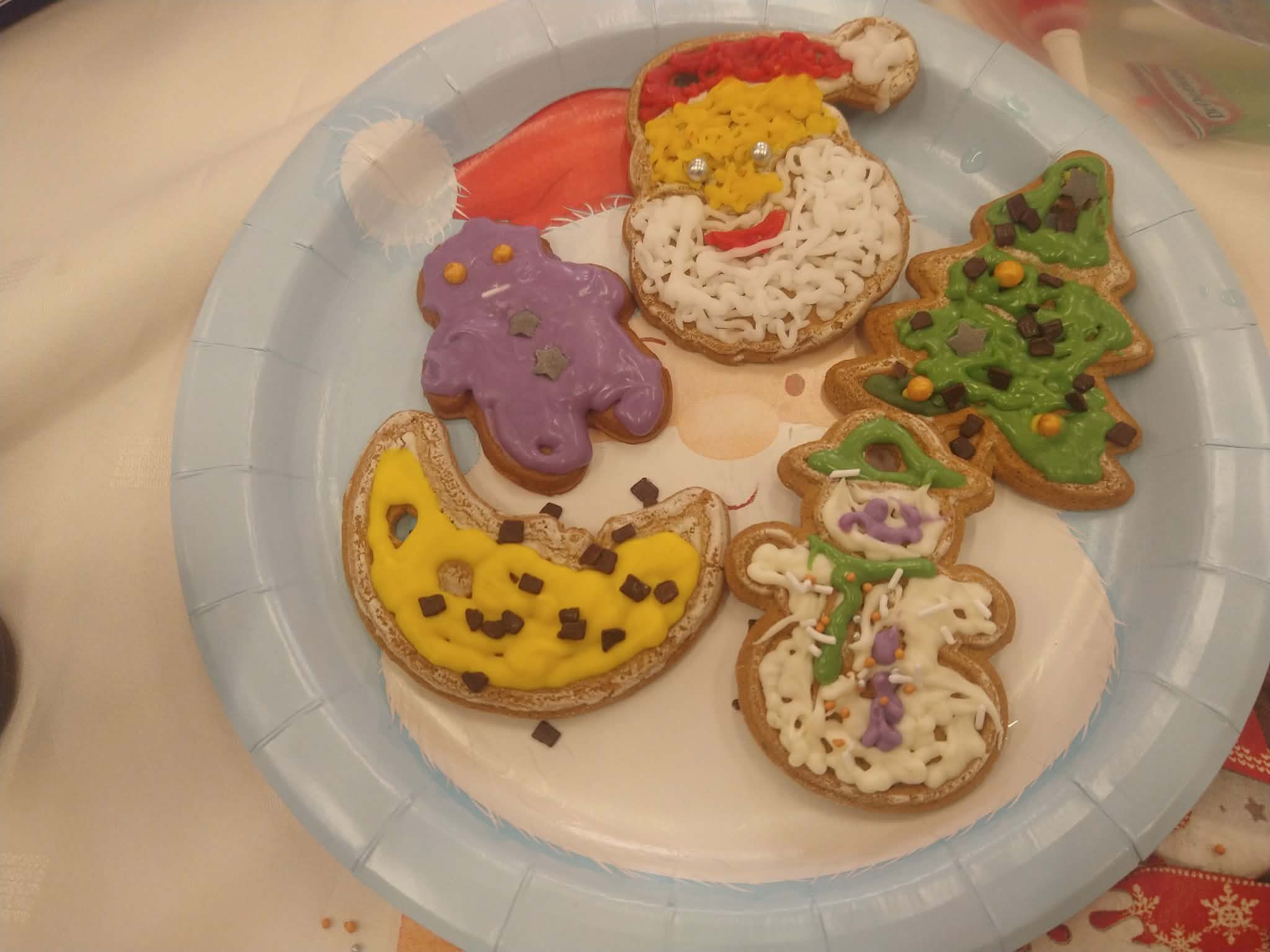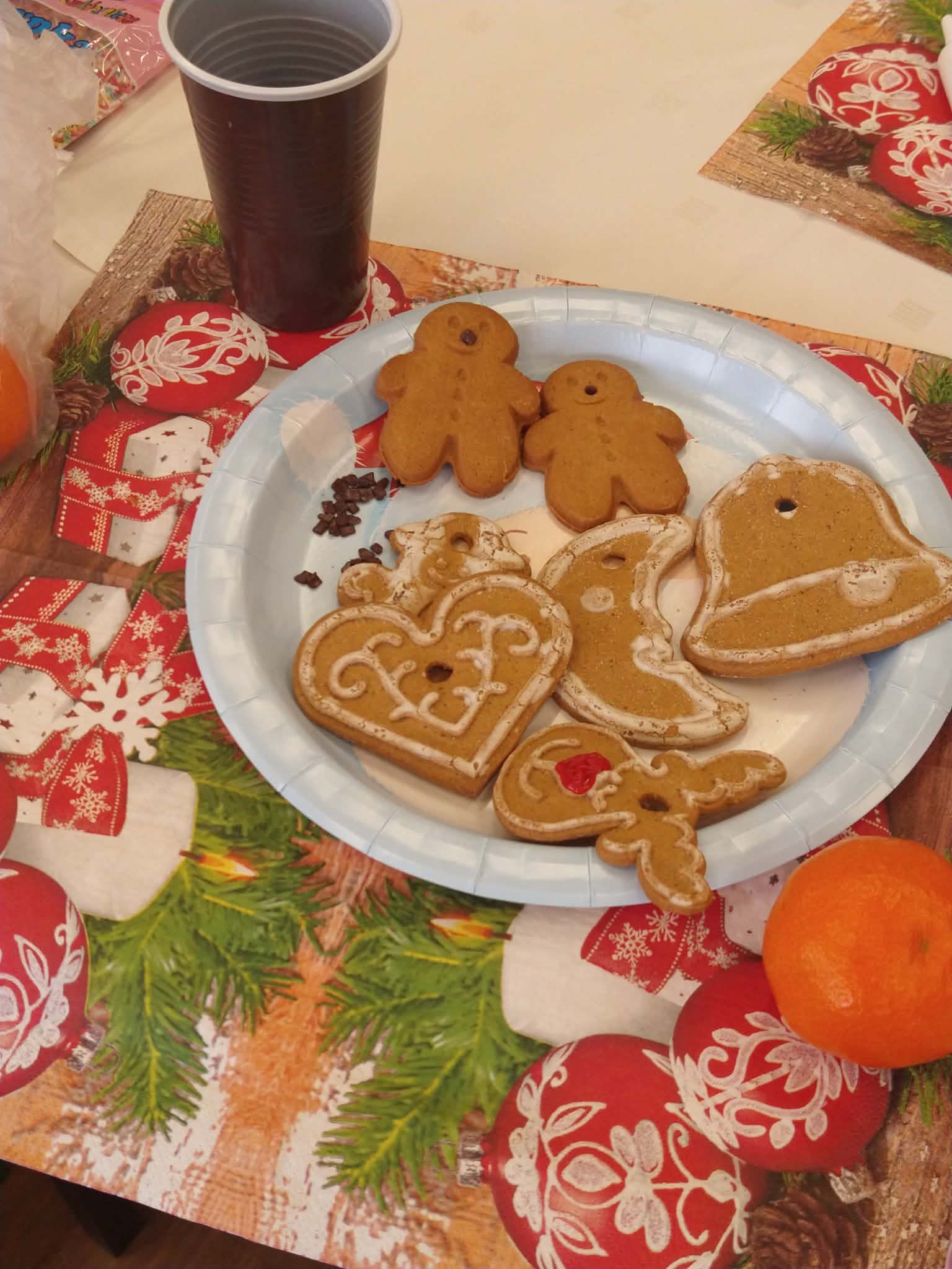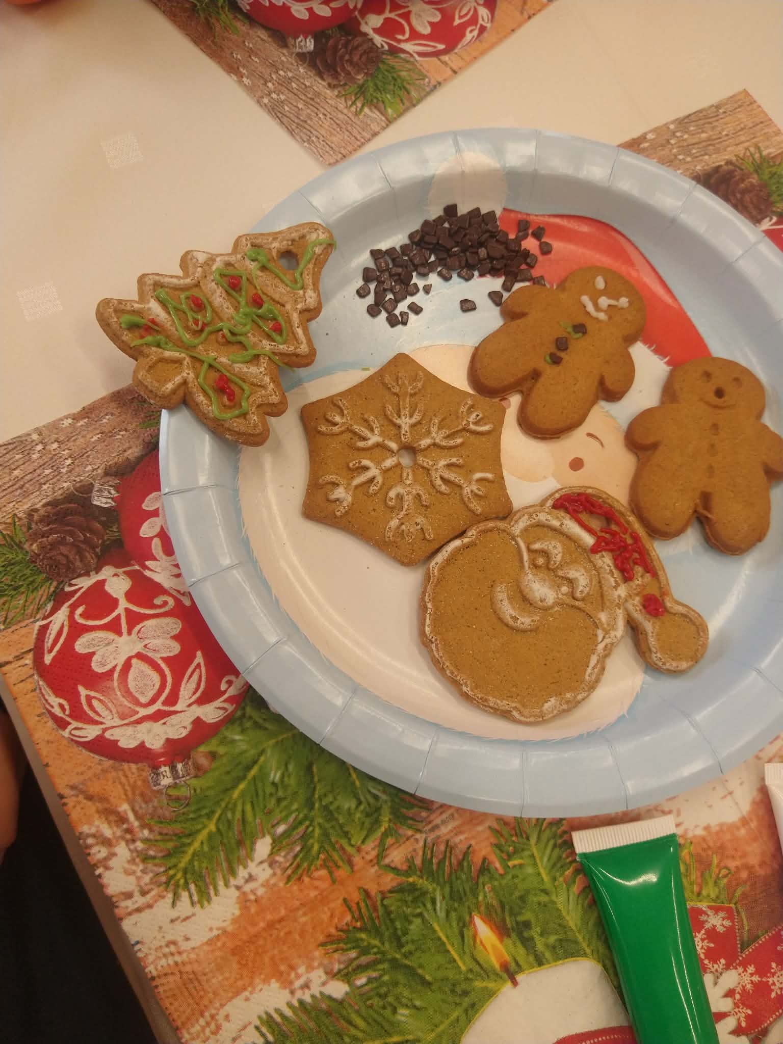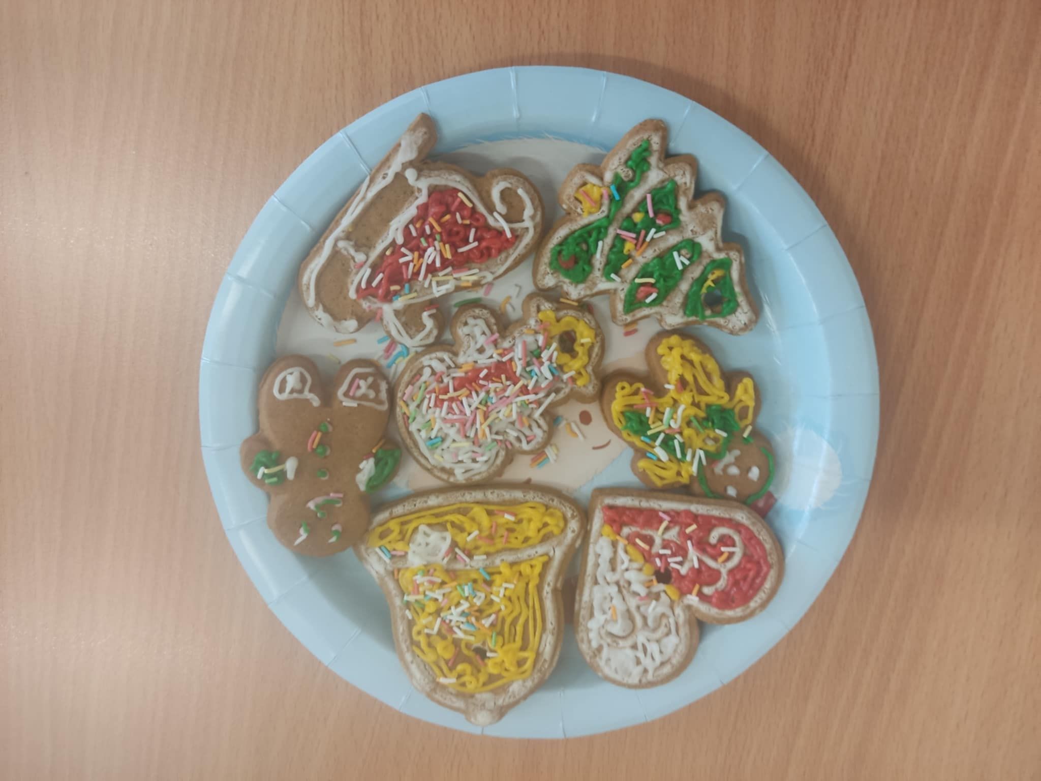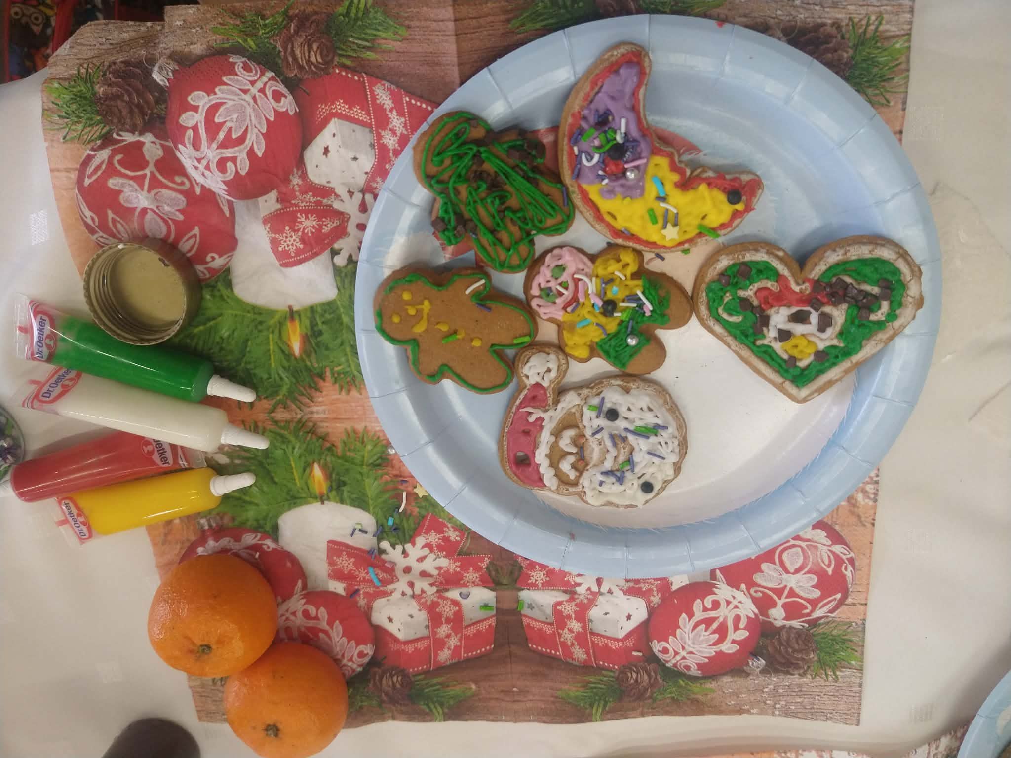 W oczekiwaniu na Święta Bożego Narodzenia uczniowie klasy II i III postanowili udekorować świąteczne pierniczki. Po przypomnieniu świątecznych tradycji, przy dźwiękach kolęd, uczniowie przystąpili do pracy. Z wielkim zaangażowaniem dekorowali pierniczki za pomocą kolorowego lukru, barwnej posypki, cukierków i innych ozdób. Było dużo radości, kreatywności i pysznych efektów. Pięknie udekorowane pierniczki, dzieci mogły zabrać do domu, zjeść lub powiesić na choince. Na koniec, wszyscy złożyli sobie świąteczne życzenia łamiąc się opłatkiem i śpiewając kolędy.