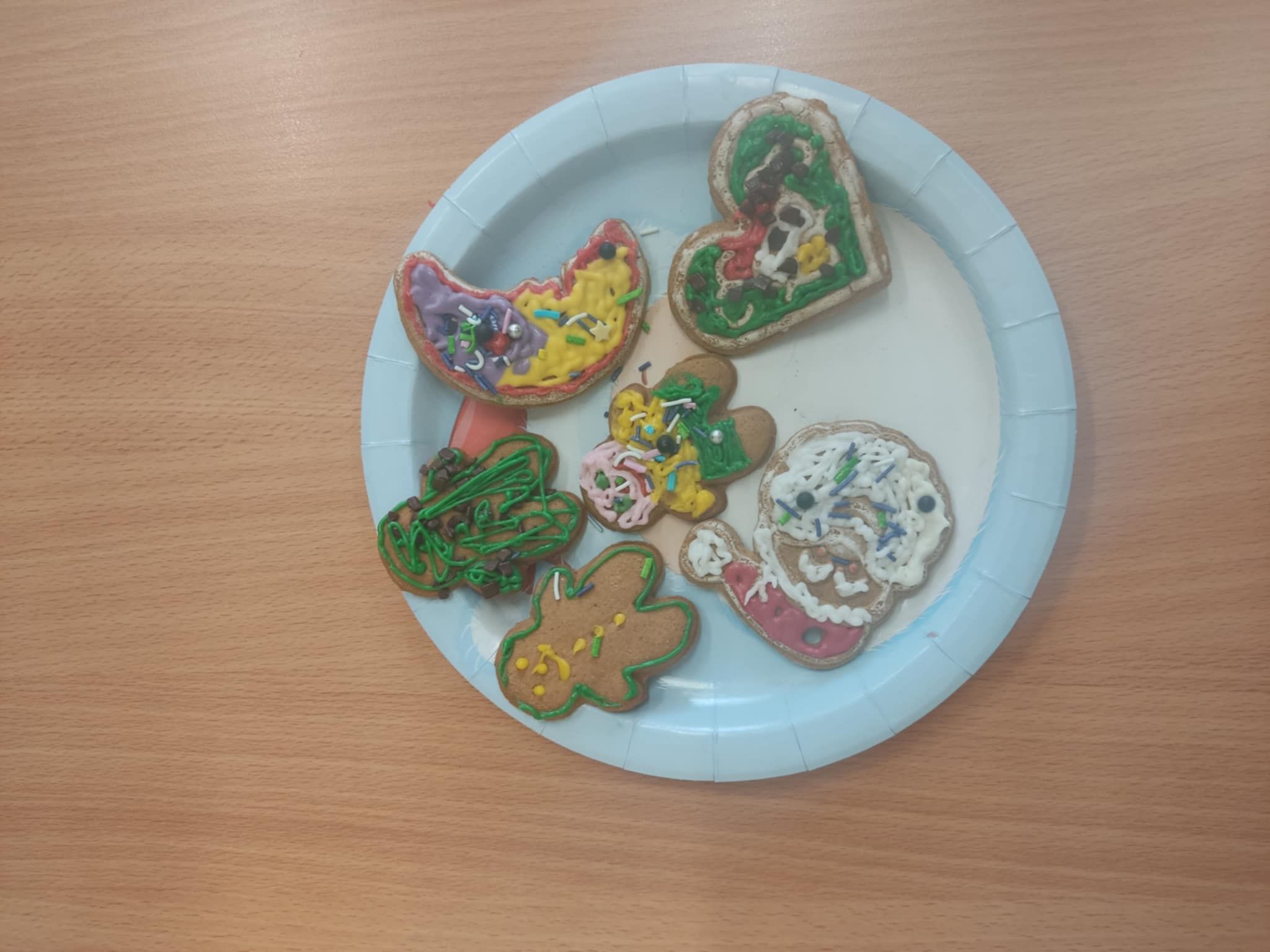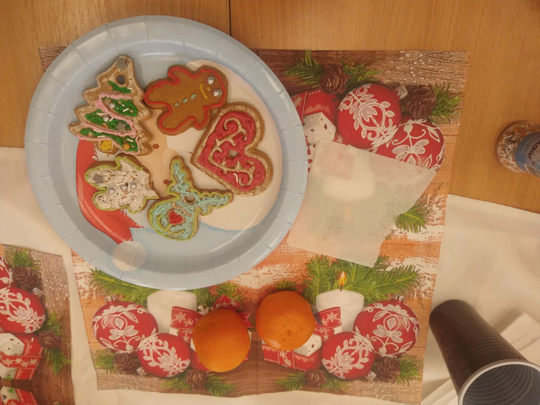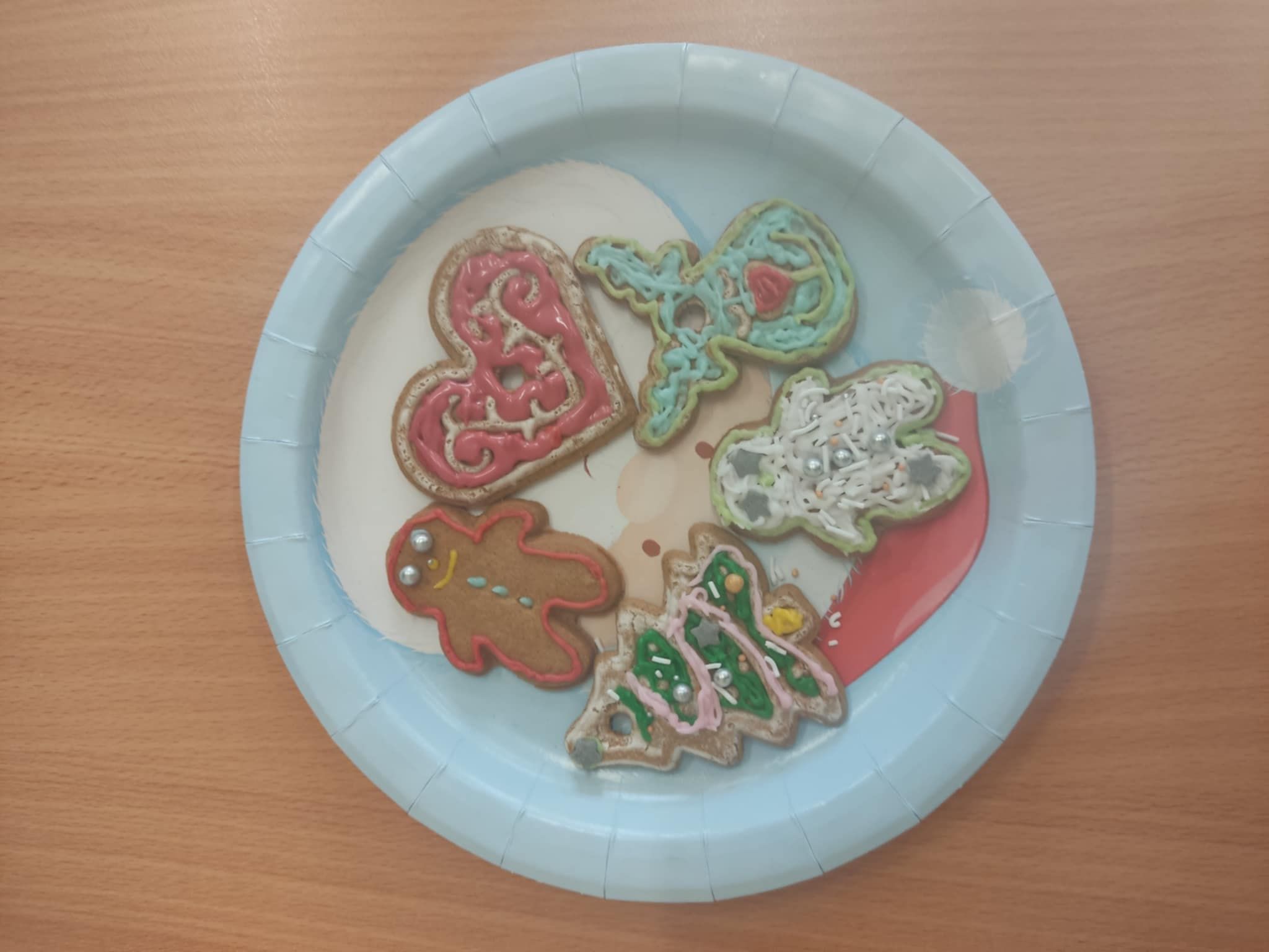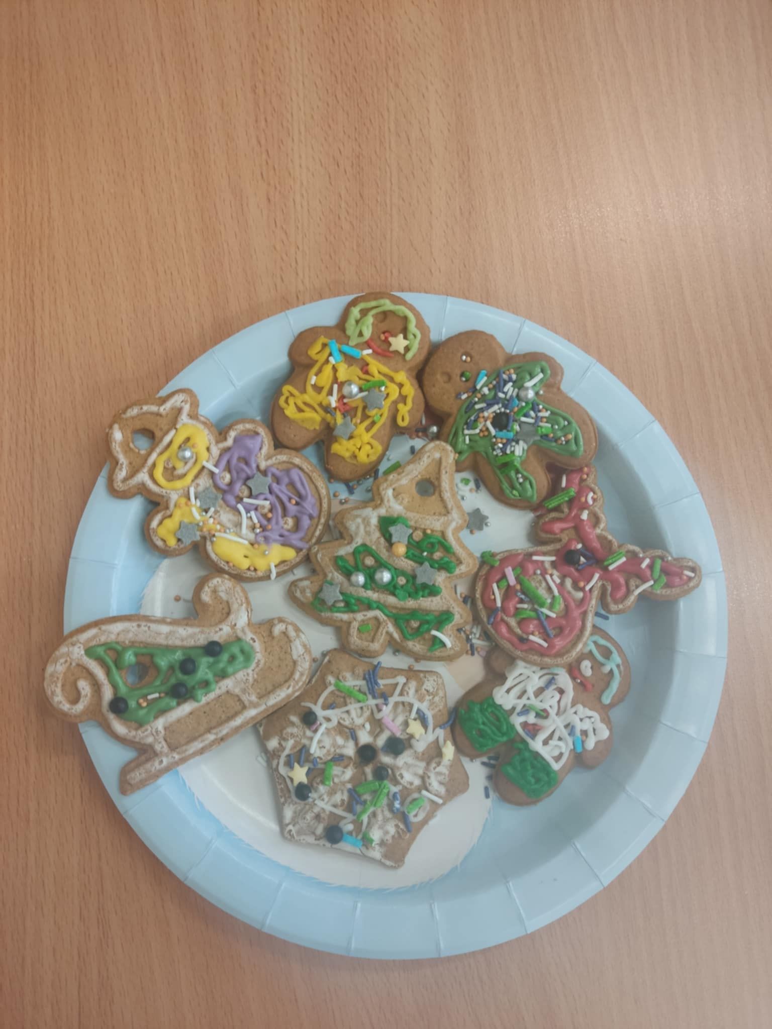 W oczekiwaniu na Święta Bożego Narodzenia uczniowie klasy II i III postanowili udekorować świąteczne pierniczki. Po przypomnieniu świątecznych tradycji, przy dźwiękach kolęd, uczniowie przystąpili do pracy. Z wielkim zaangażowaniem dekorowali pierniczki za pomocą kolorowego lukru, barwnej posypki, cukierków i innych ozdób. Było dużo radości, kreatywności i pysznych efektów. Pięknie udekorowane pierniczki, dzieci mogły zabrać do domu, zjeść lub powiesić na choince. Na koniec, wszyscy złożyli sobie świąteczne życzenia łamiąc się opłatkiem i śpiewając kolędy.