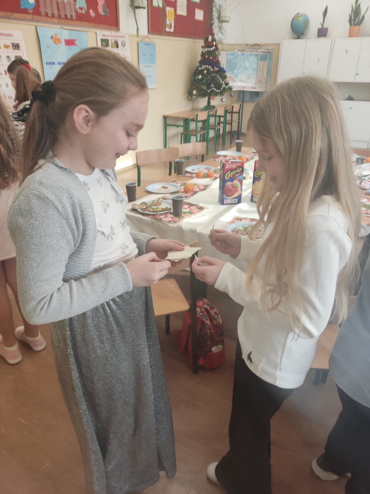 Również uczniowie klas I–VIII w ostatnich dniach spotkali się podczas klasowych wigilii organizowanych wspólnie z wychowawcami. Był to czas zatrzymania się w codziennym szkolnym pośpiechu, rozmów, wspólnego kolędowania oraz dzielenia się dobrym słowem. Te chwile sprzyjały integracji zespołów klasowych, wzmacniały relacje rówieśnicze oraz podkreślały znaczenie wzajemnej życzliwości i wspólnego przeżywania świątecznego czasu w szkolnej wspólnocie.