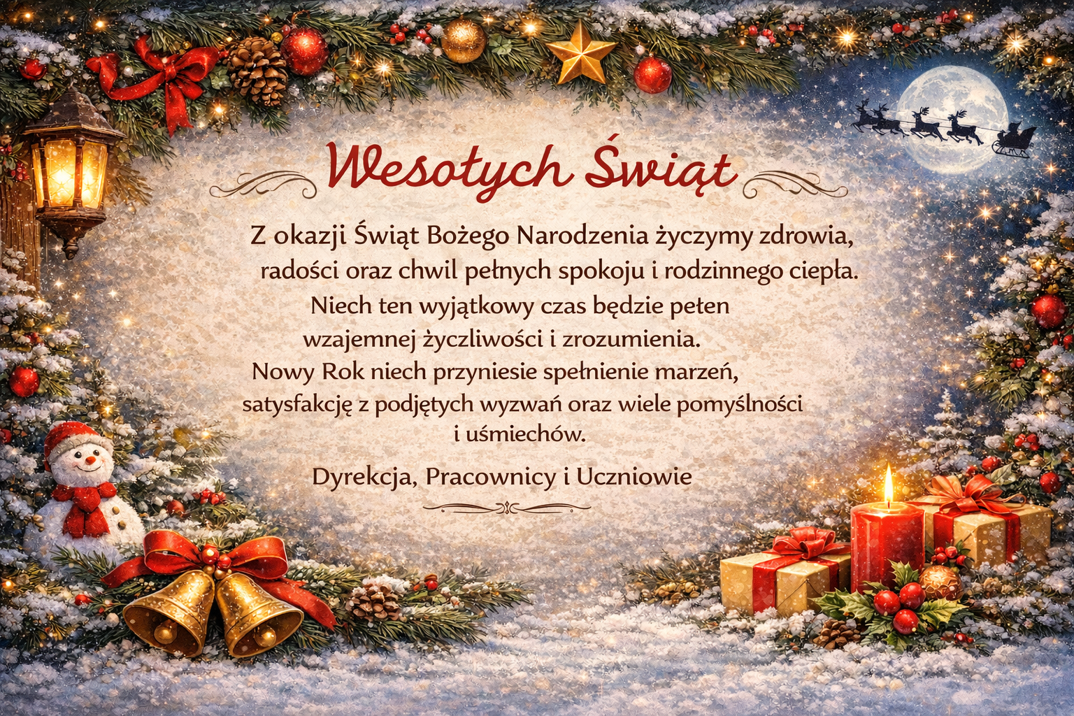 Z okazji Świąt Bożego Narodzenia składamy najserdeczniejsze życzenia rodzinom naszych uczniów, przyjaciołom oraz wszystkim sympatykom szkoły.