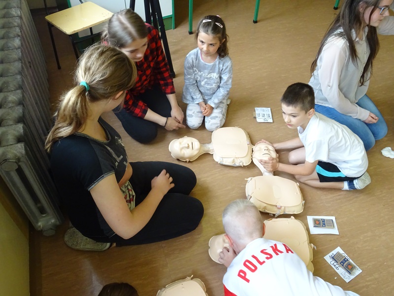 W tym roku uczniowie klas „0”, II SP i III SP powitali lato muzycznie i na sportowo. Zanim jednak w pełni oddali się zabawie, uczestniczyli w pokazie pierwszej pomocy przedmedycznej. Umiejętność udzielania pierwszej pomocy ma ogromne znaczenie, dlatego już od najmłodszych lat ważne jest oswajanie dzieci z ideą pomagania oraz nabycie przez nich umiejętności, które mogą drugiemu człowiekowi uratować życie.