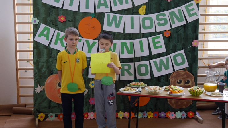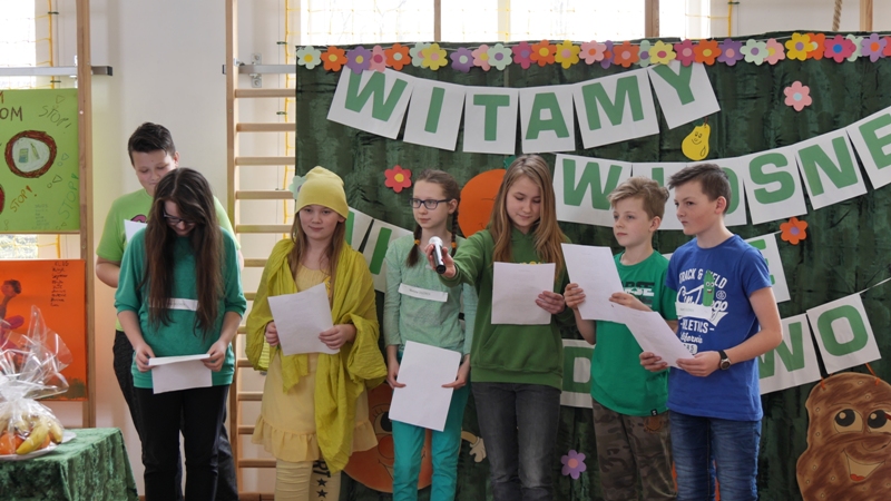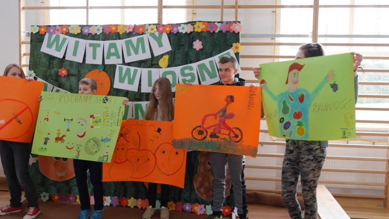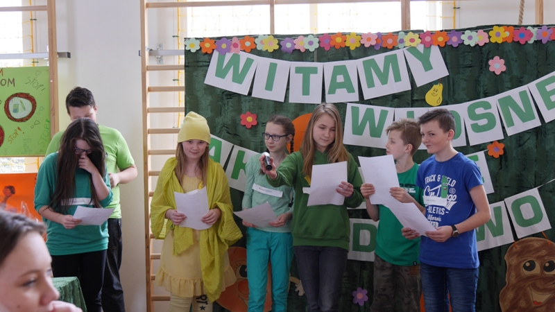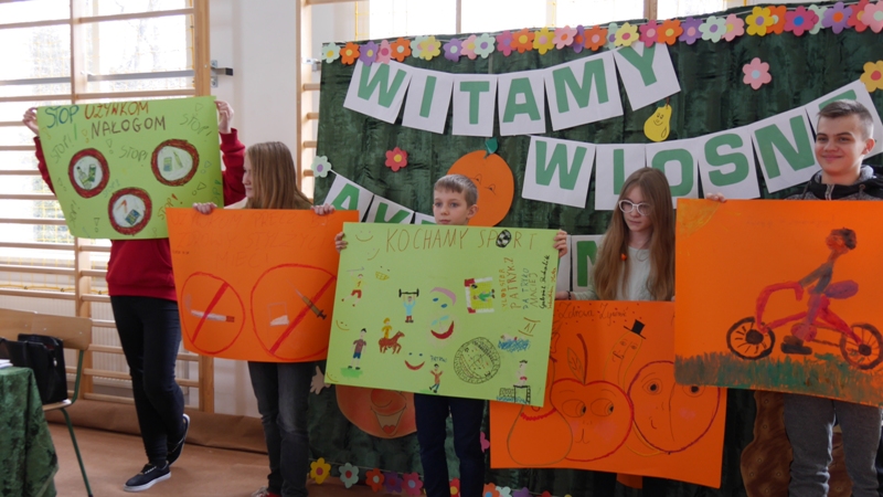 Dnia 21 marca 2017 roku uczniowie naszej szkoły powitali wiosnę podczas szkolnego turnieju ekologicznego pod hasłem „Witamy wiosnę aktywnie i zdrowo”. Uroczystość ta została zorganizowana  i przeprowadzona przez Samorząd Uczniowski i uczniów klasy V.