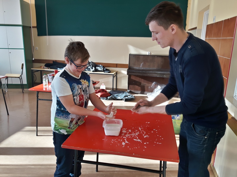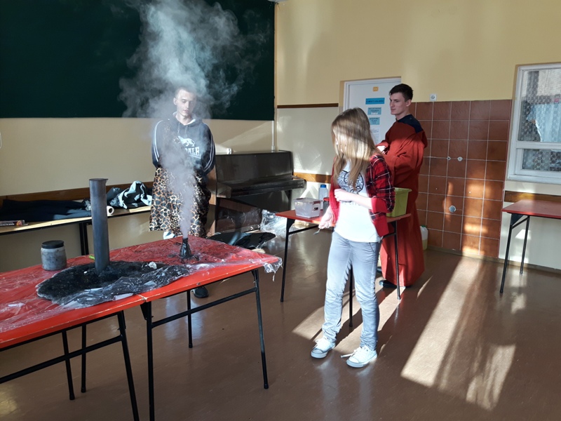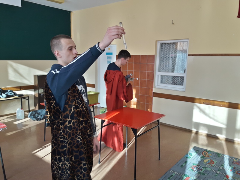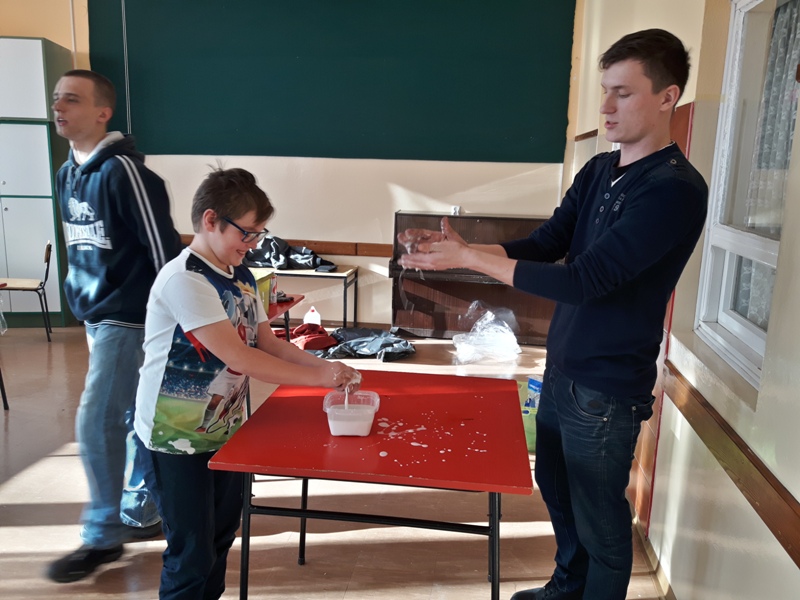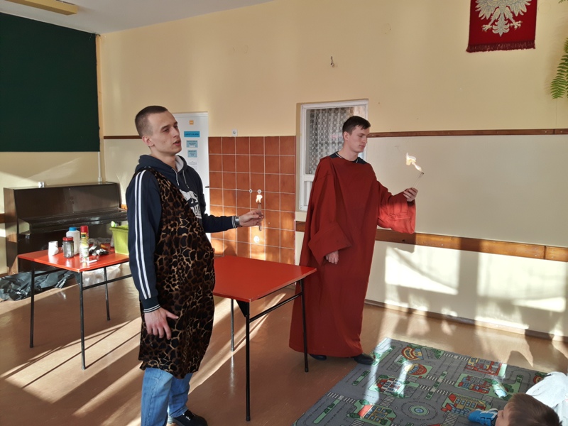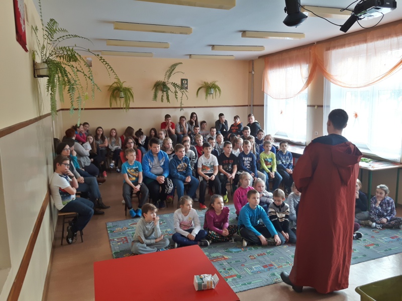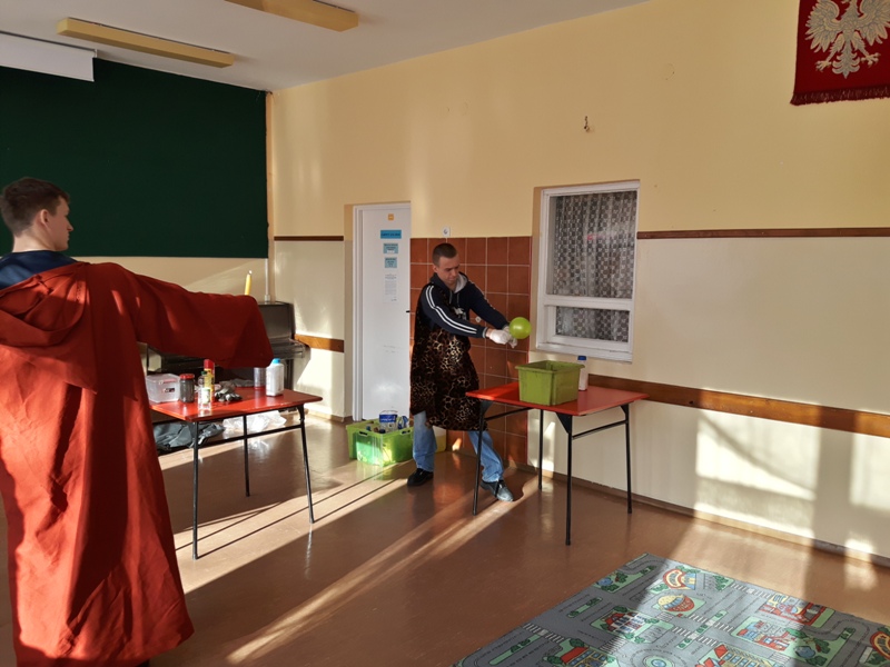 7 grudnia 2016 r. gościliśmy w naszej szkole grupę animatorów „Zaelektryzowani”, którzy przedstawili niecodzienny pokaz zatytułowany: "Czy to magia? Nie, to czyta nauka". Neandertalczyk Mietek i mnich Magnus wykonywali eksperymenty chemiczne, które bardzo zaciekawiły uczniów i w wielu odkryły żyłkę naukowca.
