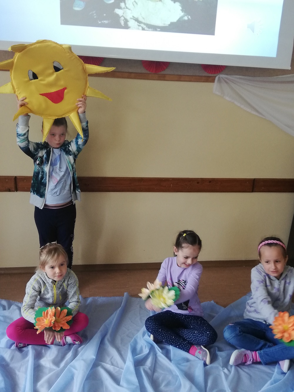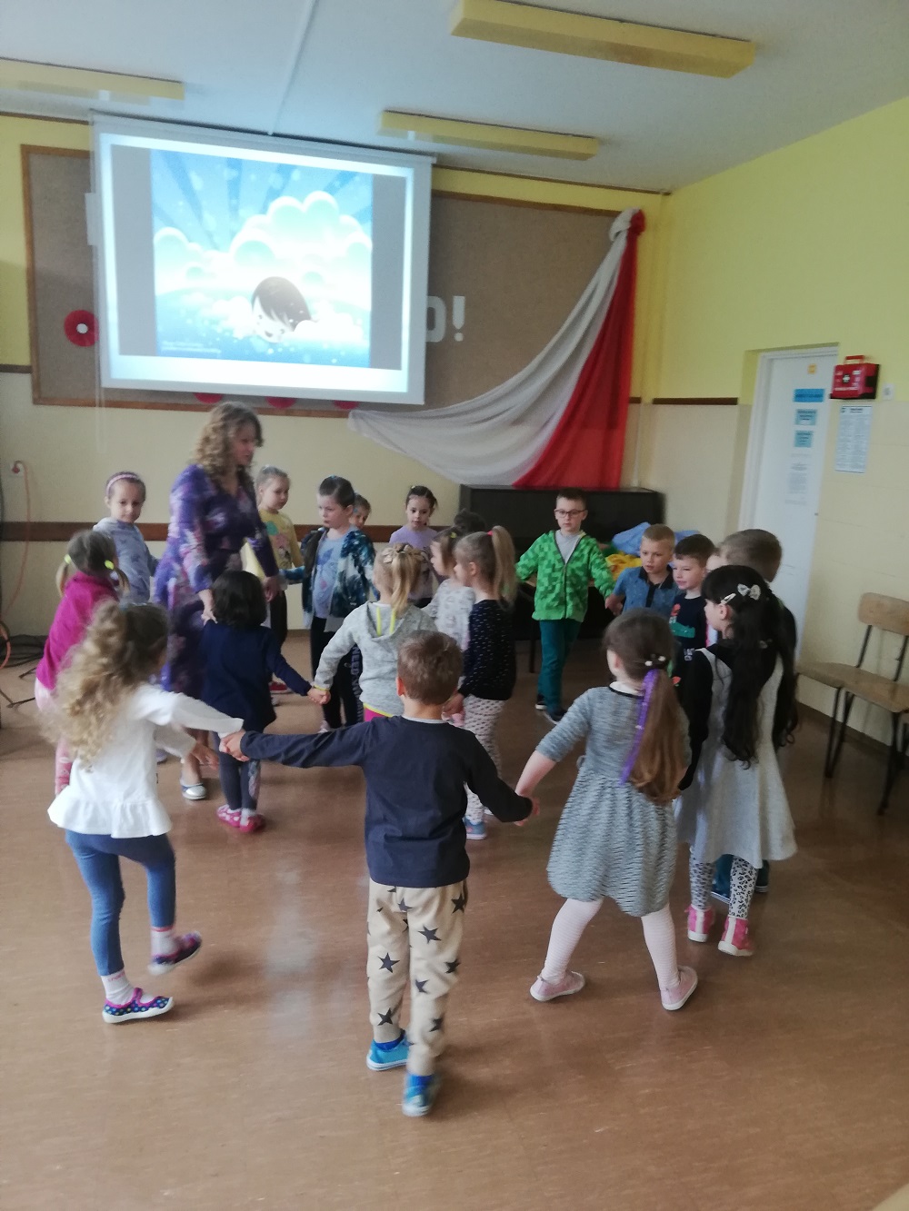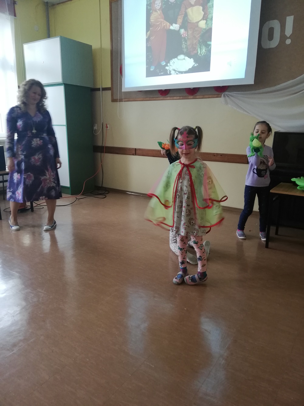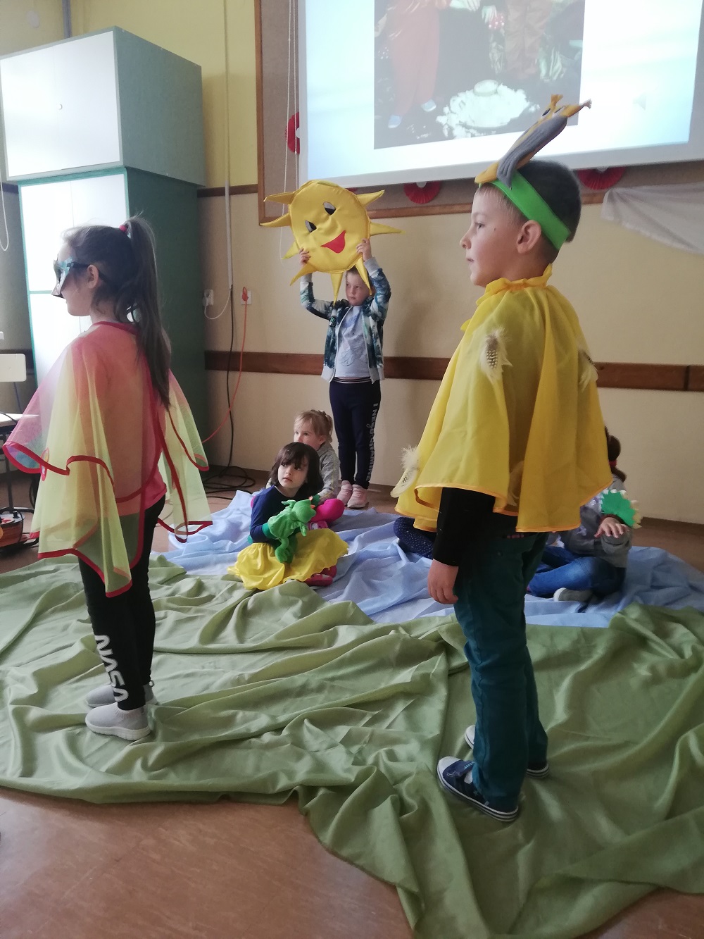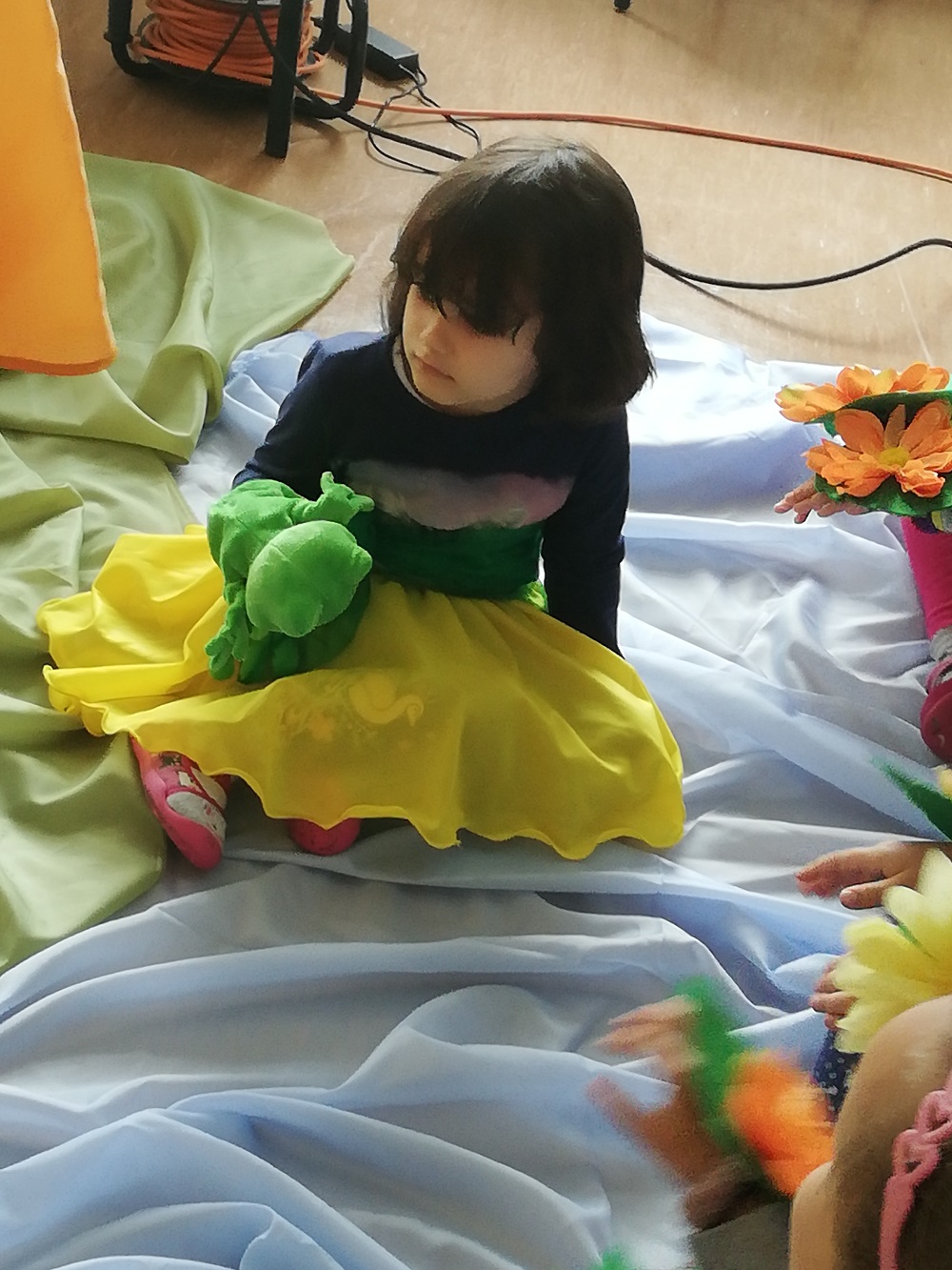 Po odśpiewaniu nowo poznanej piosenki powitalnej przez dzieci rozpoczęły się zajęcia teatralne, które zapoczątkował krótki filmik dotyczący podstawowych wiadomości o teatrze. Dzieci z uwagą go obejrzały, a następnie odgadywały zagadki związane właśnie z tym rodzajem sztuki. Następnie przedszkolaki wysłuchały jednej z bajek terapeutycznych, której motywem przewodnim było kłamstwo. Rymowana historyjka o żabce poparta kolorowymi ilustracjami bardzo spodobała się dzieciom, które trafnie wysnuły naukę z niej płynąca. Poznały też znaczenie powiedzeń związanych z kłamstwem. Dzieci miały również okazję wcielić się w różne role, a tym samym mogły poczuć się jak prawdziwi aktorzy. Na zakończenie spotkania przedszkolaki obejrzały kolejny filmik, tym razem przedstawiający różne postawy i zachowania dzieci w momencie, gdy dopuszczają się kłamstwa. Pani Beata rozdała też najmłodszym rysunek żabki do pokolorowania oraz podarowała książkę ze swoimi wierszami. Spotkanie przebiegło w miłej i wesołej atmosferze, która udzieliła się wszystkim jego uczestnikom.