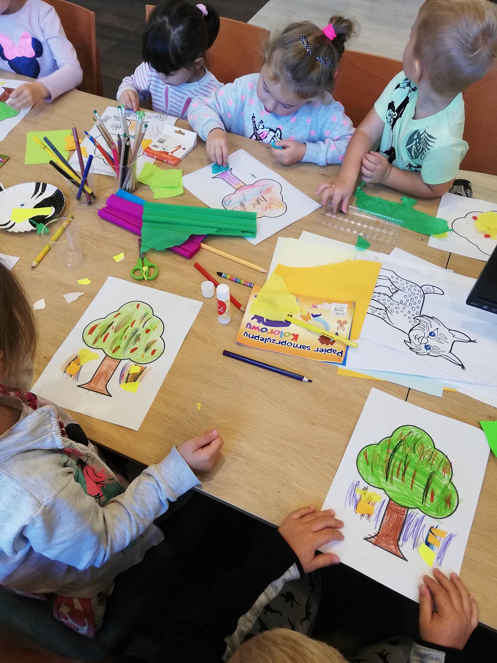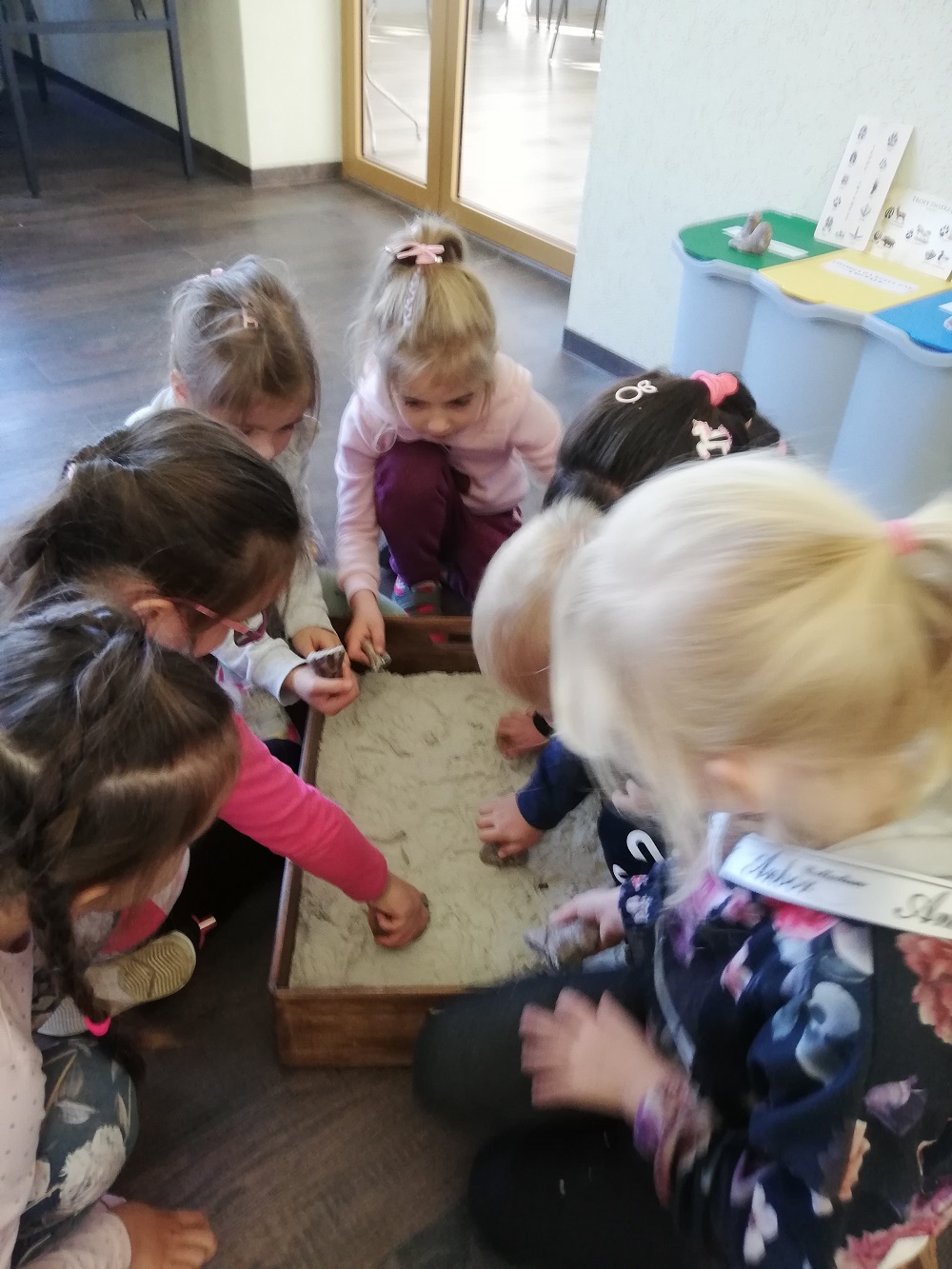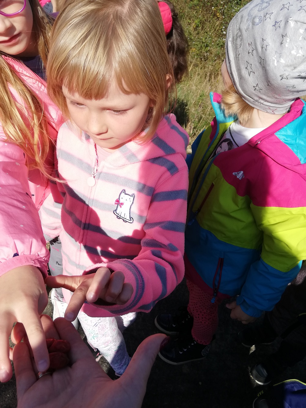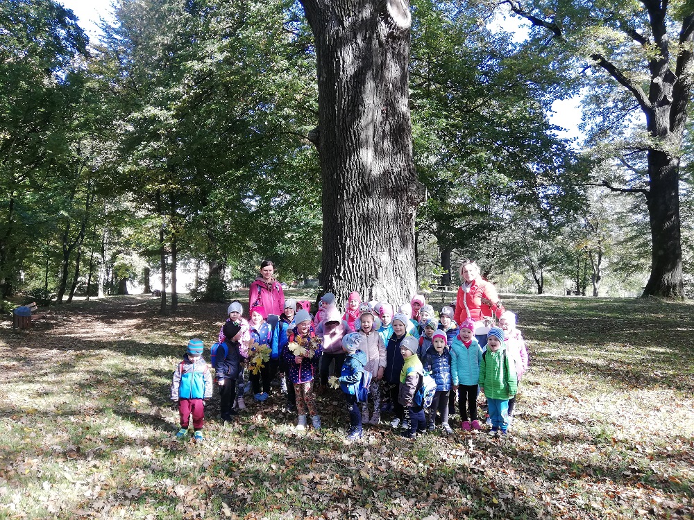 Korzystając z pięknej pogody, dzieci z grup przedszkolnych wybrały się na wycieczkę do pobliskiego lasu.