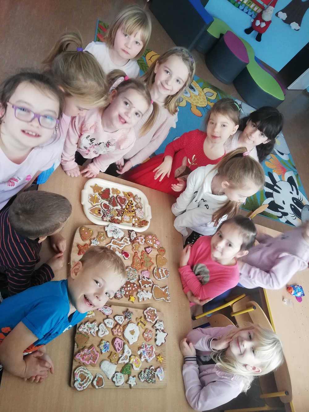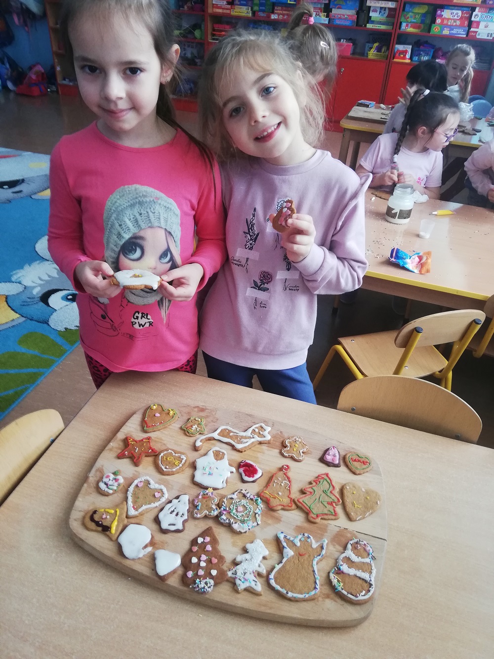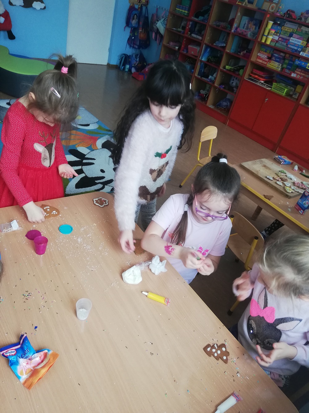 Święta tuż tuż, więc nadszedł czas na pieczenie i dekorowanie świątecznych pierniczków. Wspaniały zapach unosił się w całym przedszkolu i wprawił wszystkich w świąteczny nastrój.