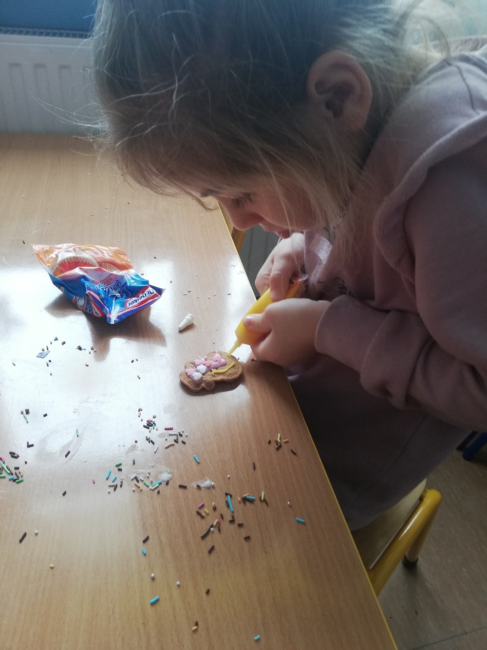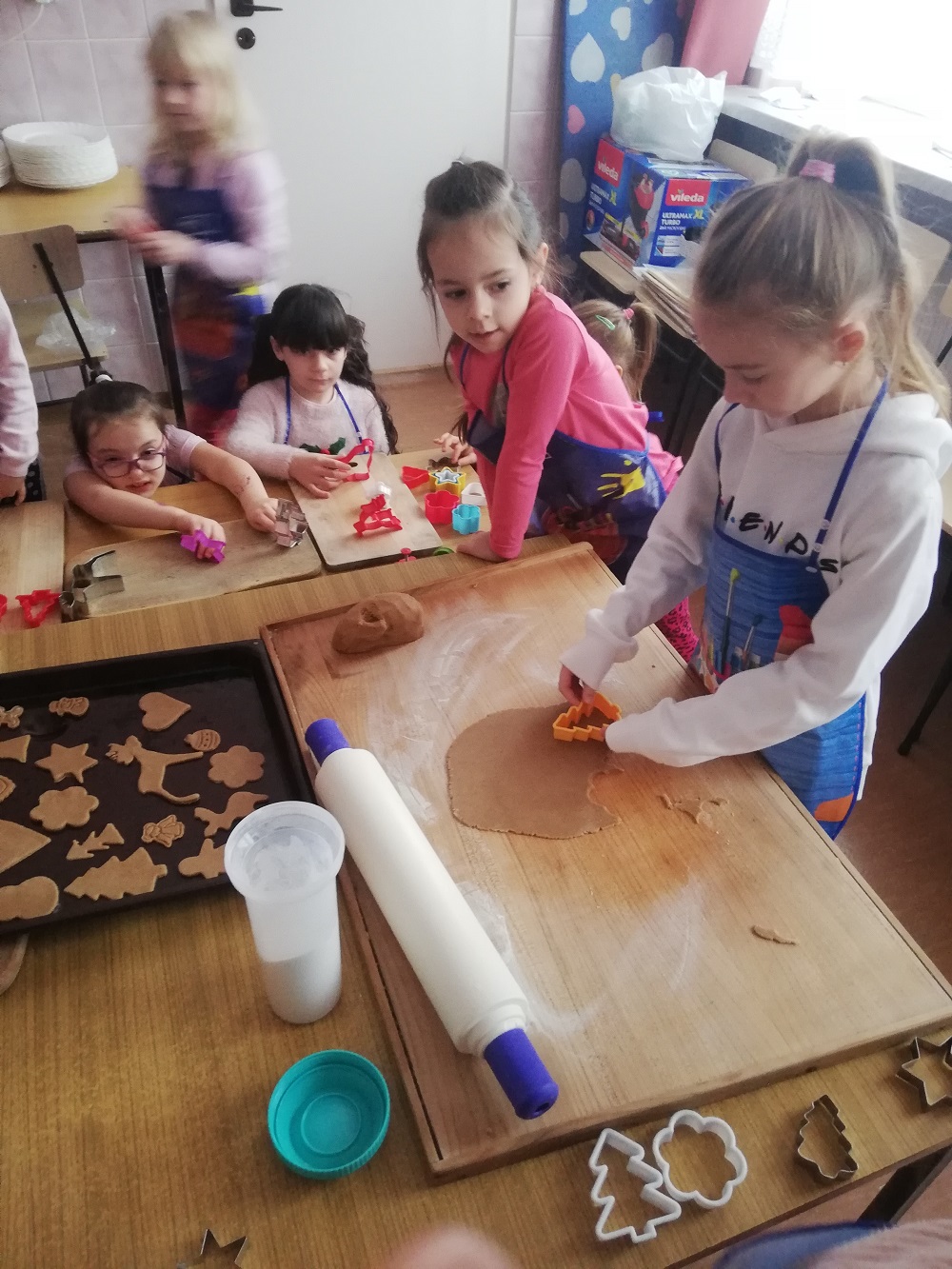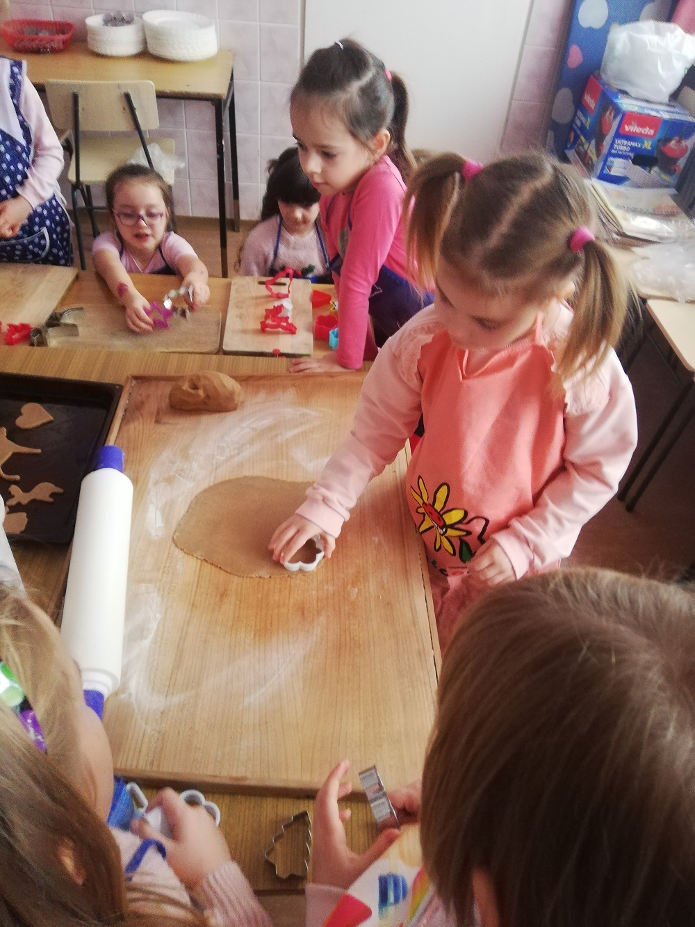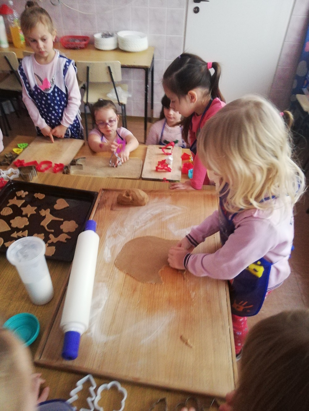 Święta tuż tuż, więc nadszedł czas na pieczenie i dekorowanie świątecznych pierniczków. Wspaniały zapach unosił się w całym przedszkolu i wprawił wszystkich w świąteczny nastrój.