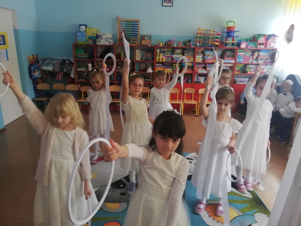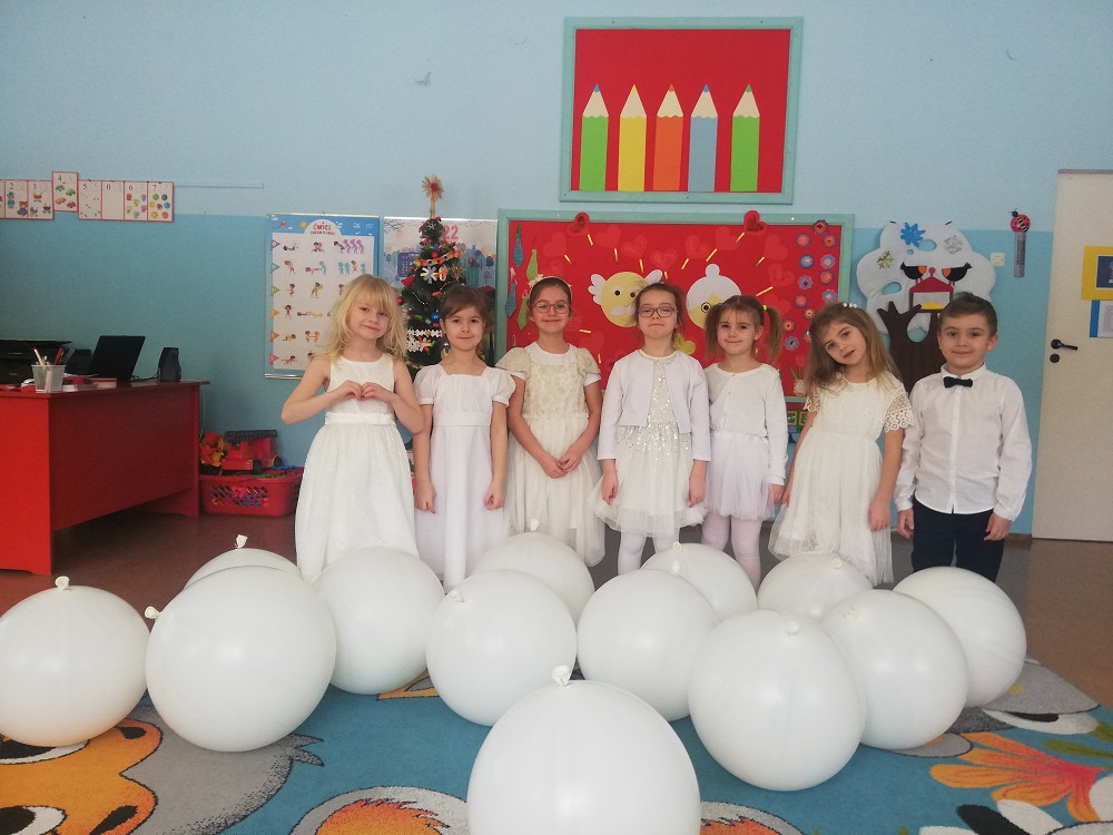 Wnuczęta z kl. „0” uczciły to święto, składając dziadkom życzenia, recytując wiersze, śpiewając piosenki, przygotowały inscenizacje, tańce oraz laurki. Dzieci pamiętały, by podziękować za opiekę, cierpliwość i czas, jaki poświęcają im ukochani Babcia i Dziadek.
