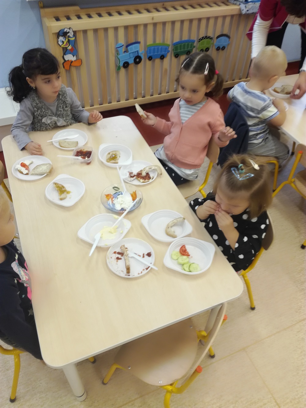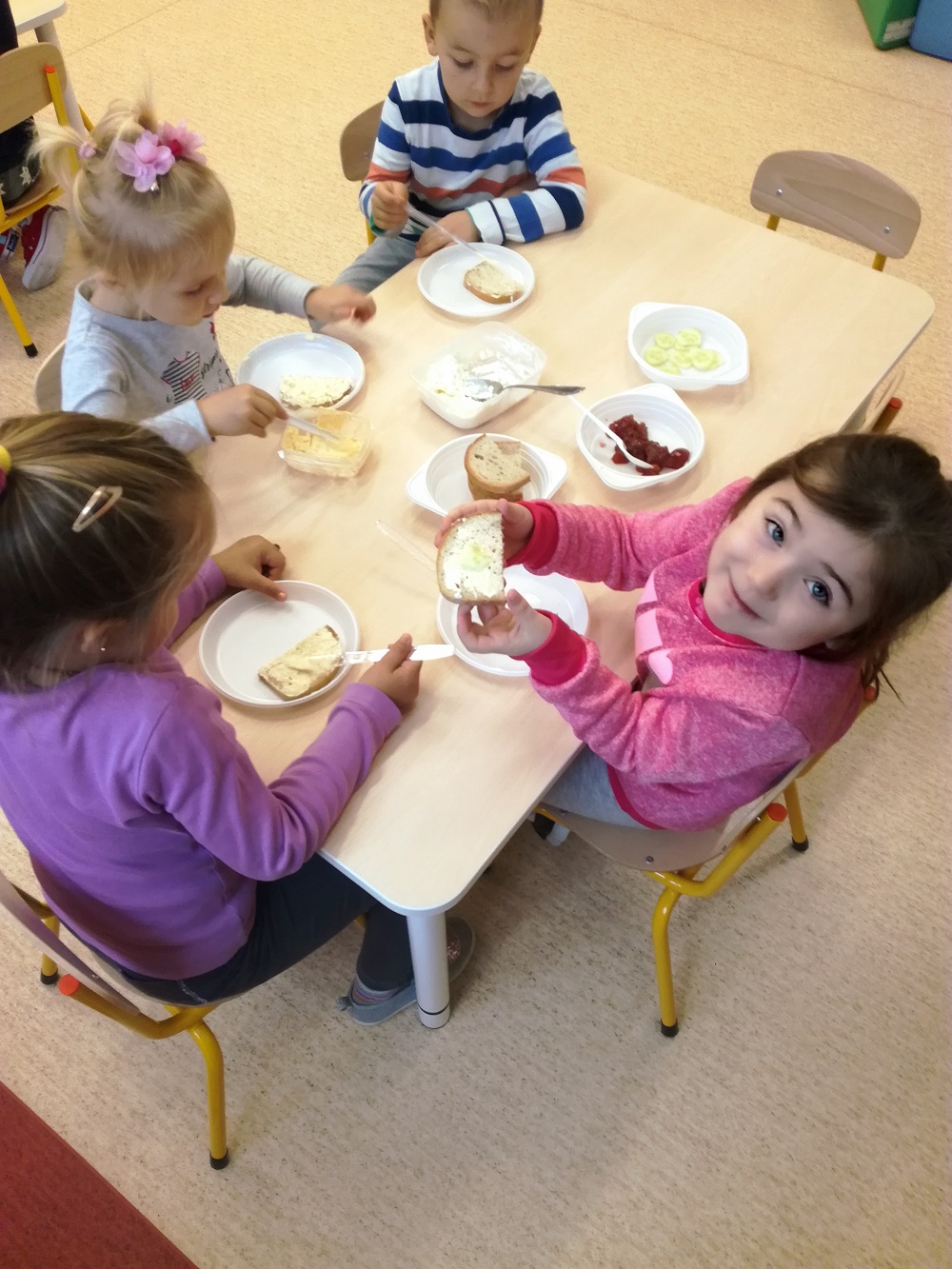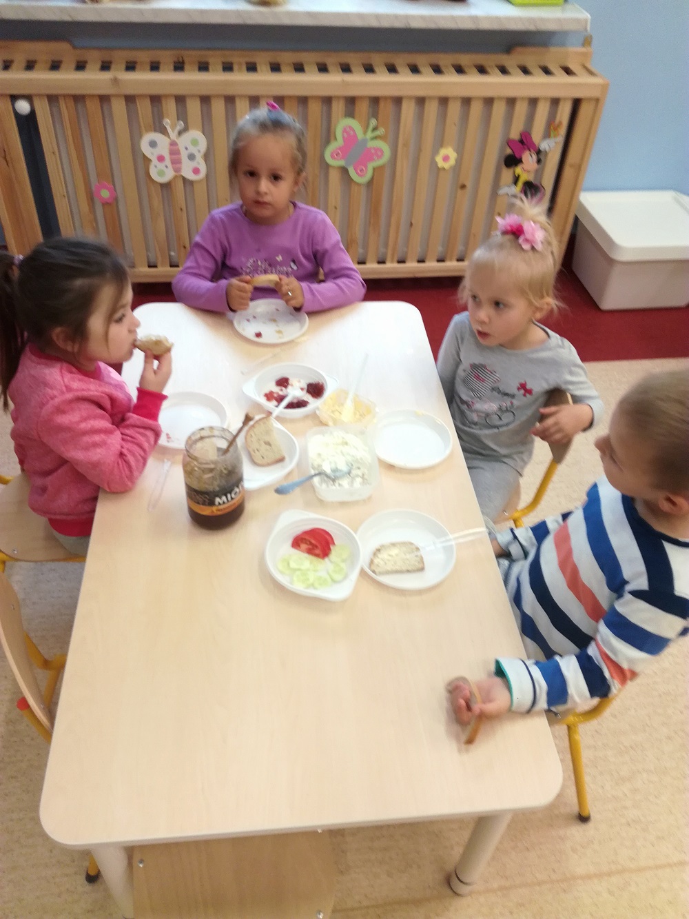 Grupa 3-4 latków wzięła aktywny udział w akcji „ Dzień Zdrowego Śniadania” w ramach programu „Śniadanie daje moc”.