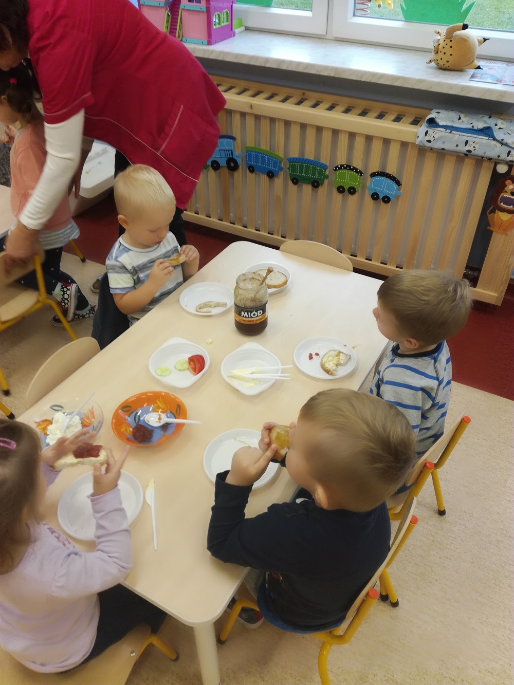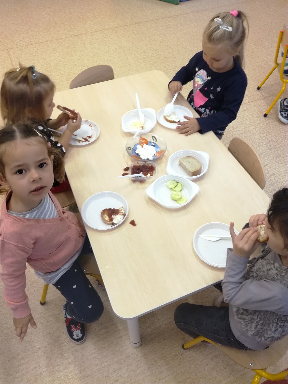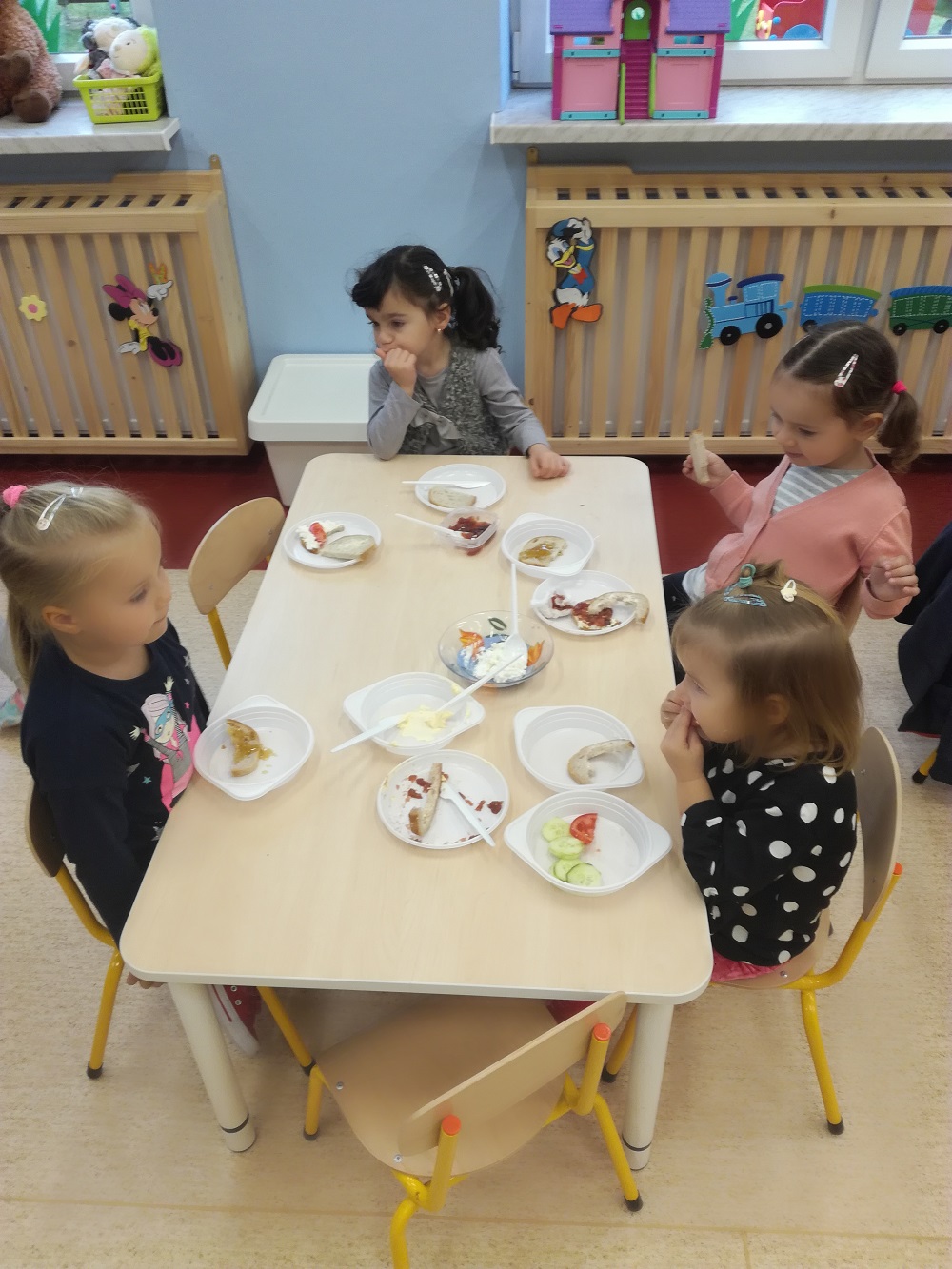 Grupa 3-4 latków wzięła aktywny udział w akcji „ Dzień Zdrowego Śniadania” w ramach programu „Śniadanie daje moc”.