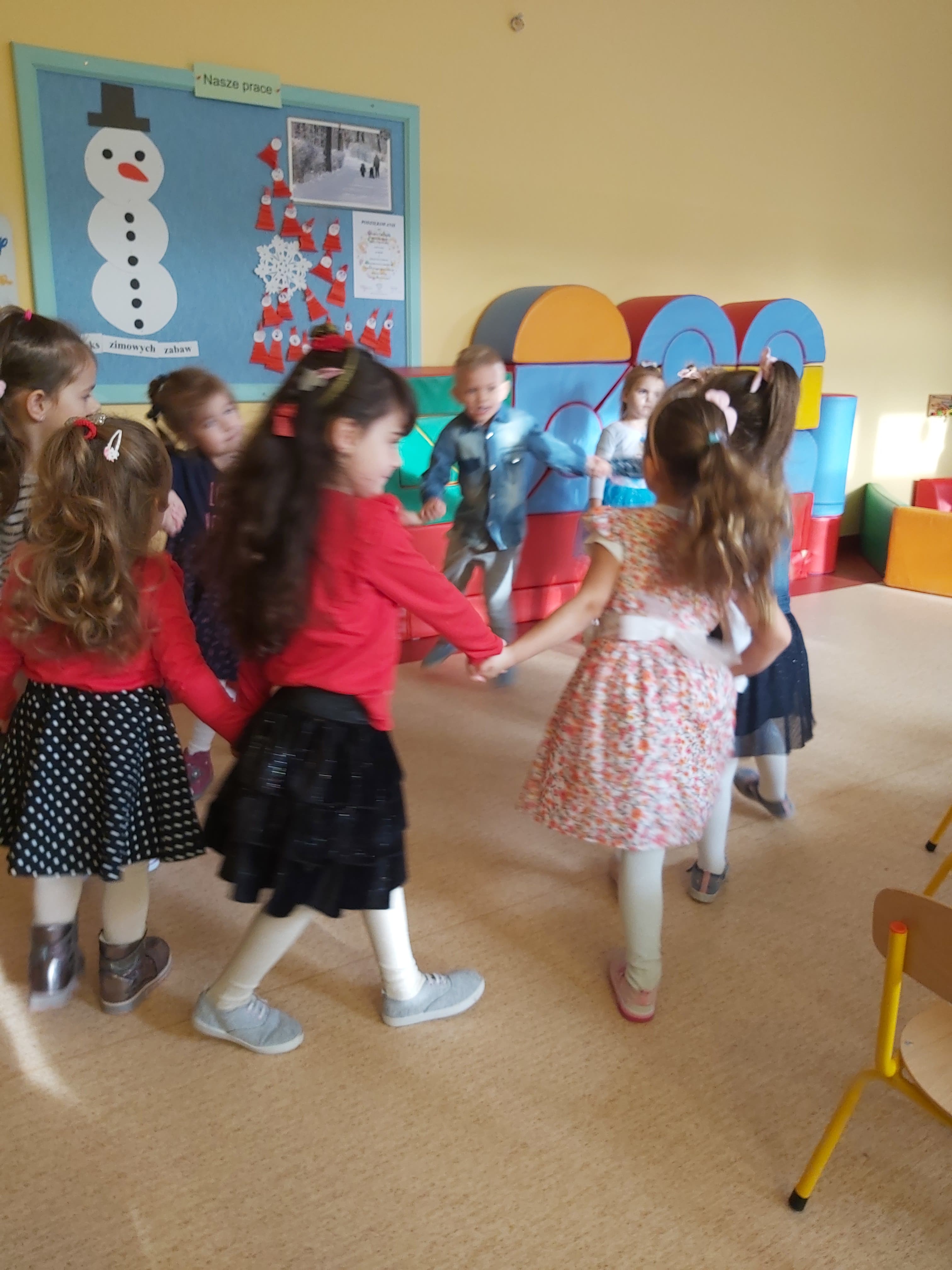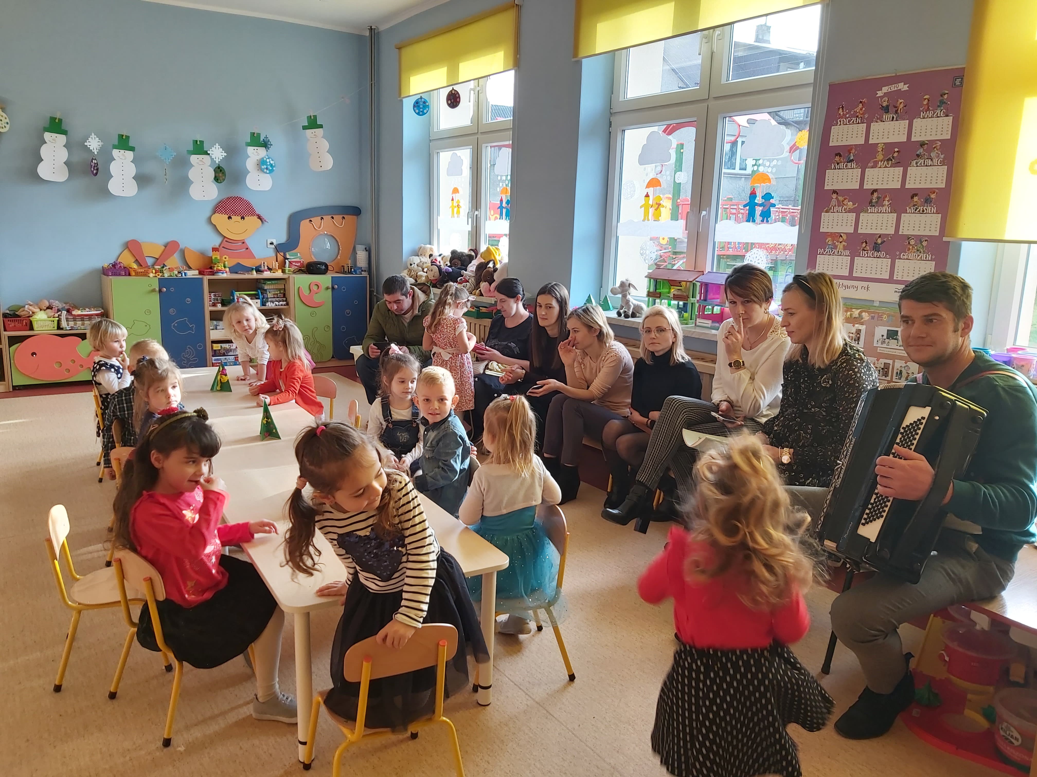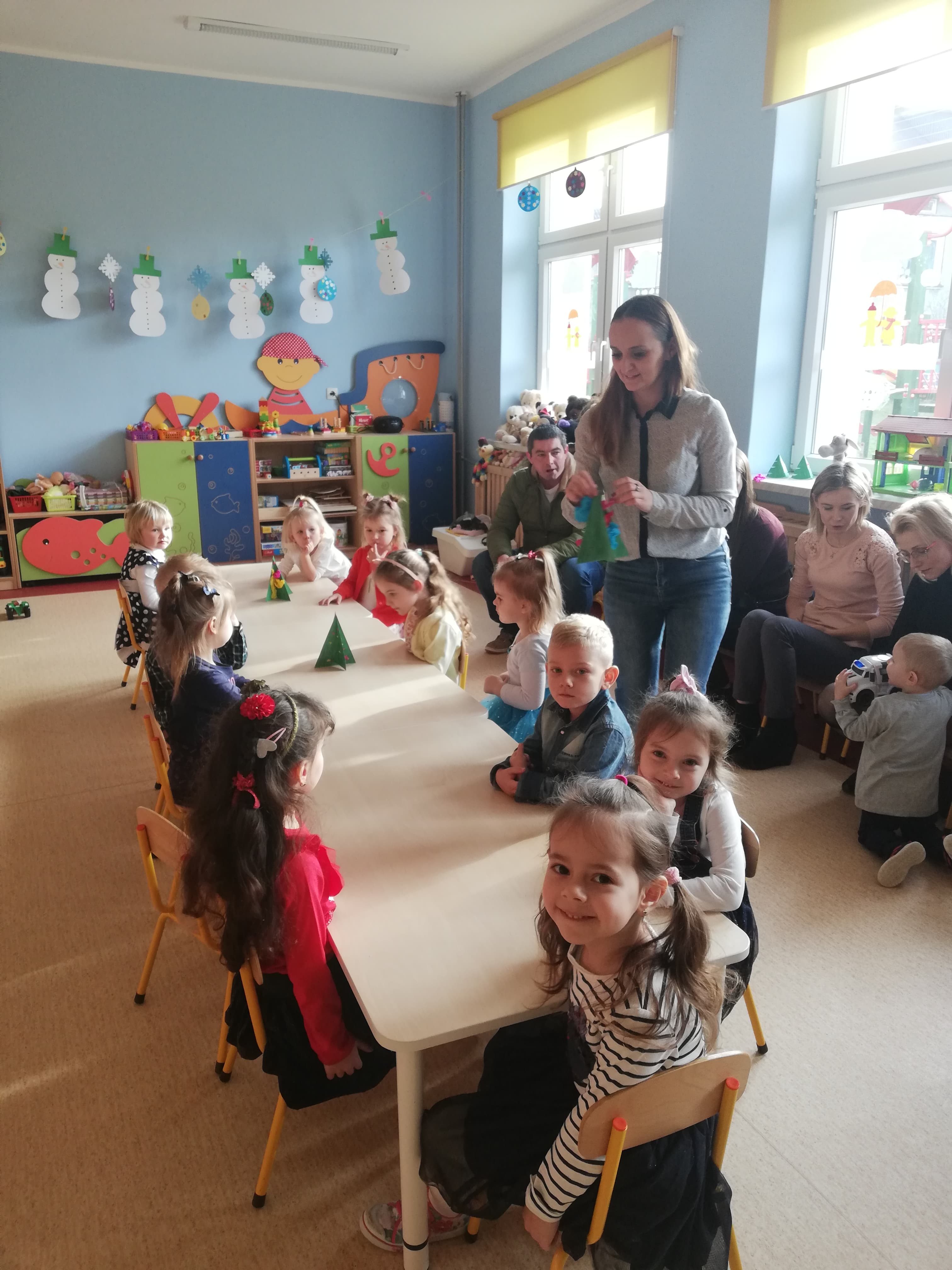Dnia 19.12.2019r. w naszym przedszkolu odbyło się przedświąteczne spotkanie, na które przybyli rodzice, by wspólnie z dziećmi kolędować i tym samym poczuć atmosferę zbliżających się Świąt Bożego Narodzenia.