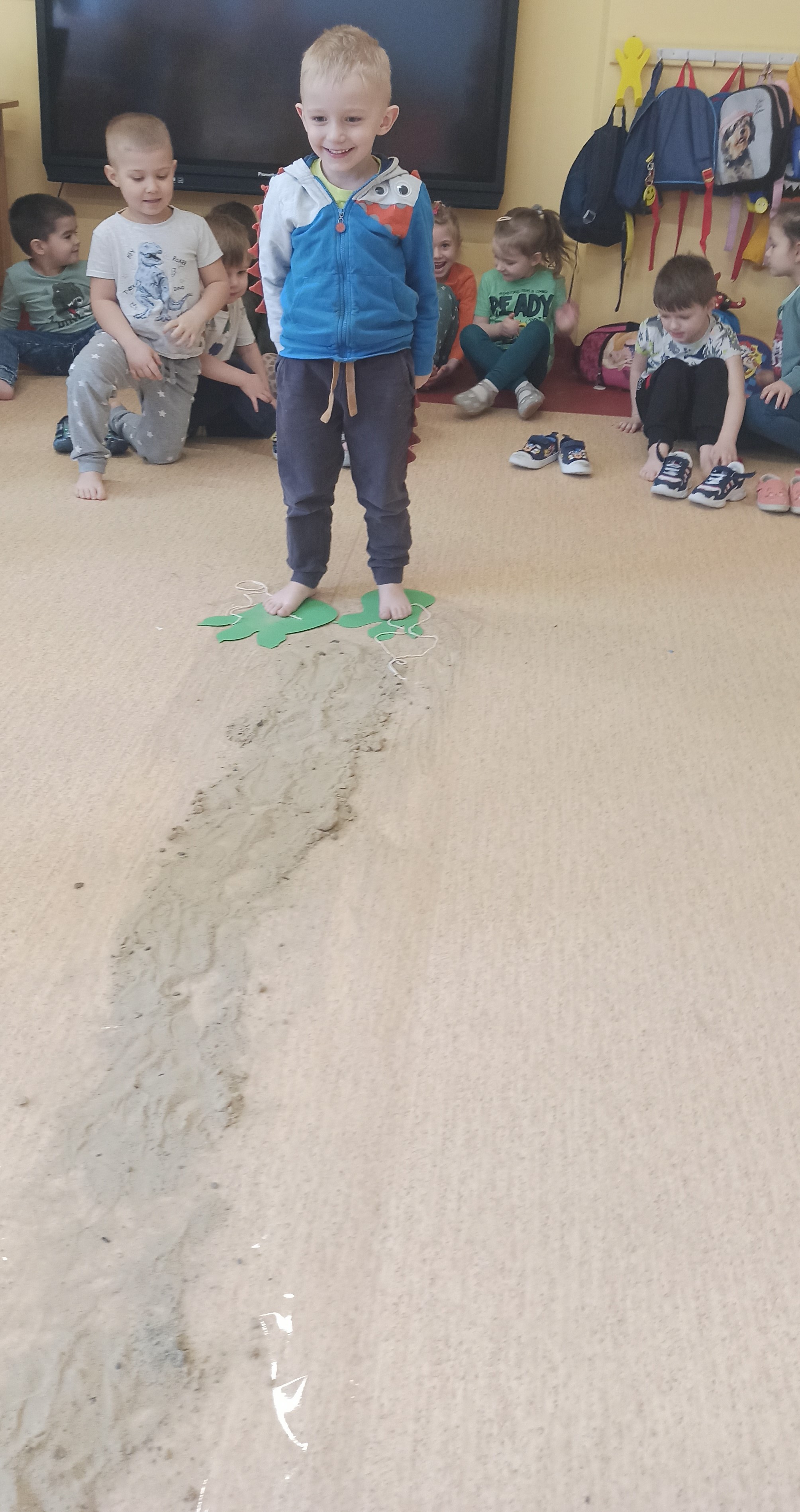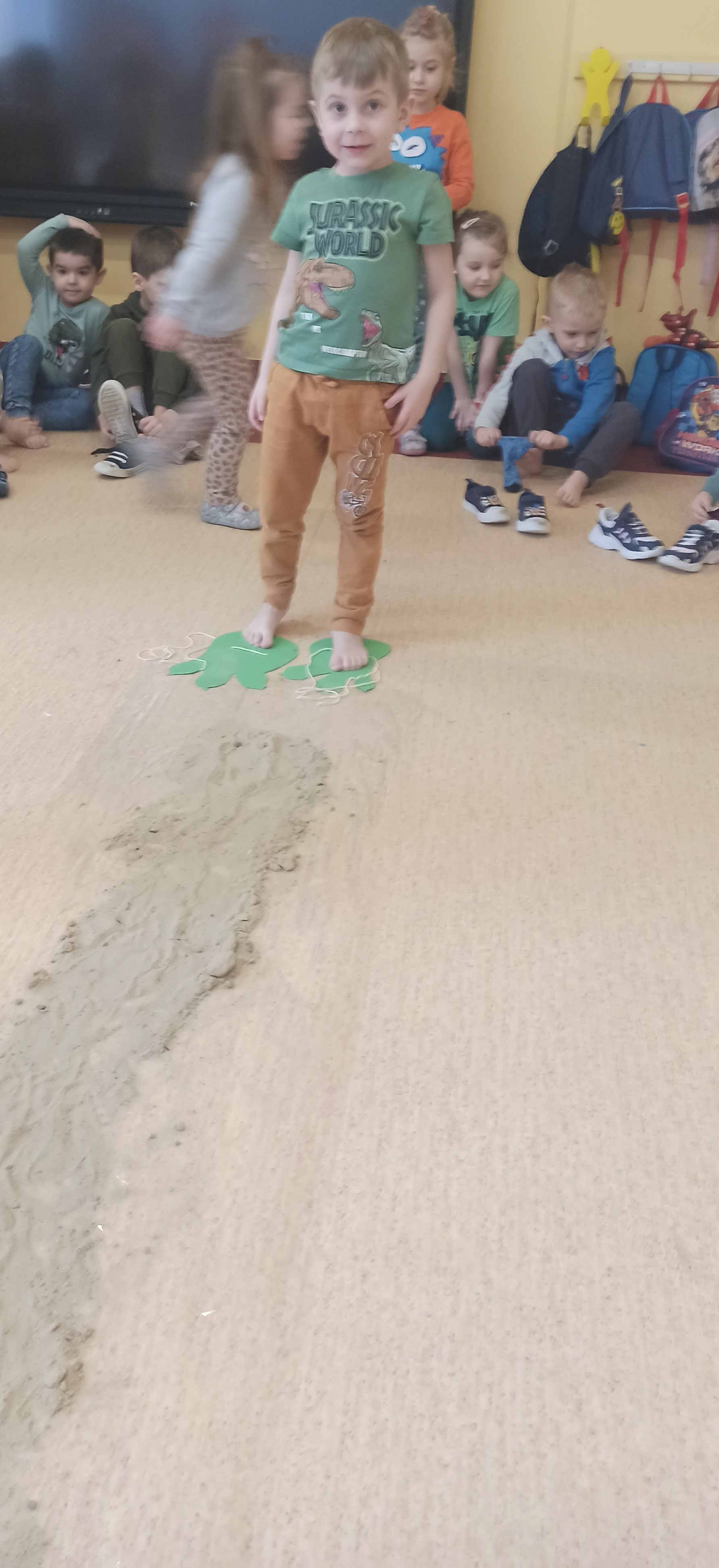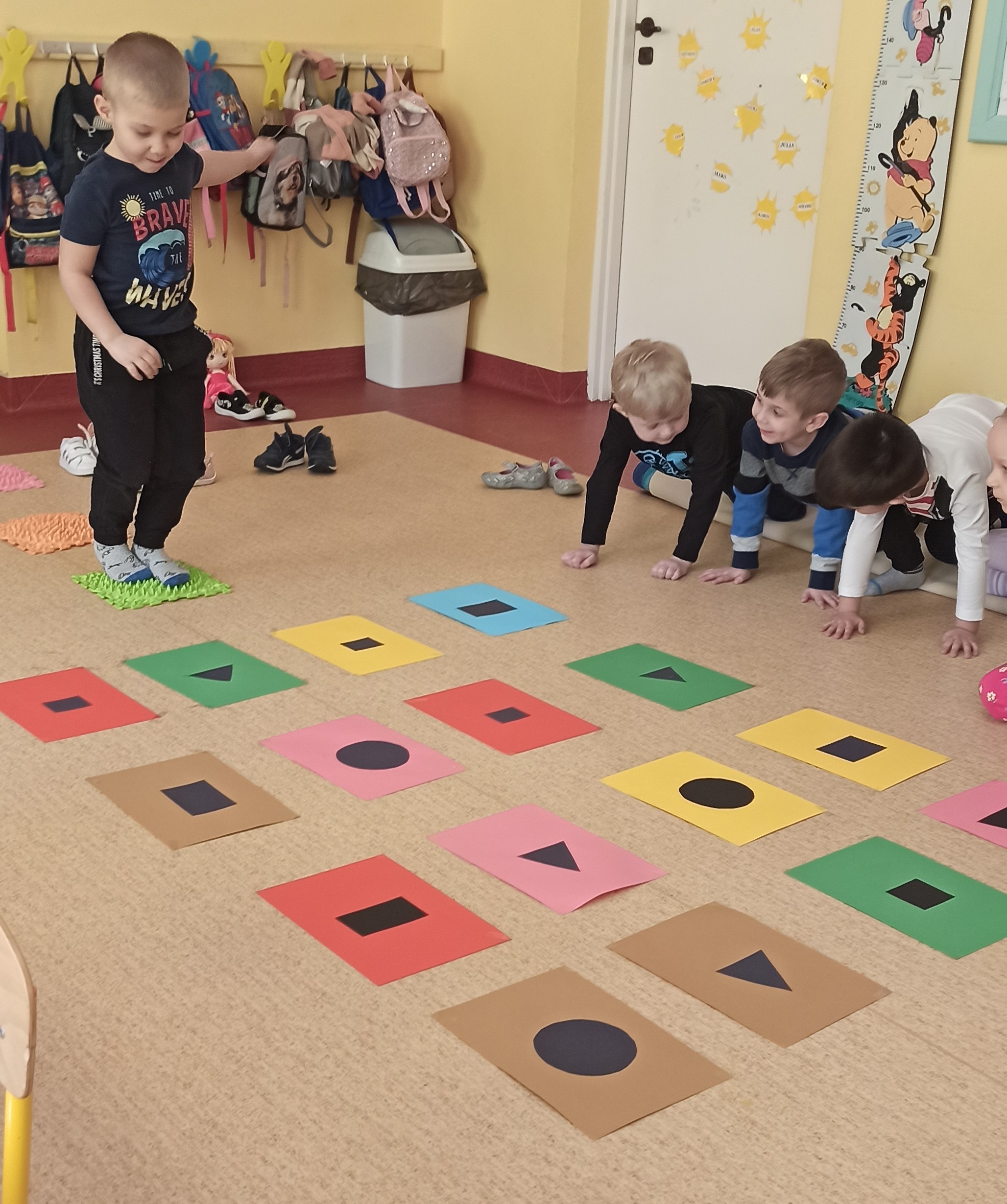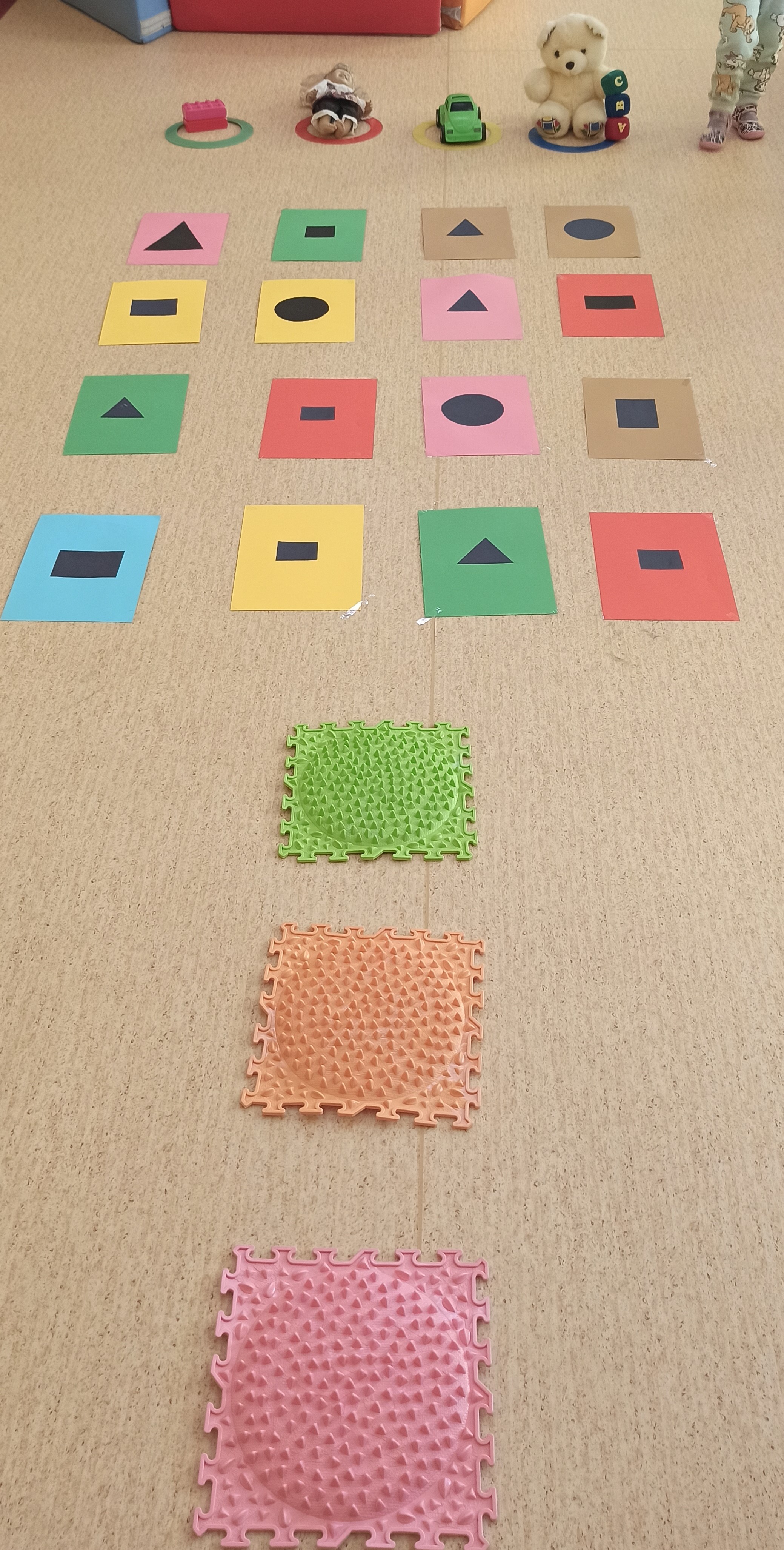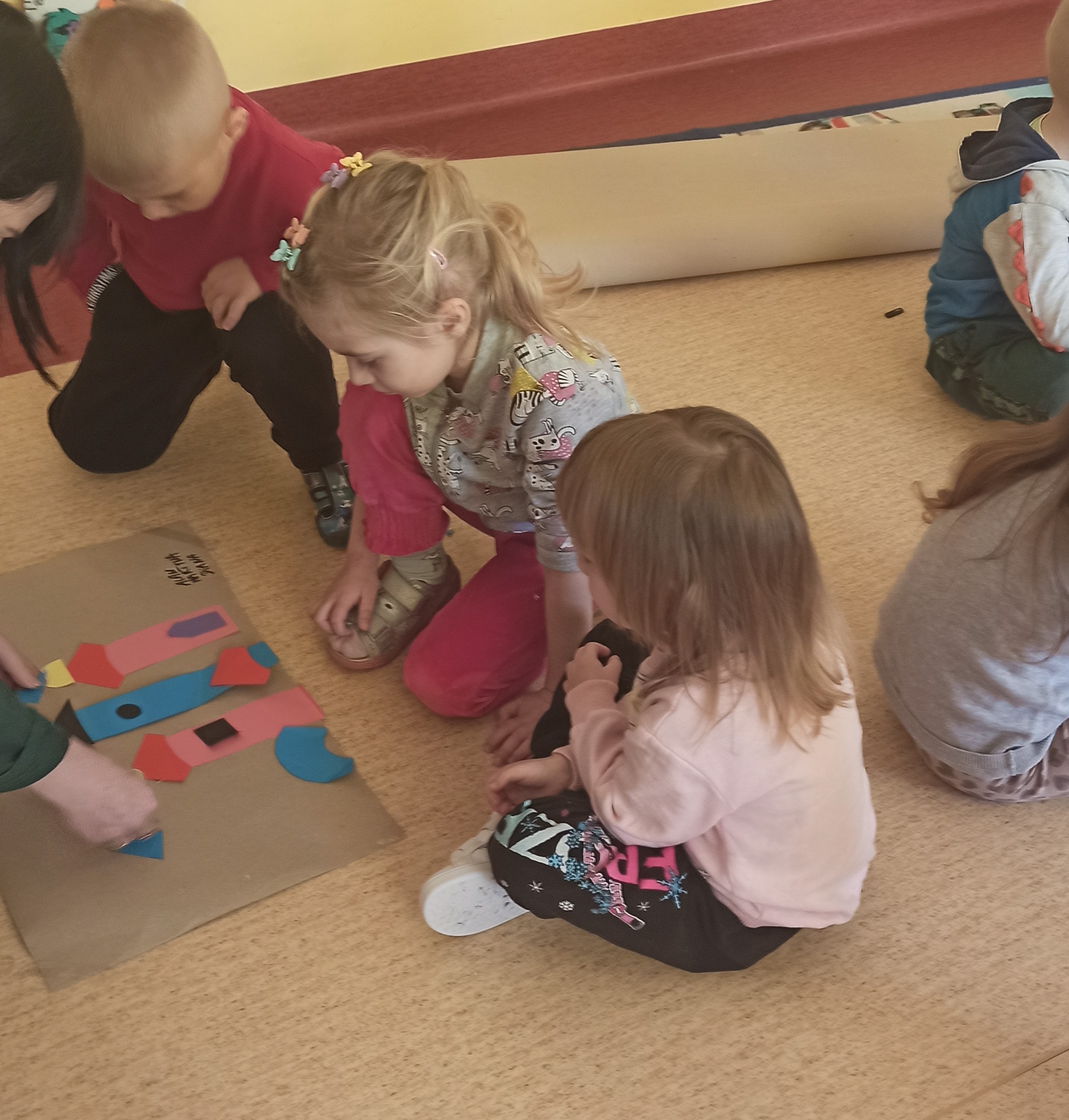 Zabawy sensoryczno- motoryczne to fajna propozycja dla przedszkolaków, które świetnie bawiły się w podskokach i utrwalały nazwy figur geometrycznych oraz budowały zamki. Dzieci przypomniały sobie także kolory oraz wybierały swoje ulubione zabawki, tj. misio, lalka, samochód lub klocki.