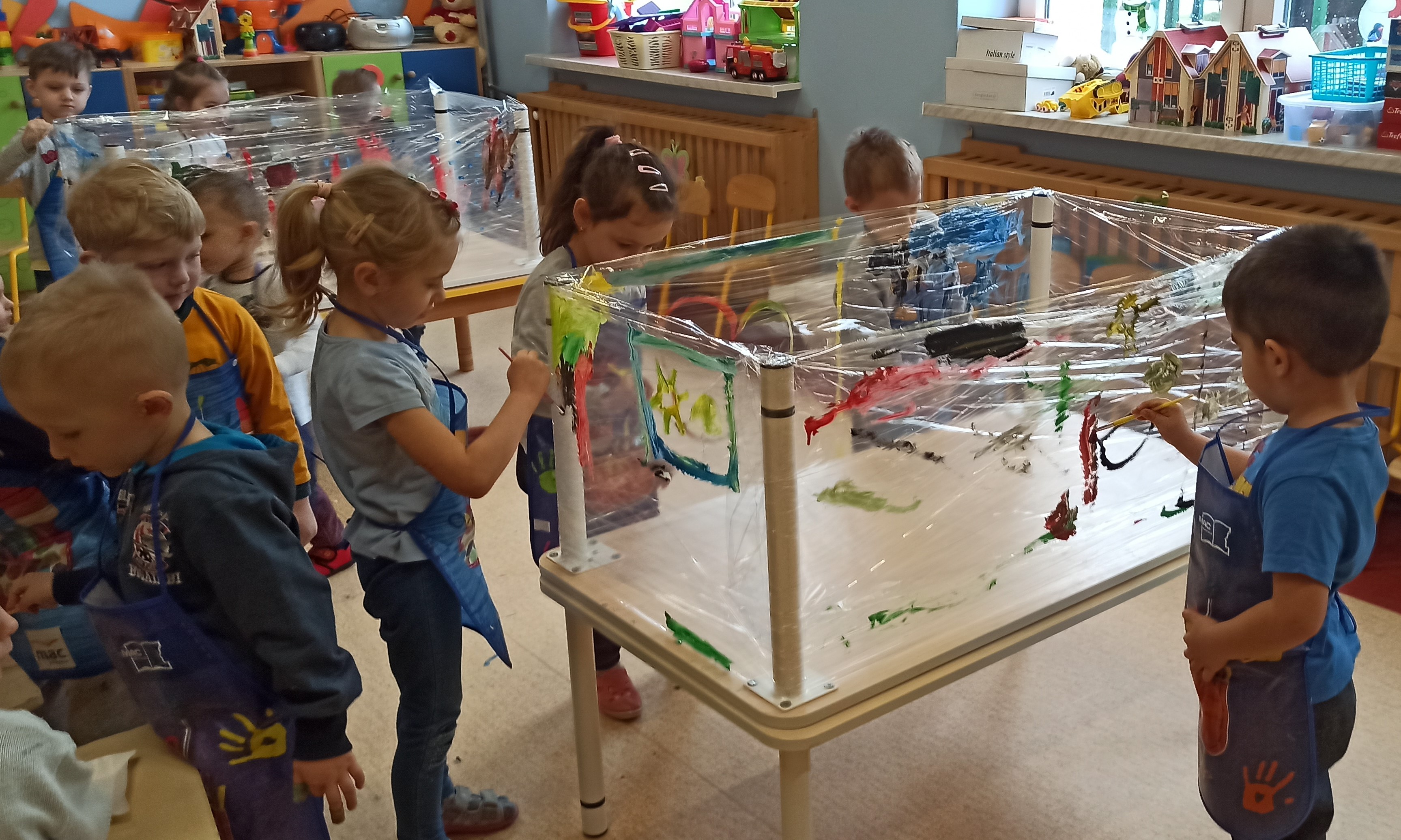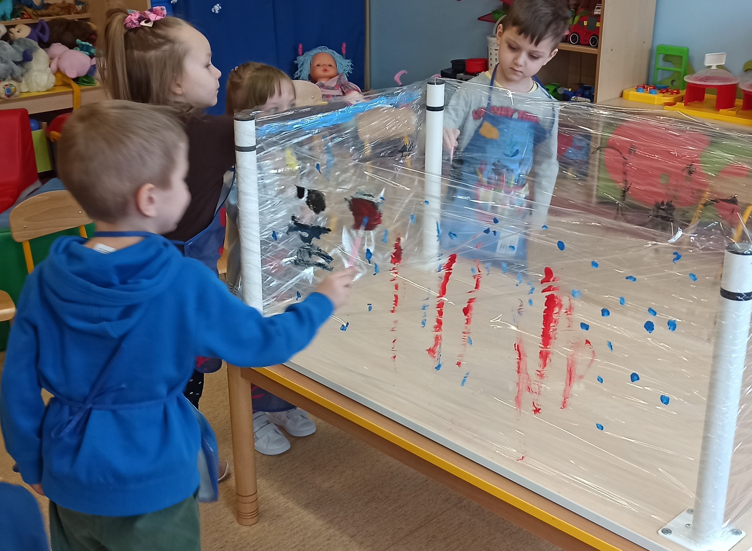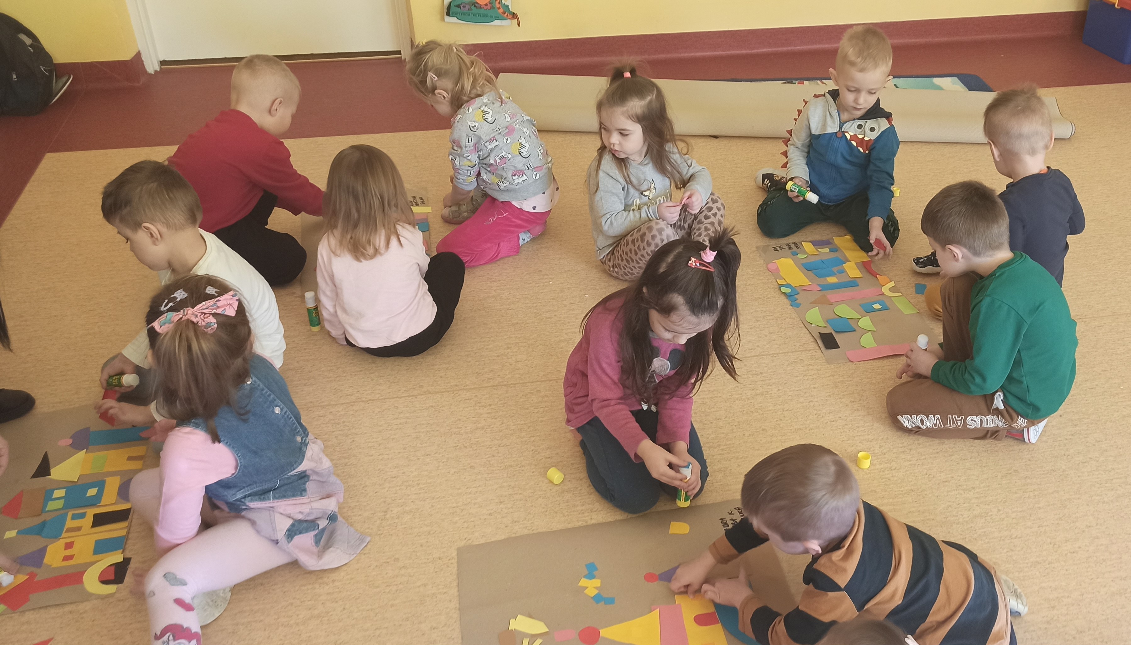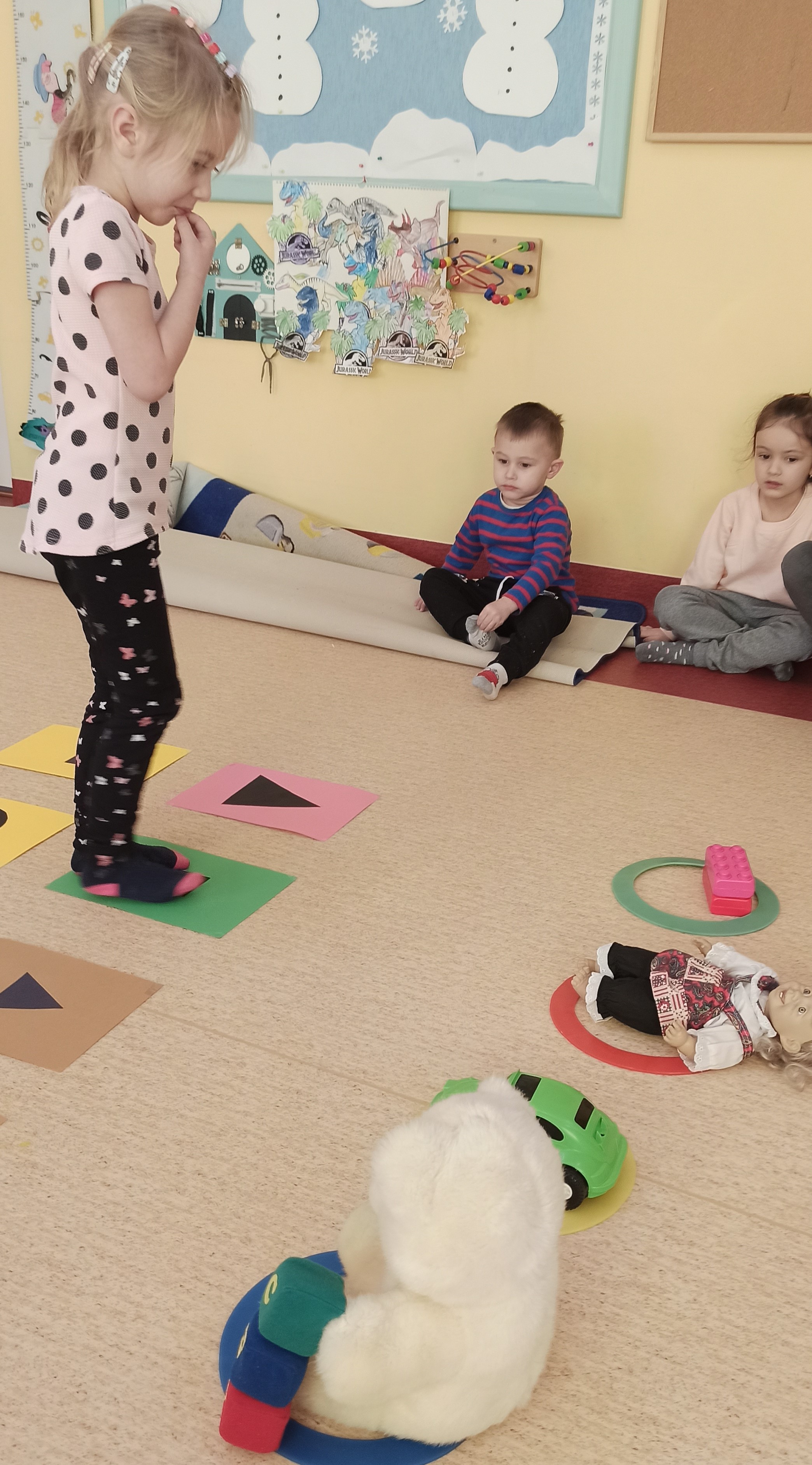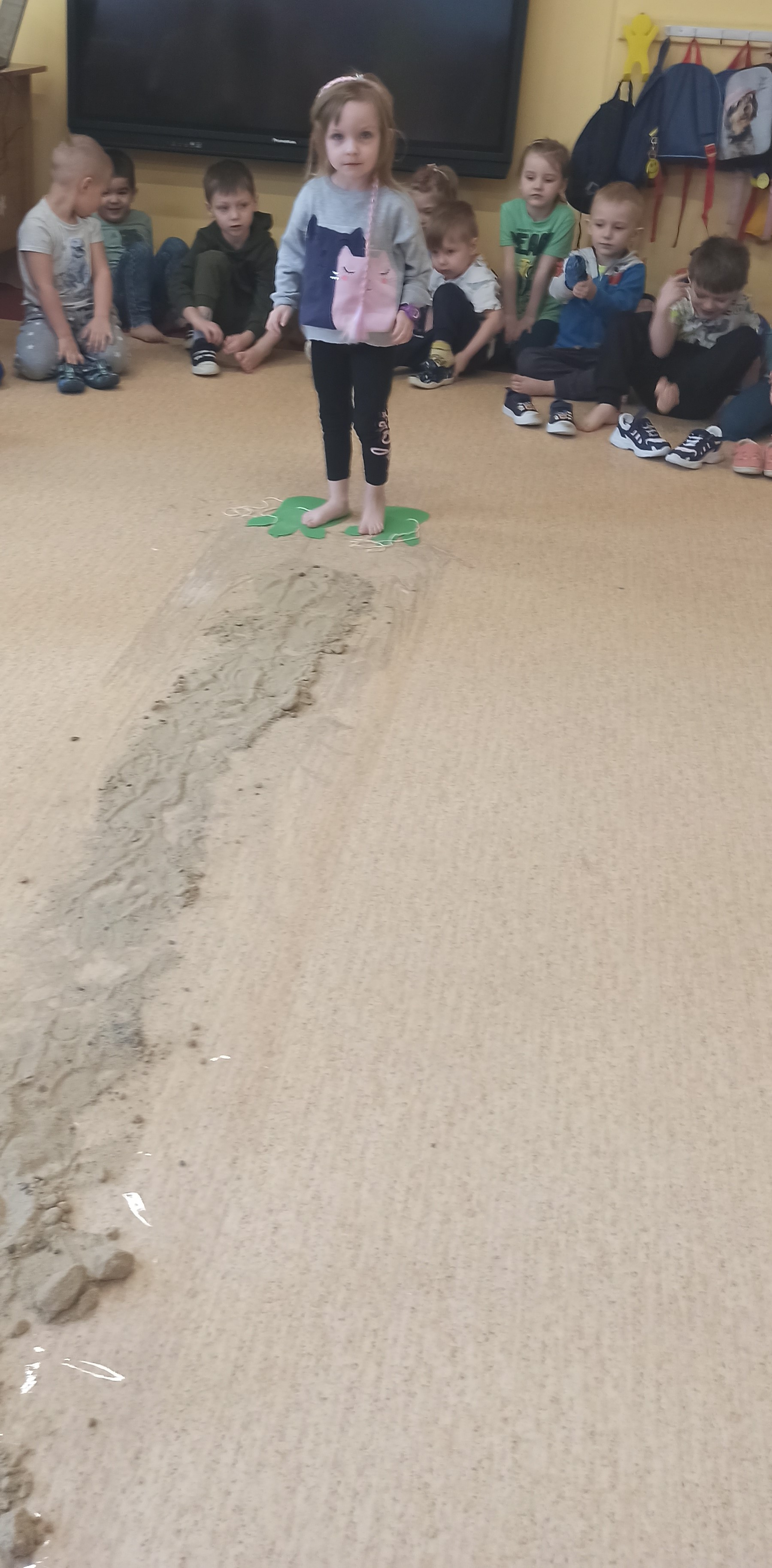Zabawy sensoryczno- motoryczne to fajna propozycja dla przedszkolaków, które świetnie bawiły się w podskokach i utrwalały nazwy figur geometrycznych oraz budowały zamki. Dzieci przypomniały sobie także kolory oraz wybierały swoje ulubione zabawki, tj. misio, lalka, samochód lub klocki.