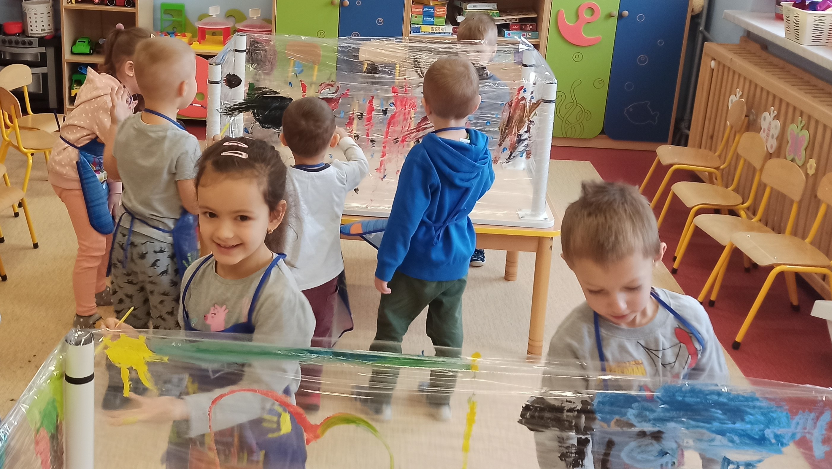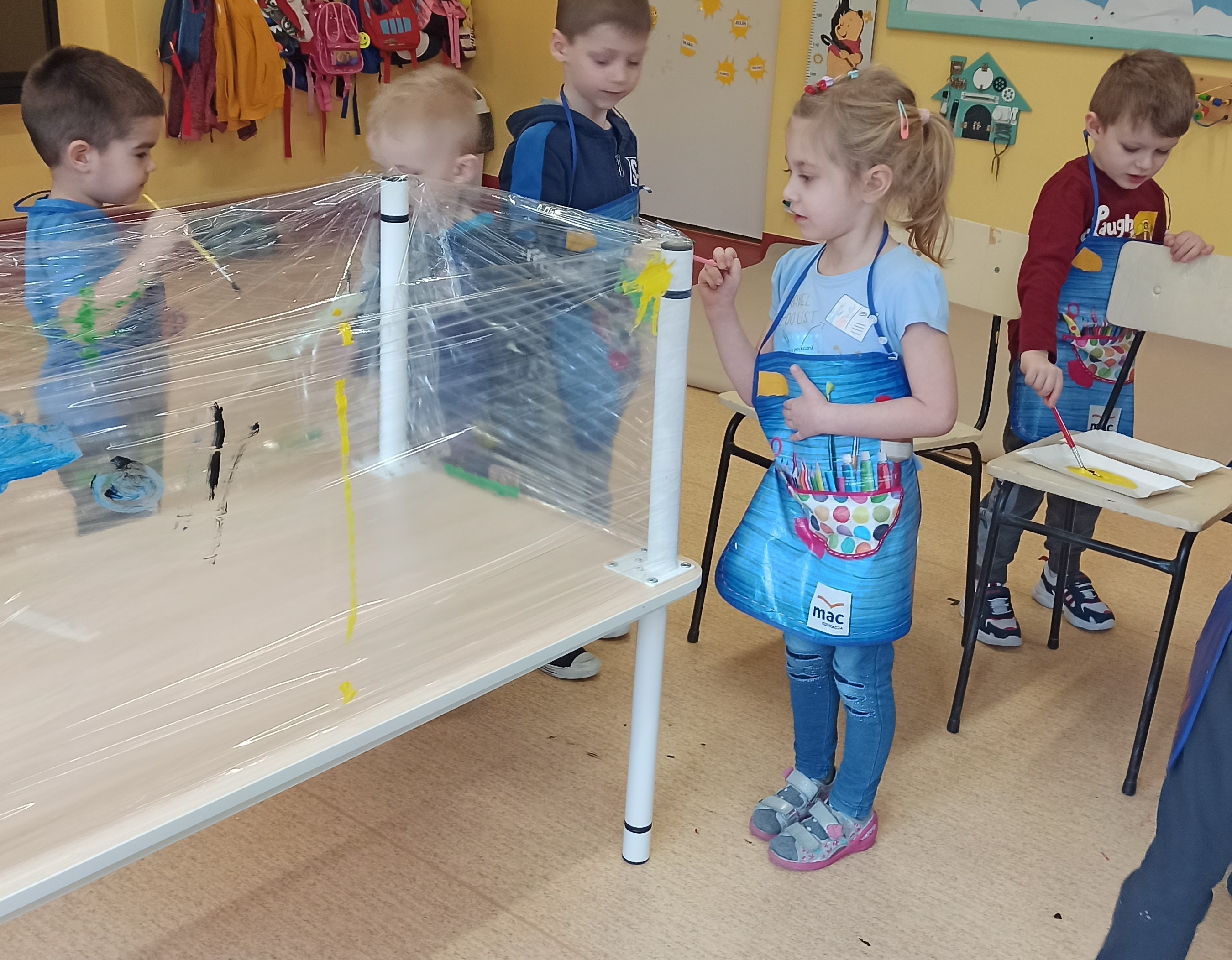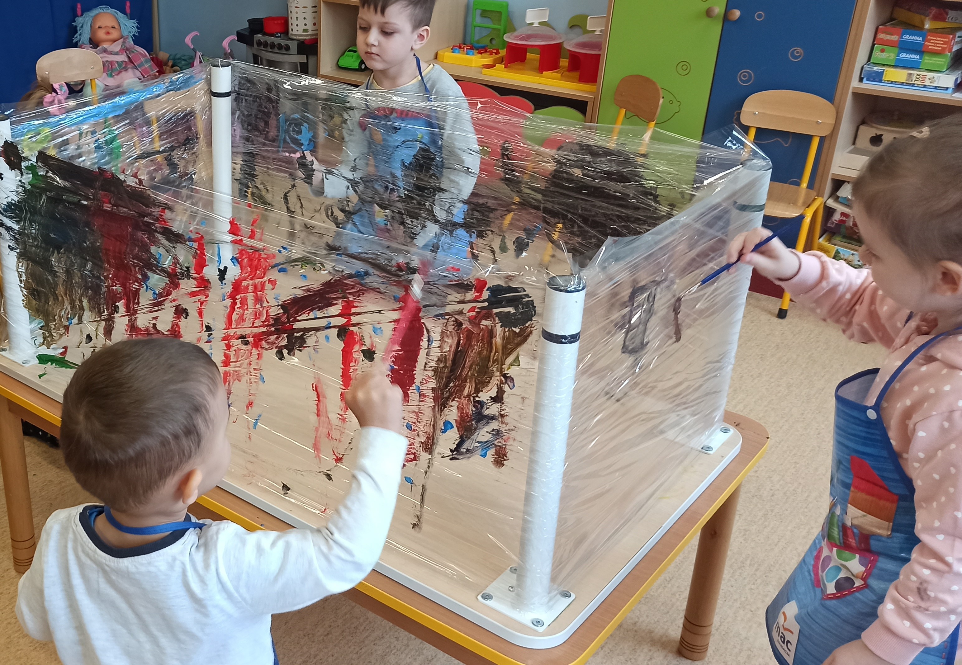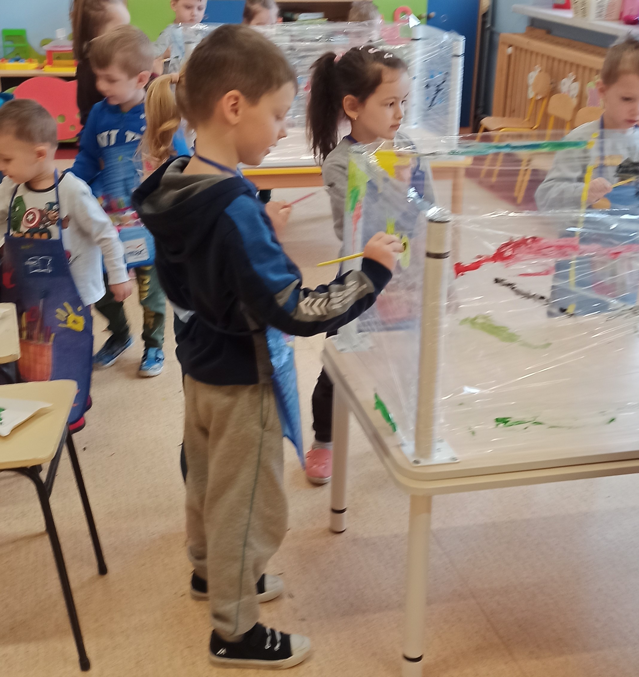 Zabawy sensoryczno- motoryczne to fajna propozycja dla przedszkolaków, które świetnie bawiły się w podskokach i utrwalały nazwy figur geometrycznych oraz budowały zamki. Dzieci przypomniały sobie także kolory oraz wybierały swoje ulubione zabawki, tj. misio, lalka, samochód lub klocki.