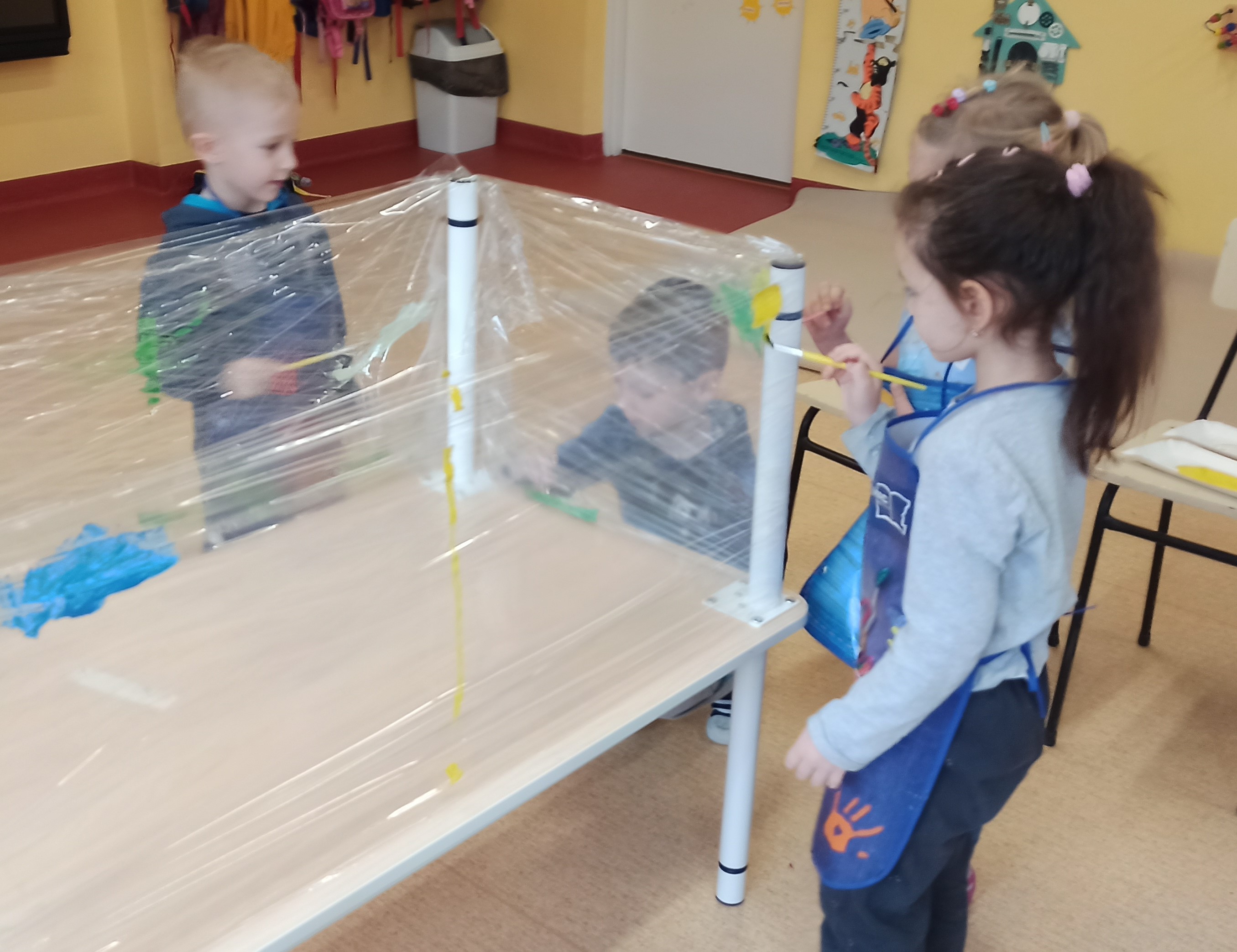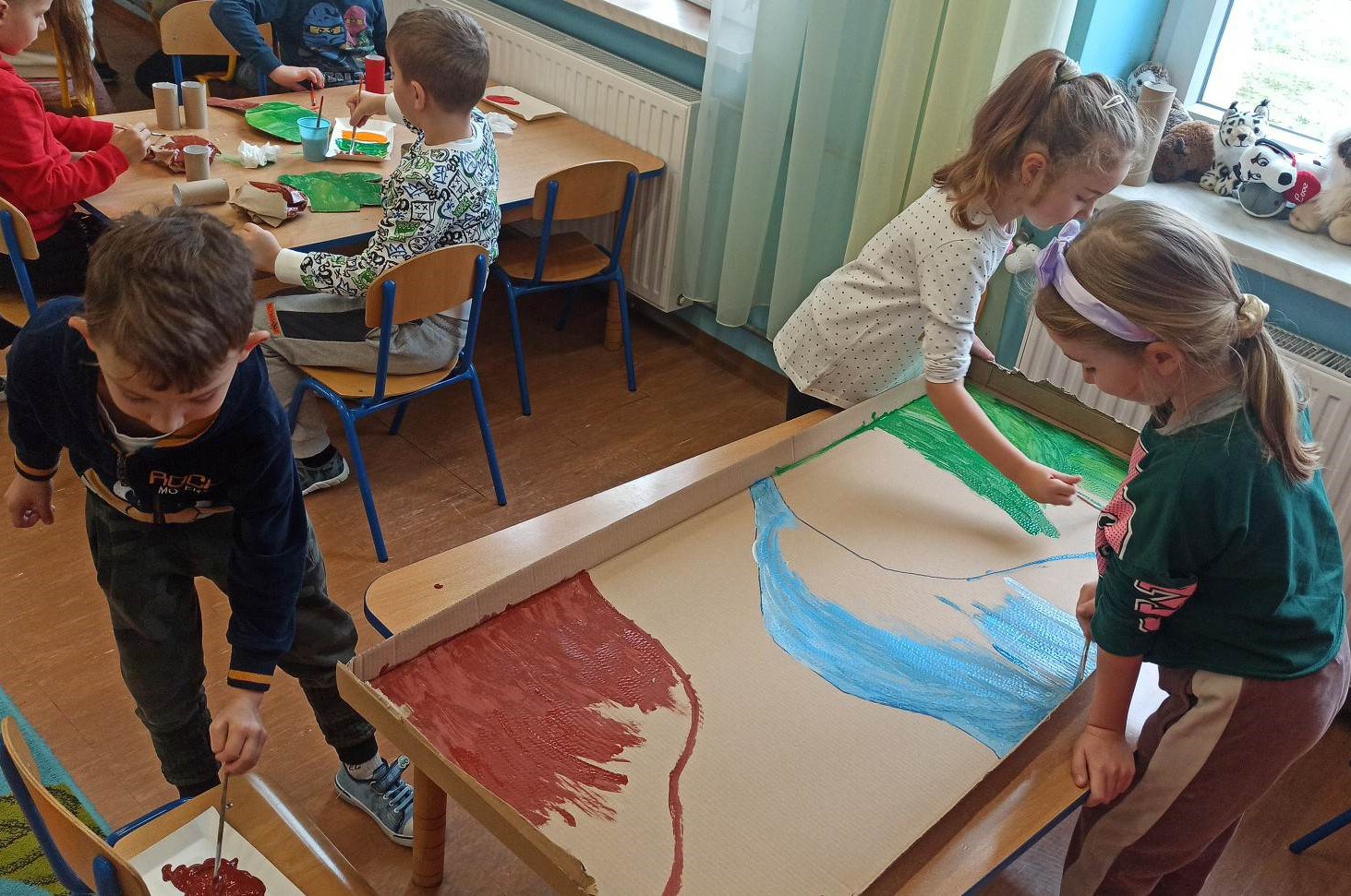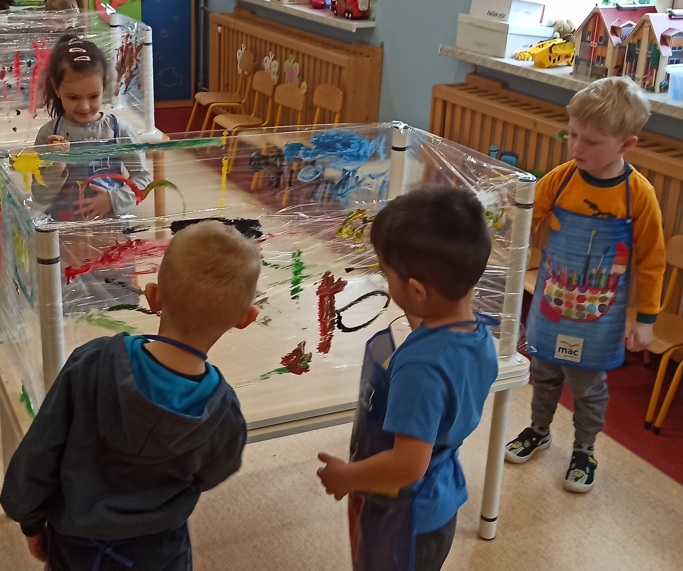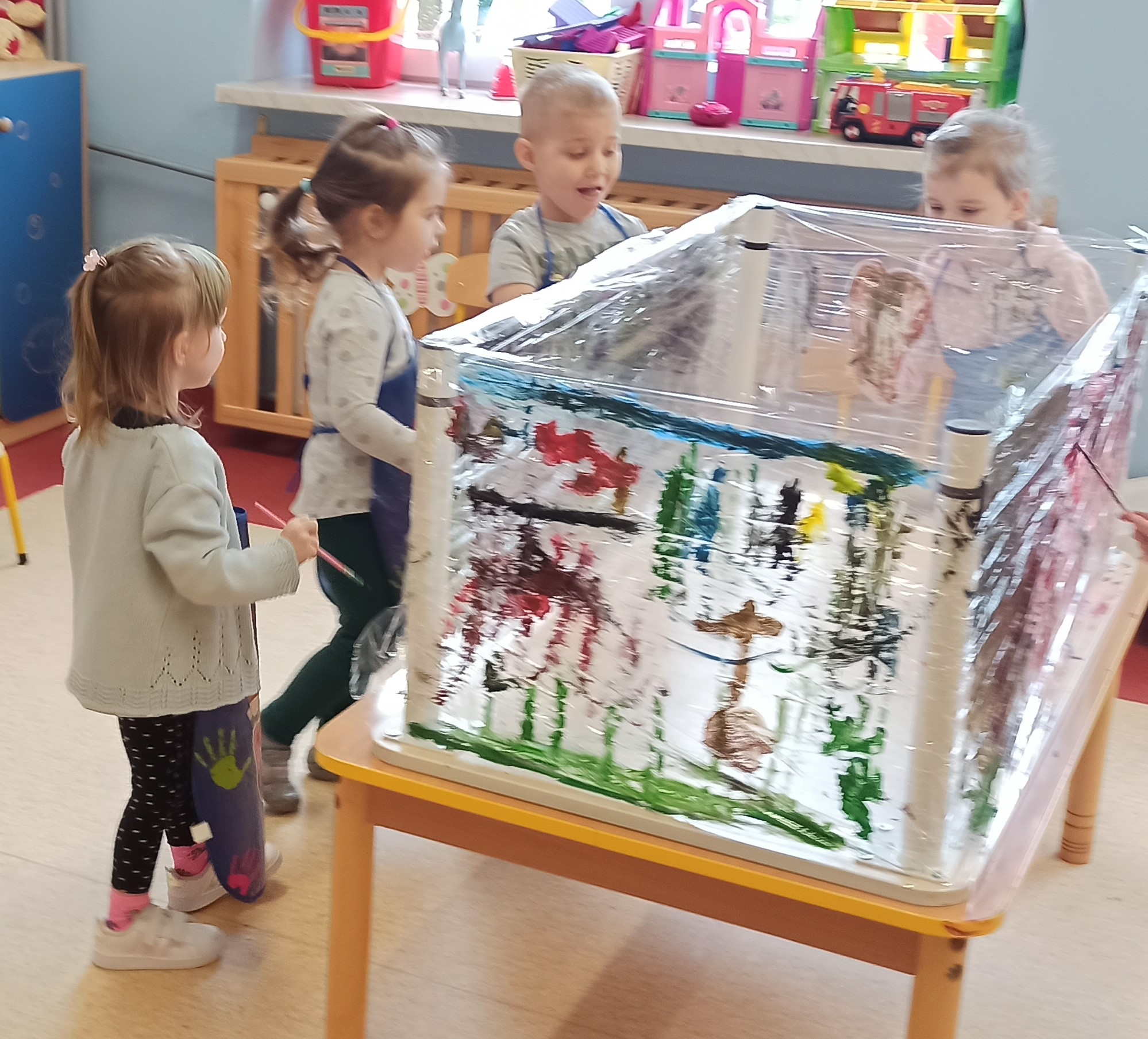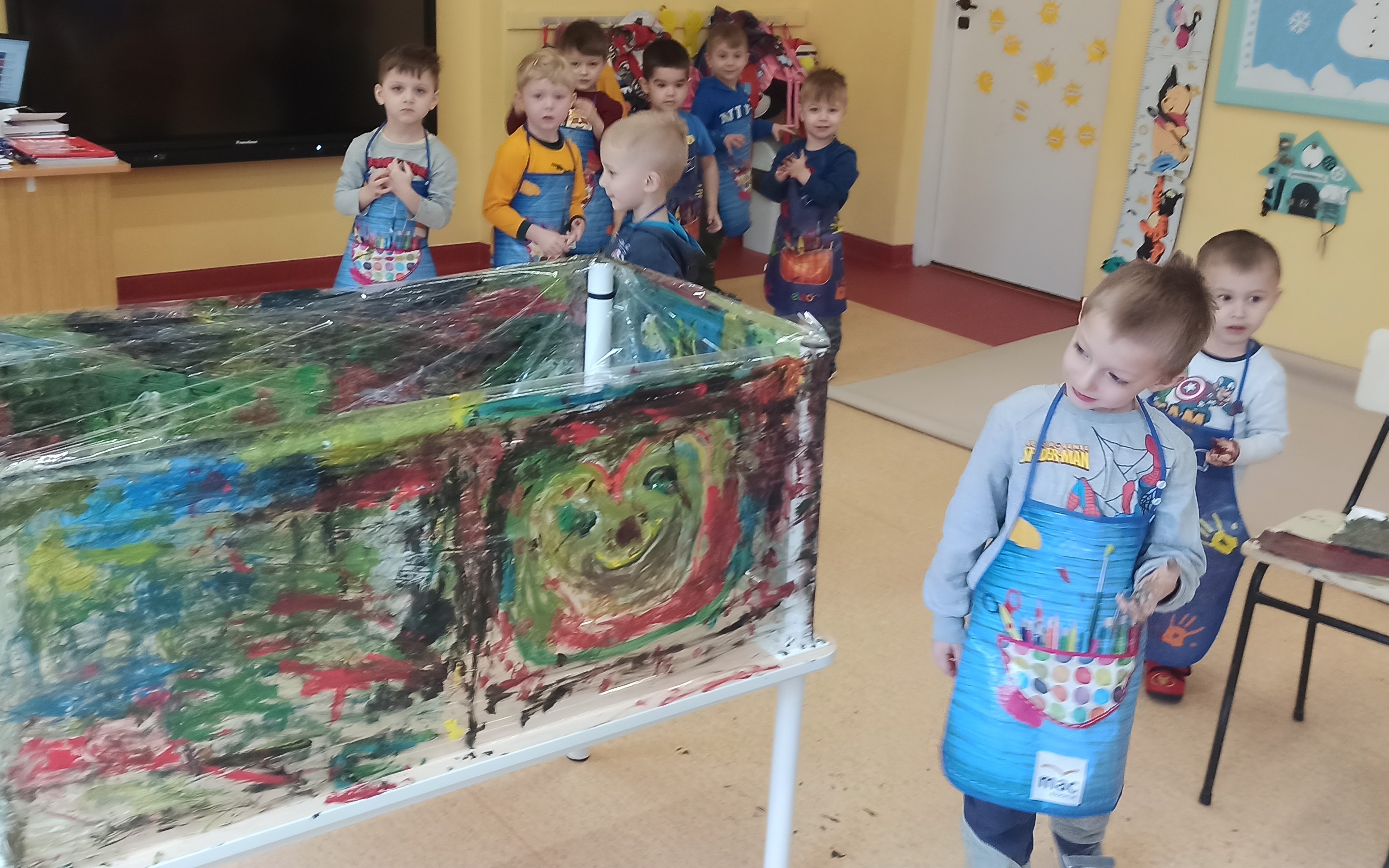Zabawy sensoryczno- motoryczne to fajna propozycja dla przedszkolaków, które świetnie bawiły się w podskokach i utrwalały nazwy figur geometrycznych oraz budowały zamki. Dzieci przypomniały sobie także kolory oraz wybierały swoje ulubione zabawki, tj. misio, lalka, samochód lub klocki.