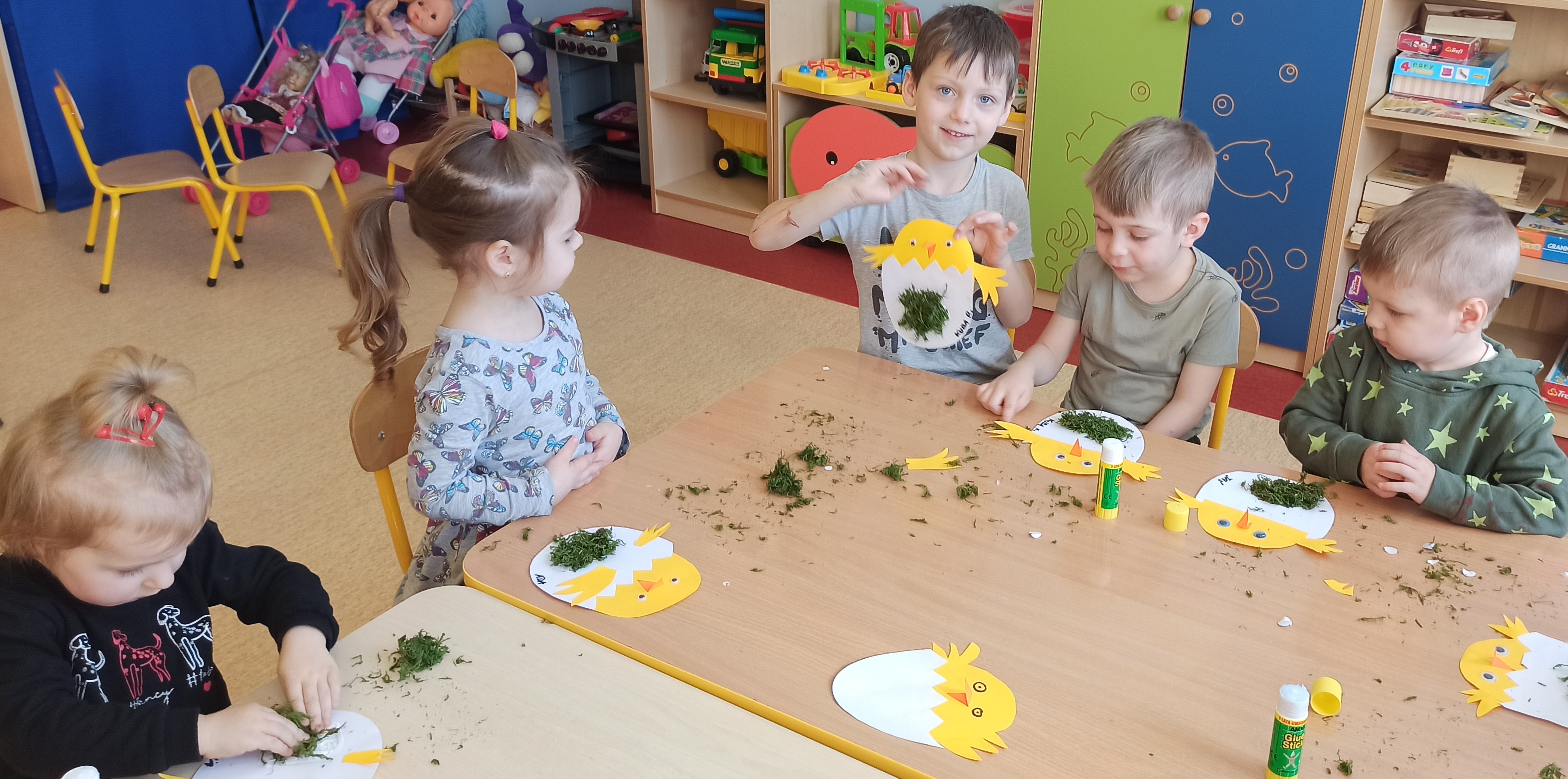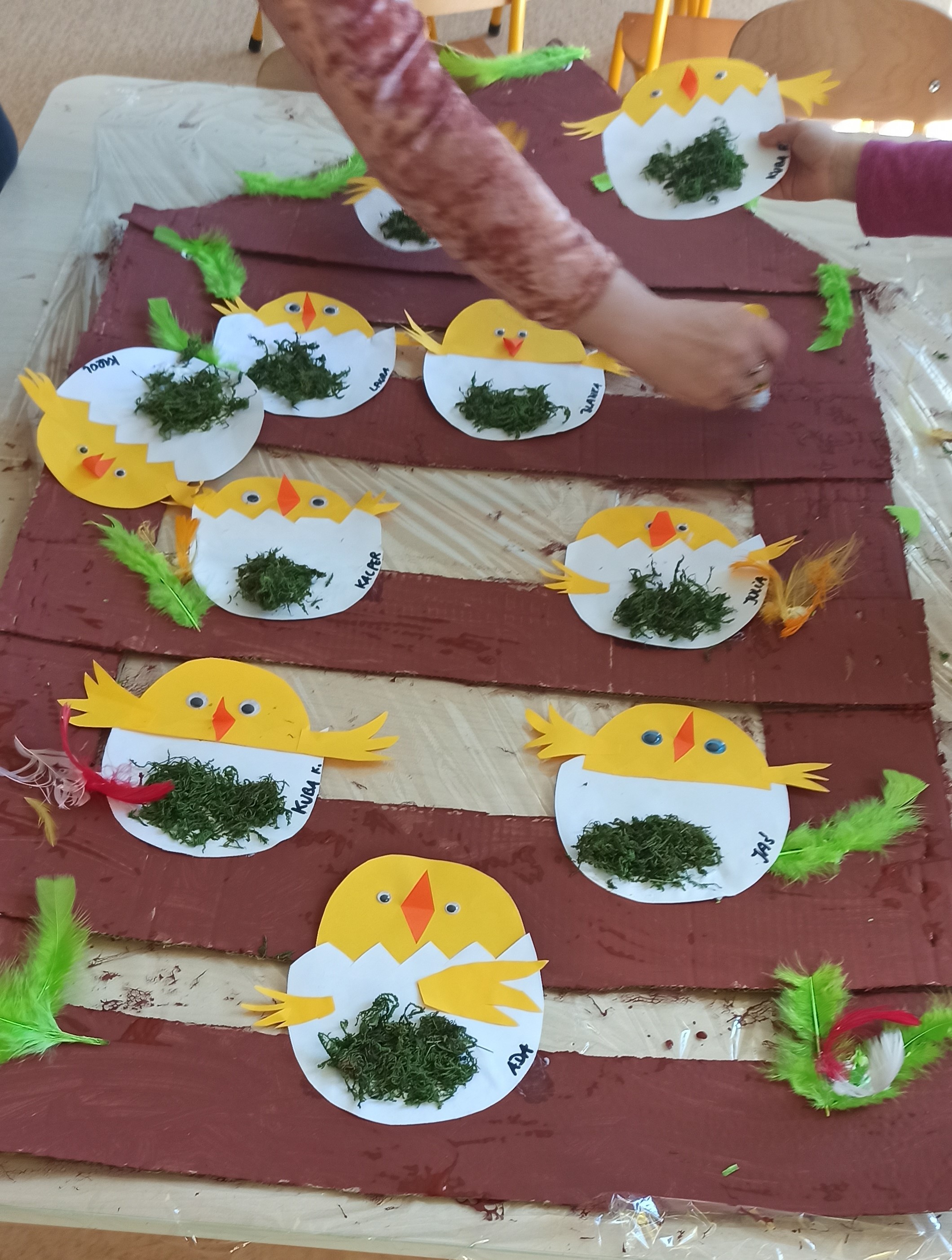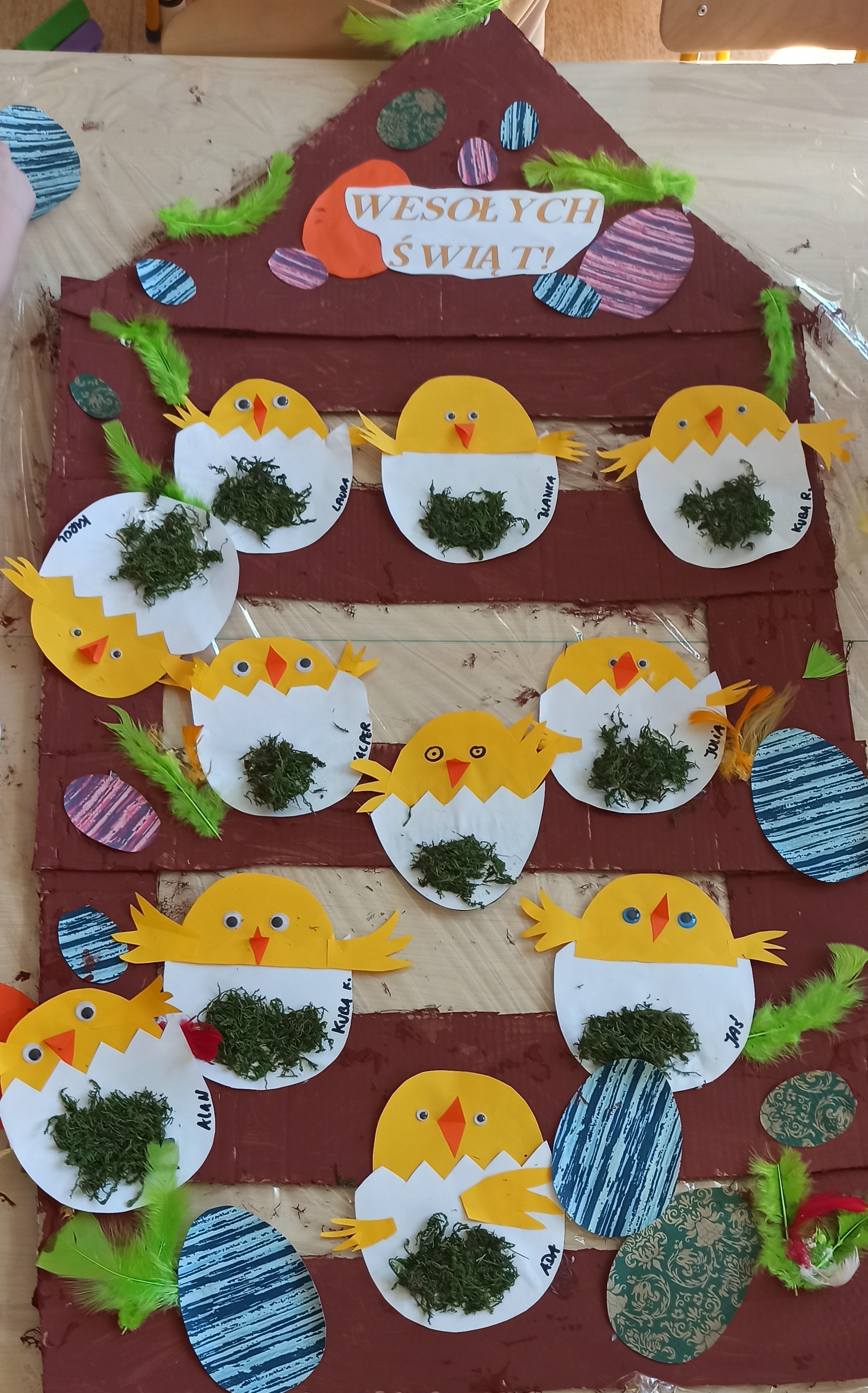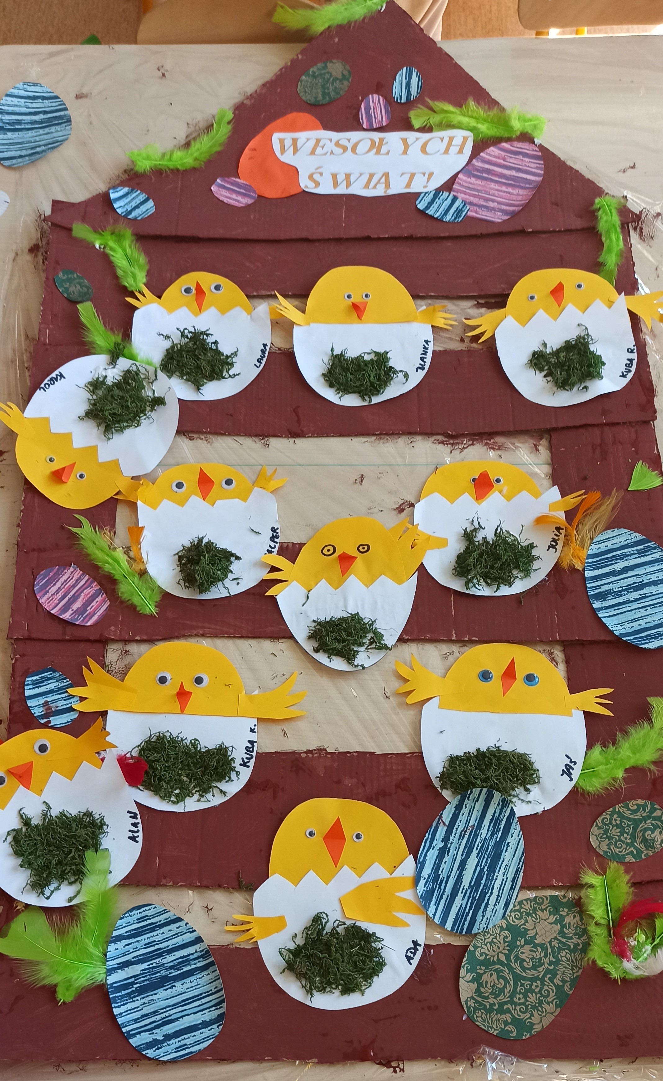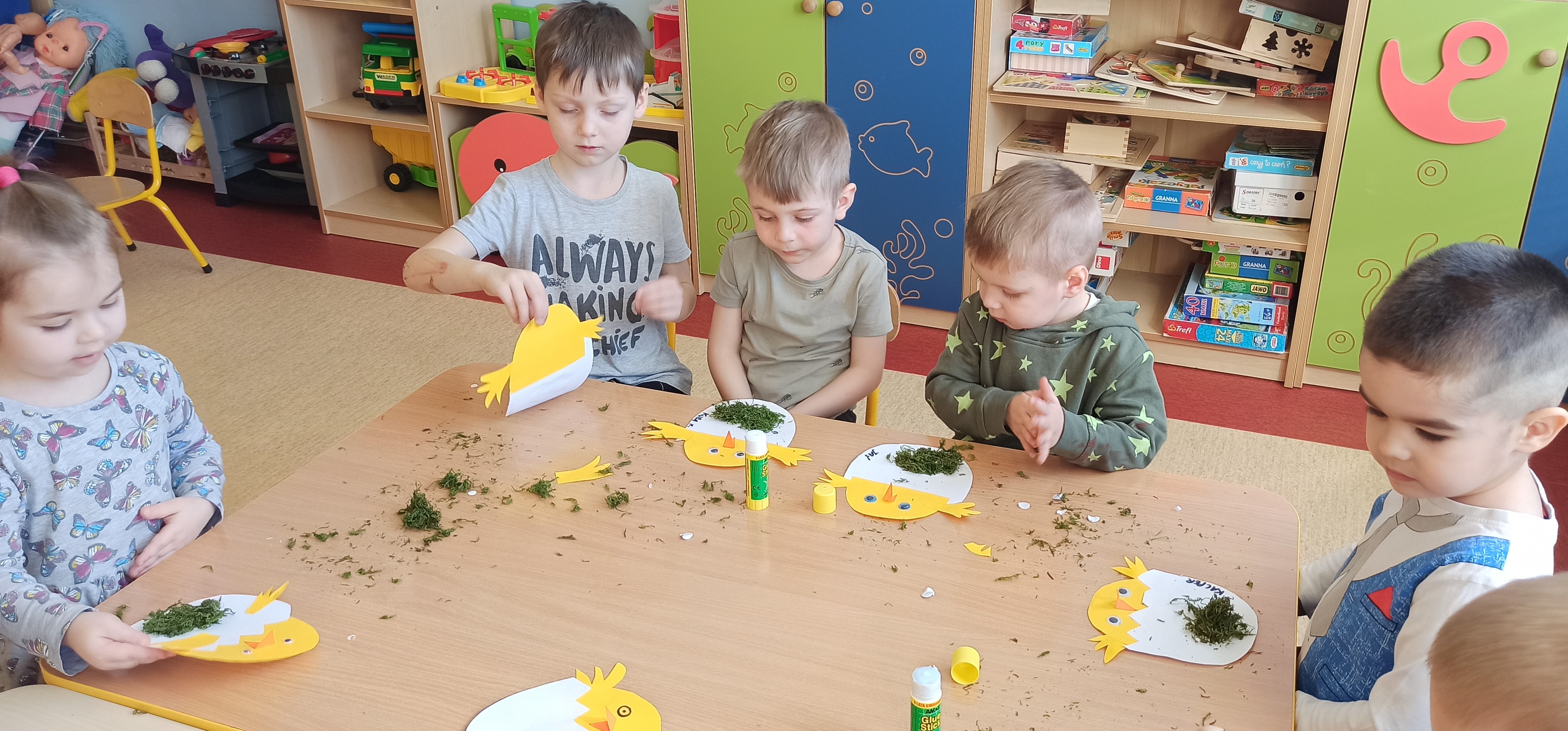 Maluchy oraz dzieci z oddziału „0” wykonały piękne, żółte pisklaki. Miały okazję poznać zwyczaj siania rzeżuchy, nie zabrakło „Śmigusa- dyngusa”, pokarmów, które wkładamy do wielkanocnej święconki. Malowanie pisanek, nauka wierszyka „Cukrowy baranek”, składanie życzeń to wszystko dzieci miały okazję poznać w przedszkolu.