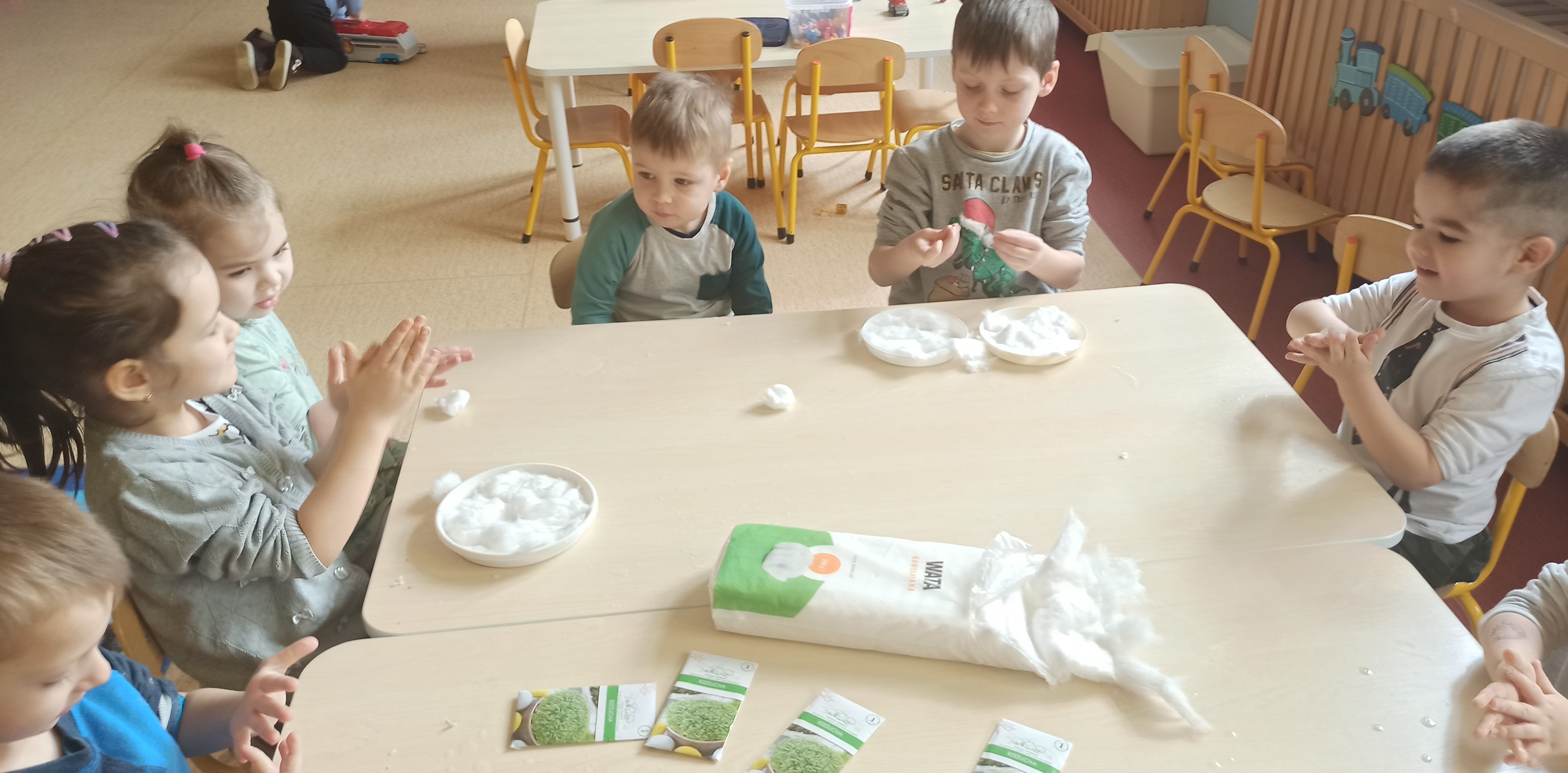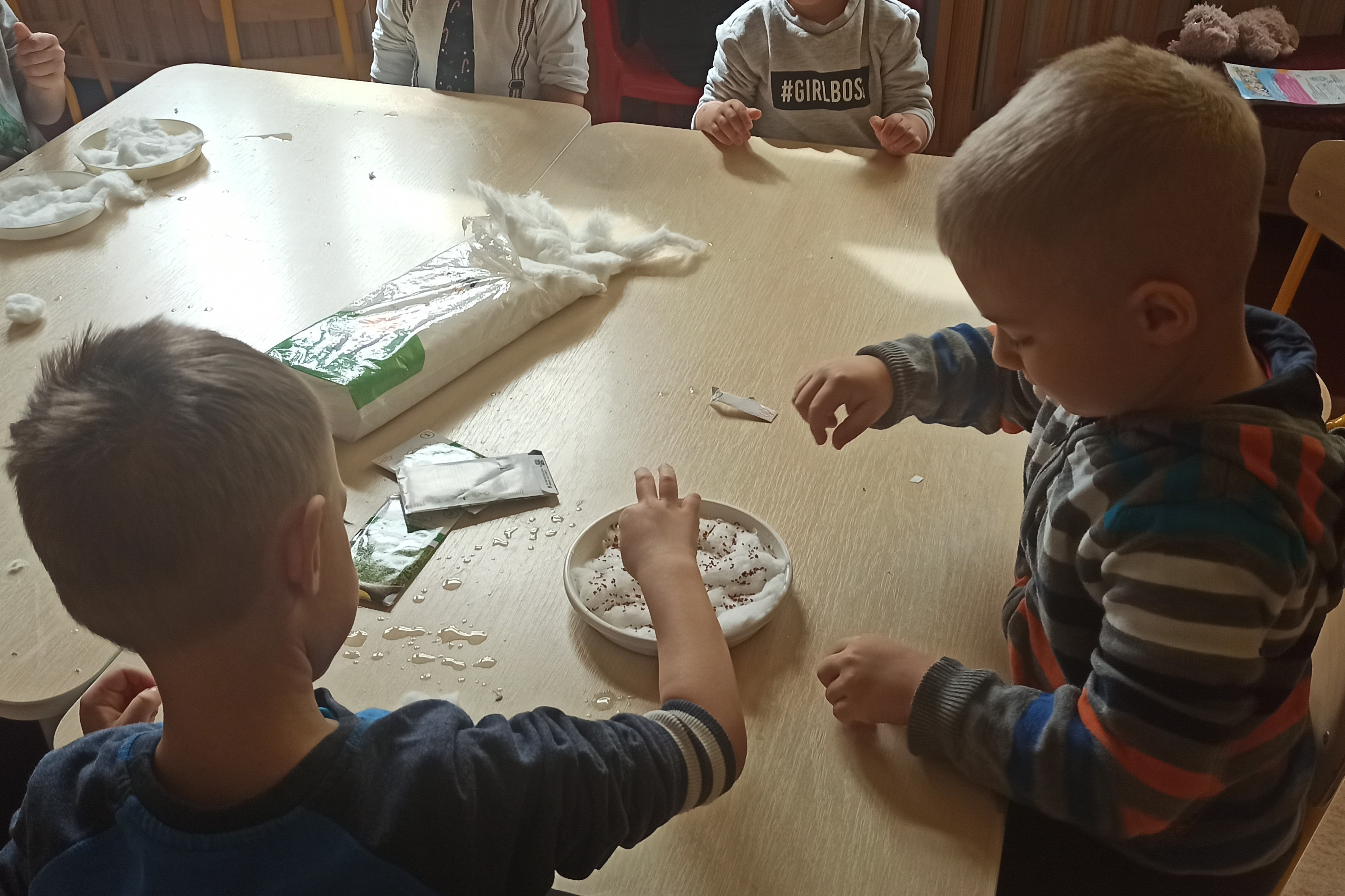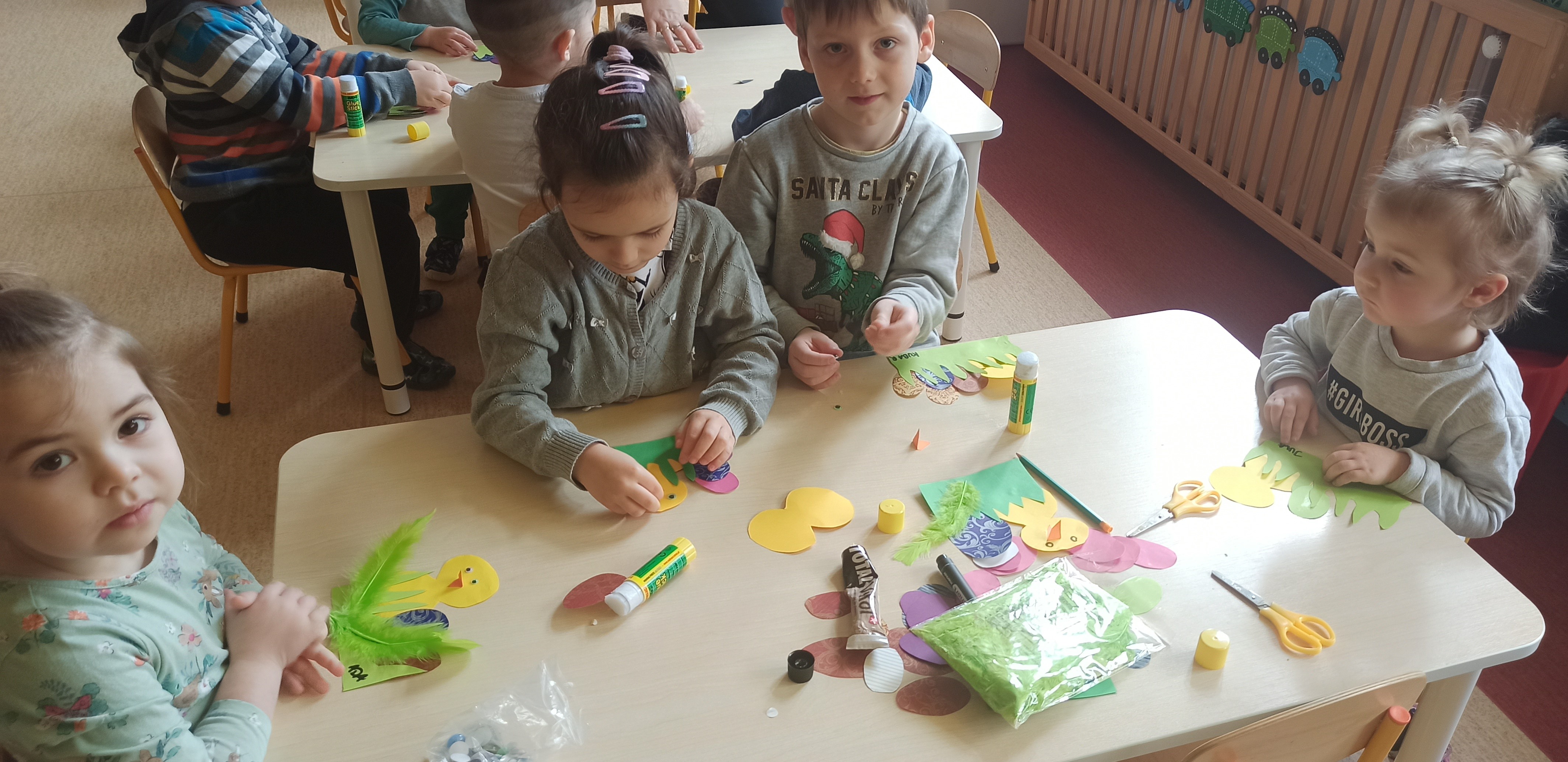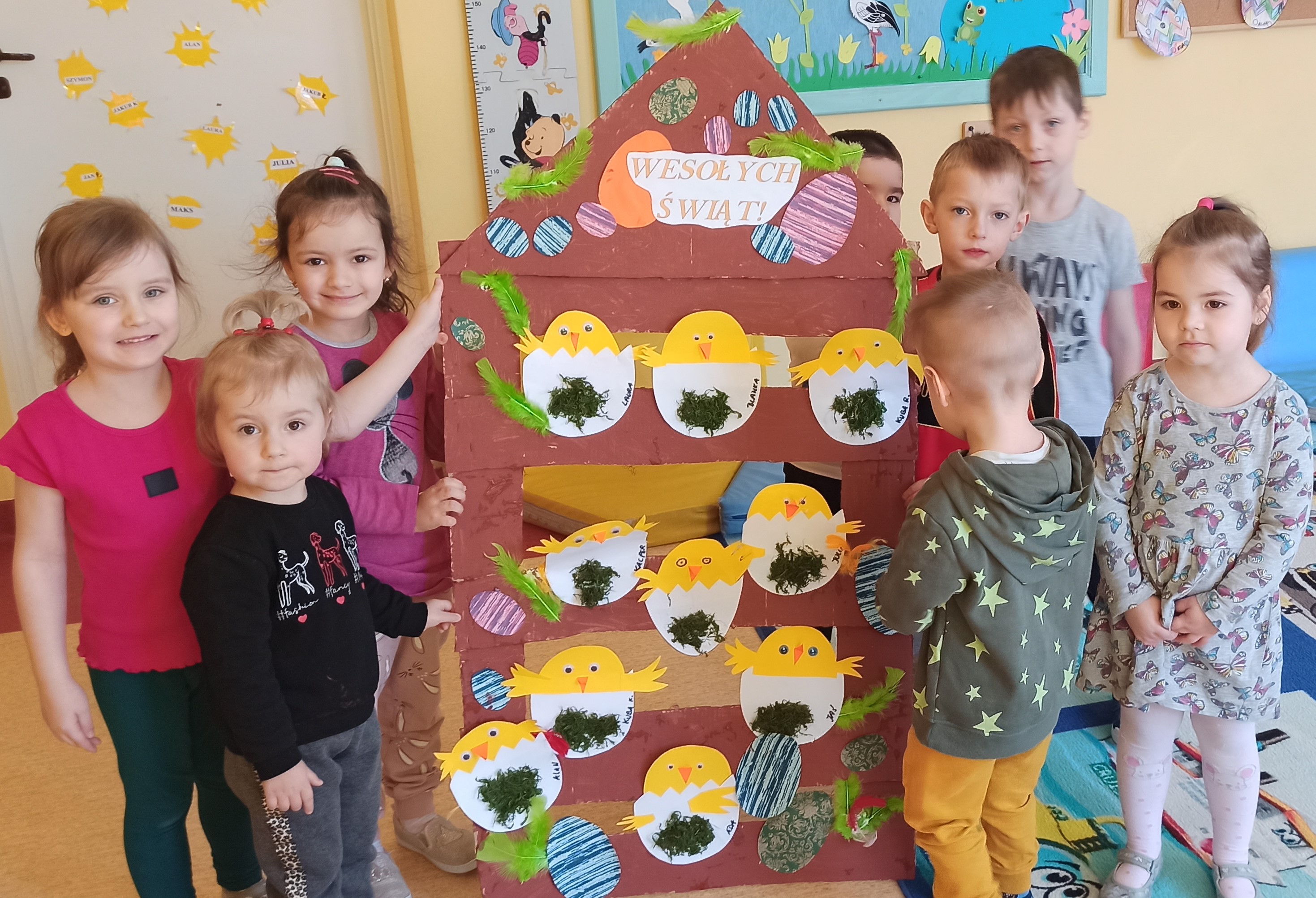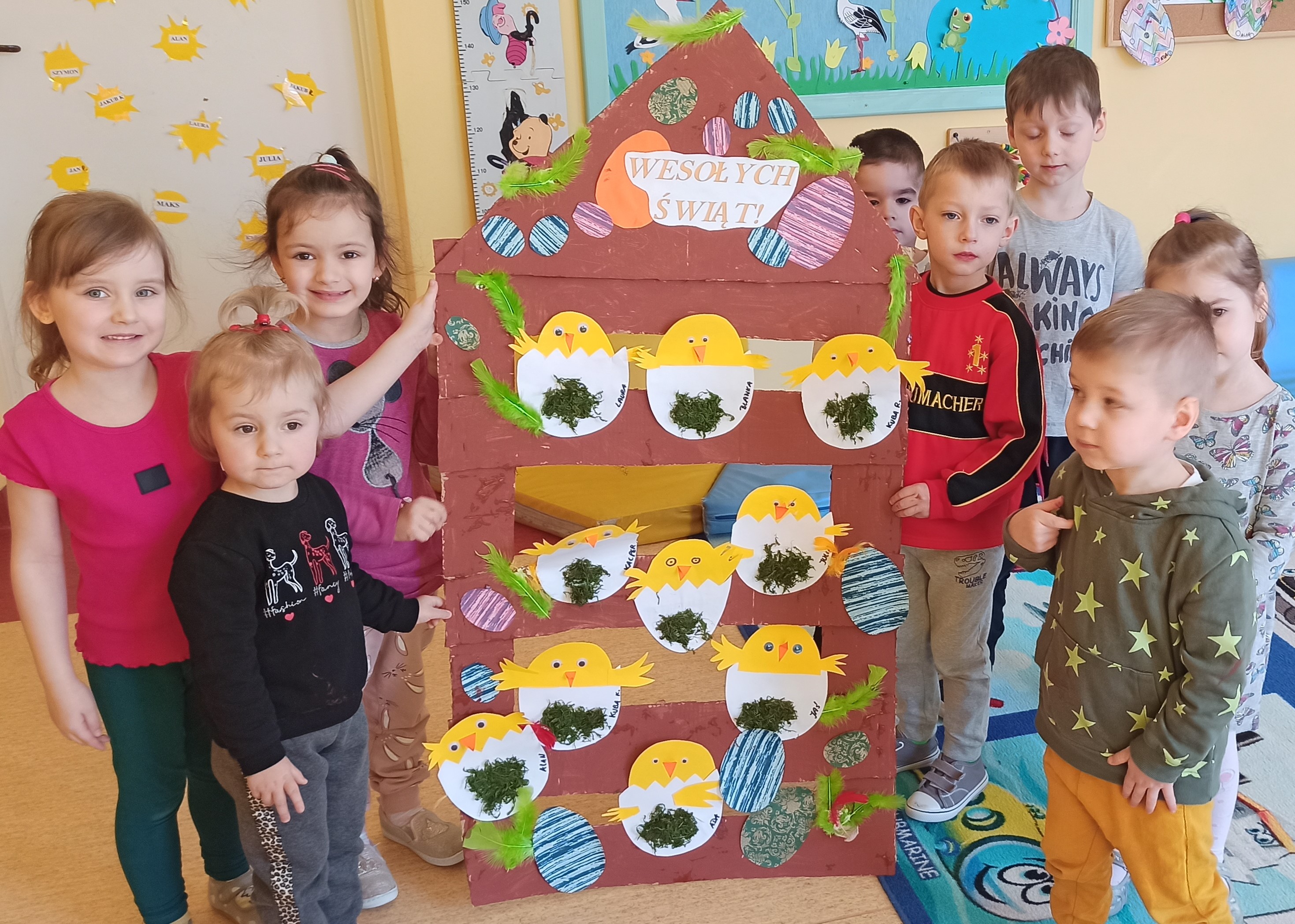 Maluchy oraz dzieci z oddziału „0” wykonały piękne, żółte pisklaki. Miały okazję poznać zwyczaj siania rzeżuchy, nie zabrakło „Śmigusa- dyngusa”, pokarmów, które wkładamy do wielkanocnej święconki. Malowanie pisanek, nauka wierszyka „Cukrowy baranek”, składanie życzeń to wszystko dzieci miały okazję poznać w przedszkolu.