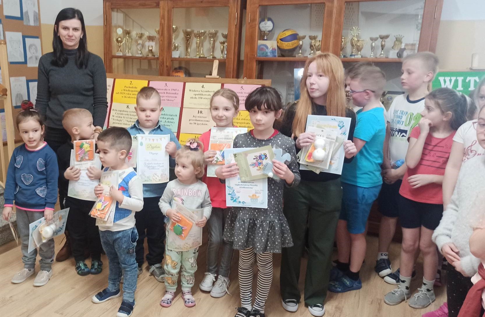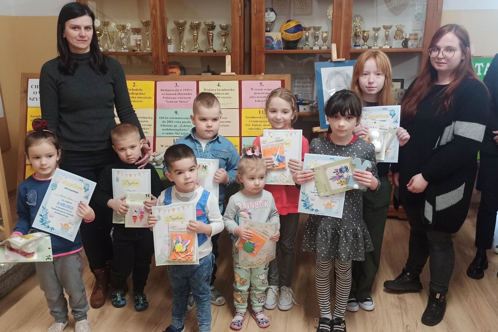 Technika wykonywania prac była dowolna. Dzieci wraz z rodzicami licznie zaangażowały się w pięknie wykonane prace oraz pisanki.