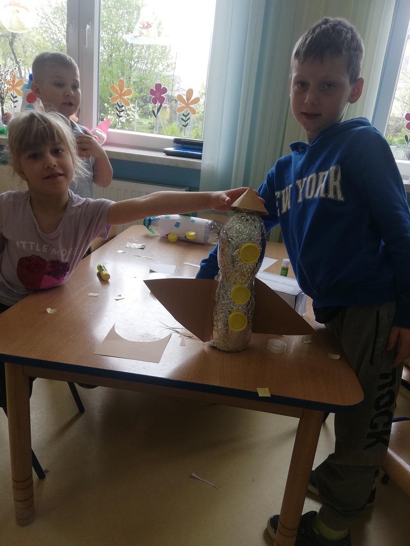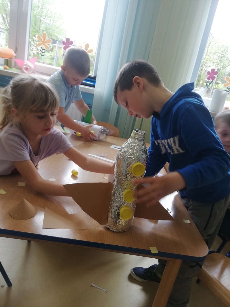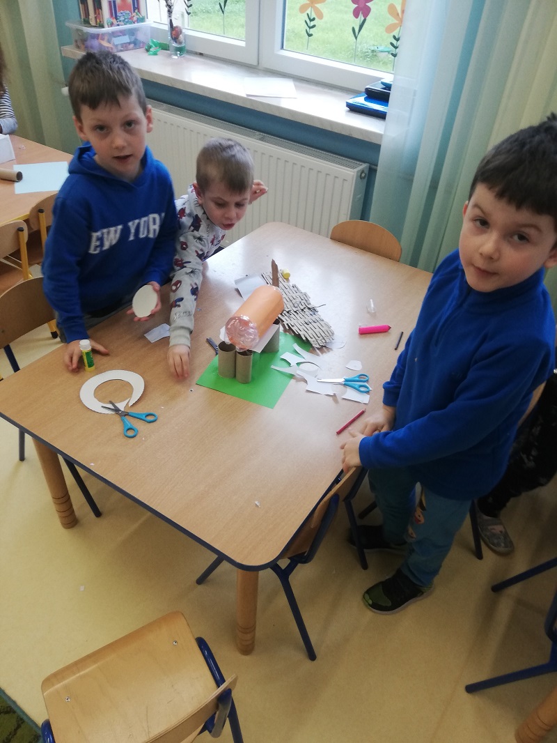 Do ich budowy wykorzystano: tekturowe opakowania, plastikowe butelki, nakrętki i inne tworzywa powszechnie wyrzucanie do śmieci. Wszystkie te zadania miały na celu podkreślenie, jak ważne jest nasze zaangażowanie w działania na rzecz naszej planety.