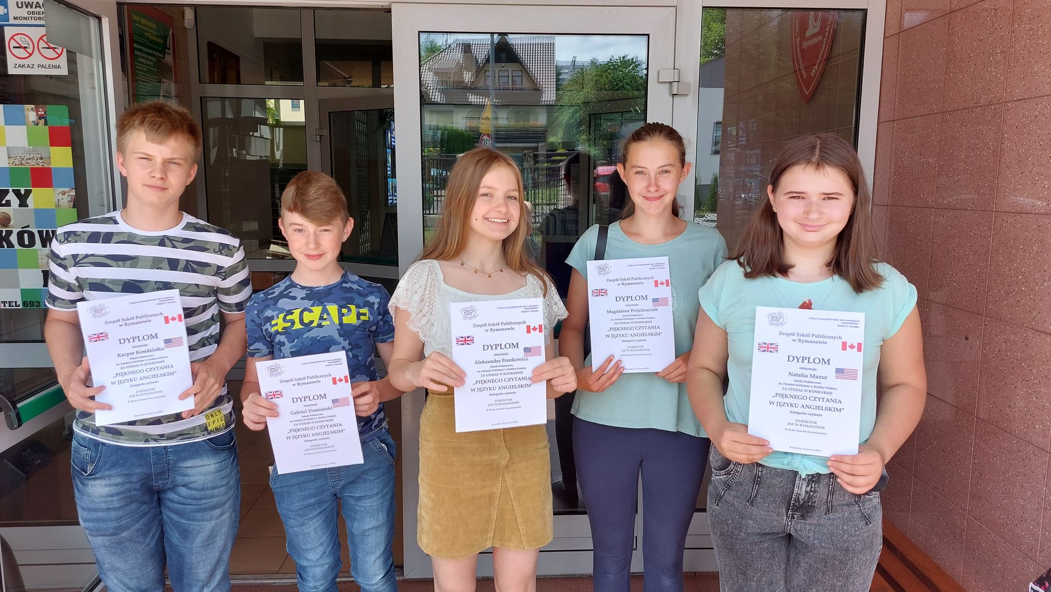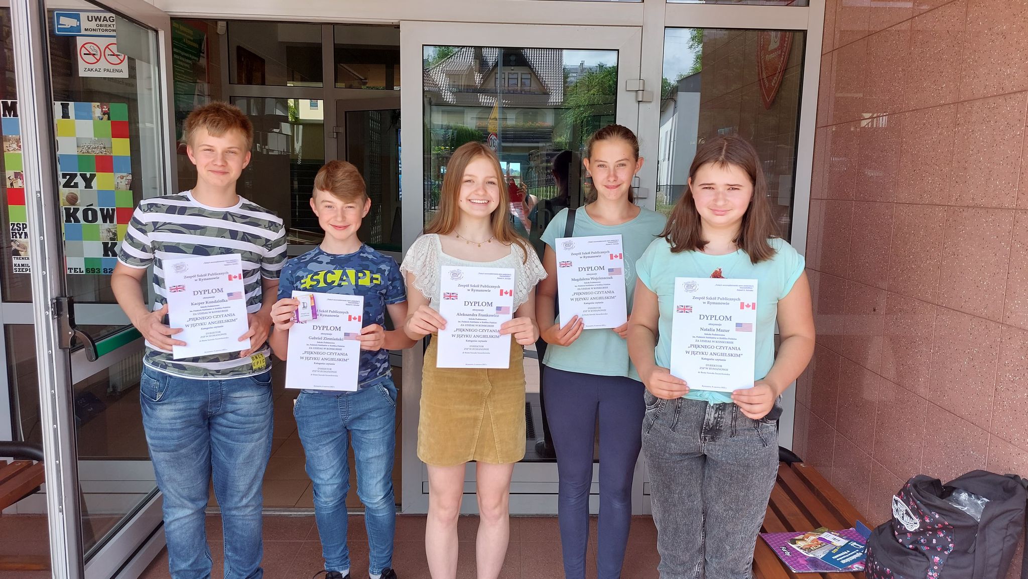 W dniu 8 czerwca 2022 roku pięcioro uczniów z naszej szkoły wzięło udział w konkursie pięknego czytania w języku angielskim zorganizowanym przez ZSP w Rymanowie. Byli to: Aleksandra Frankowicz z klasy 8 oraz uczniowie z klasy 7: Natalia Mazur, Magdalena Wojcieszczak, Kacper Kondziołka oraz Gabriel Ziemiański. Udział w konkursie był dla uczniów cennym doświadczeniem, pozwolił popracować nad płynnością czytania w języku angielskim oraz nabrać pewności, że nauka języków w dzisiejszym świecie jest po prostu niezbędna.
