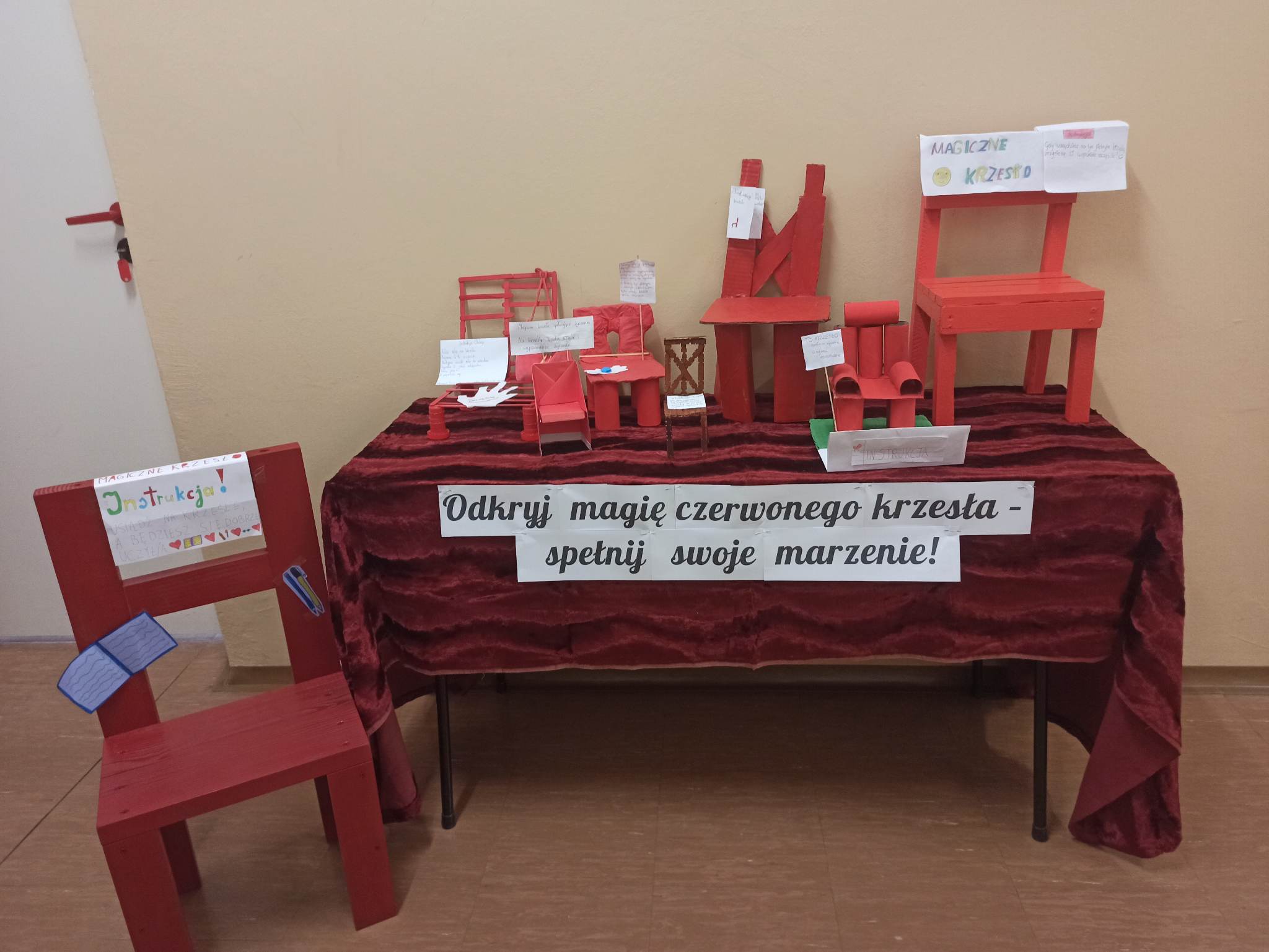 Każdy chciałby mieć magiczne krzesło, które spełniałoby wszystkie marzenia… W naszej szkole dzięki uczniom klasy IV stało się to możliwe... Galeria czerwonych krzeseł, która powstała na szkolnym korytarzu, jest efektem wspólnego odkrywania świata fantazji podczas lekcji języka polskiego z lekturą „Magiczne drzewo. Czerwone krzesło” Andrzeja Maleszki.