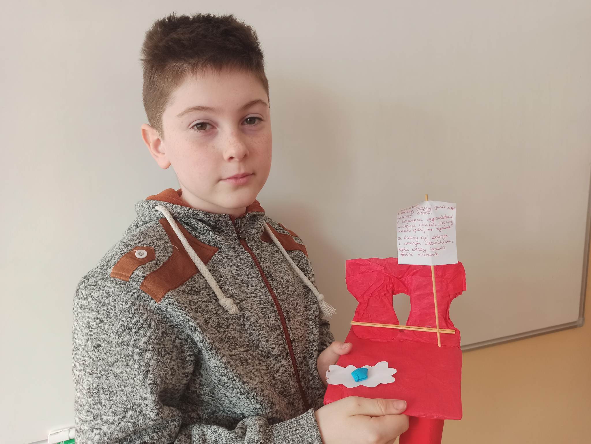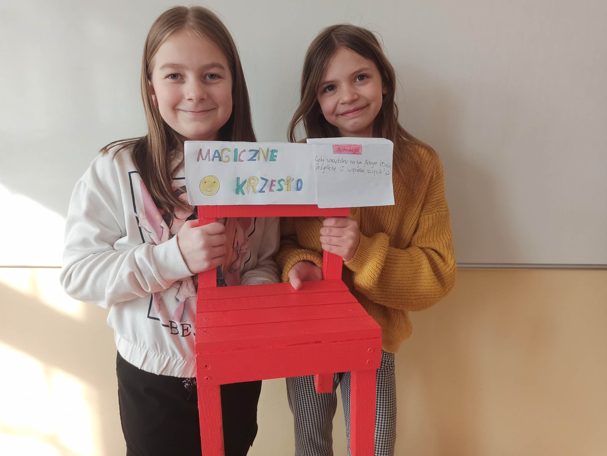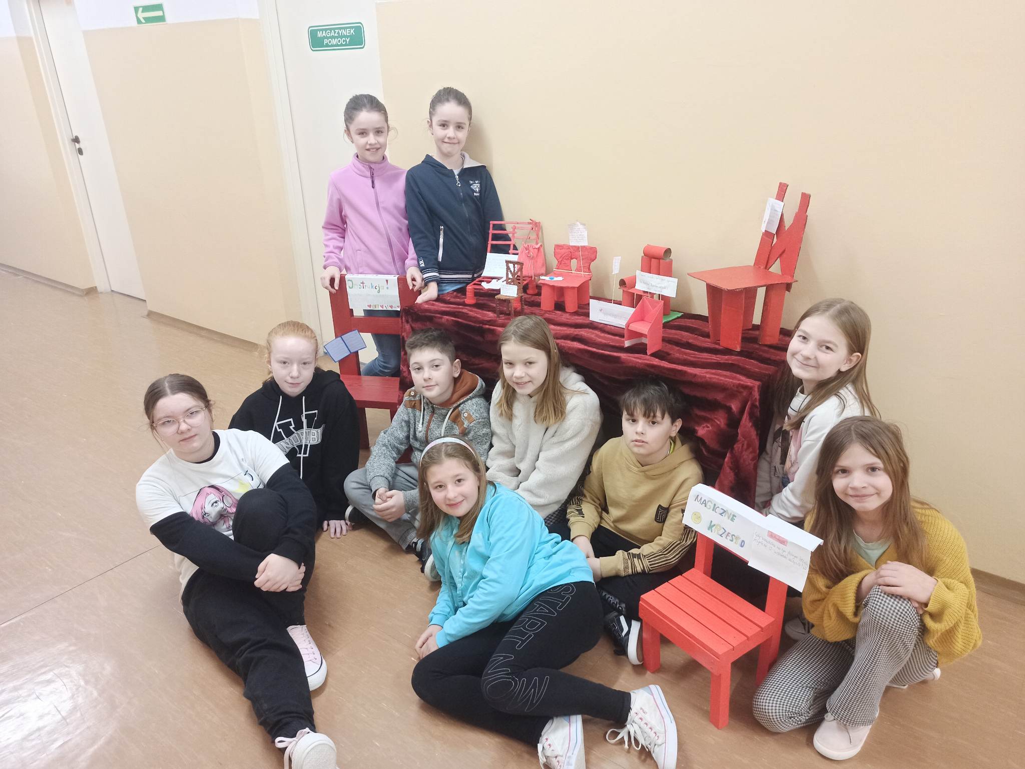Nasi czwartoklasiści to uczniowie niezwykle kreatywni, dlatego z wielkim zaangażowaniem przystąpili do realizacji niełatwego projektu i stworzyli własne magiczne, koniecznie czerwone, siedziska. Wierząc w ich moc, starannie je zbijali, kleili i malowali. W ten sposób powstała galeria krzeseł, stołków, tronów, foteli i leżaków… wraz z instrukcją obsługi do spełniania życzeń. Zwieńczeniem projektu były wspaniałe opowiadania twórcze na temat tego niezwykłego przedmiotu.