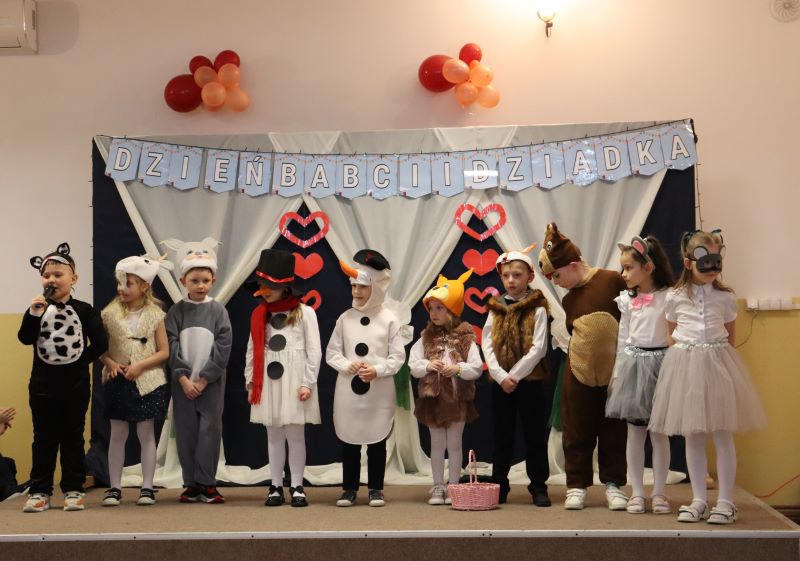 Program artystyczny był bardzo bogaty. Rozpoczął się występami przedszkolaków, którzy tańczyli, śpiewali piosenki dla ukochanych babć i dziadków. Po nich również w tańcu, inscenizacji, wierszach i piosence zaprezentowali się uczniowie kl. 0 – III. Wszyscy dziadkowie z dumą patrzyli na swoje wnuczęta, które włożyły wiele wysiłku w to, aby jak najlepiej wyrazić swoją miłość i szacunek oraz podziękować dziadkom za cierpliwość, zrozumienie i opiekę, a przede wszystkim za czas, który zawsze mają dla swoich wnuków.