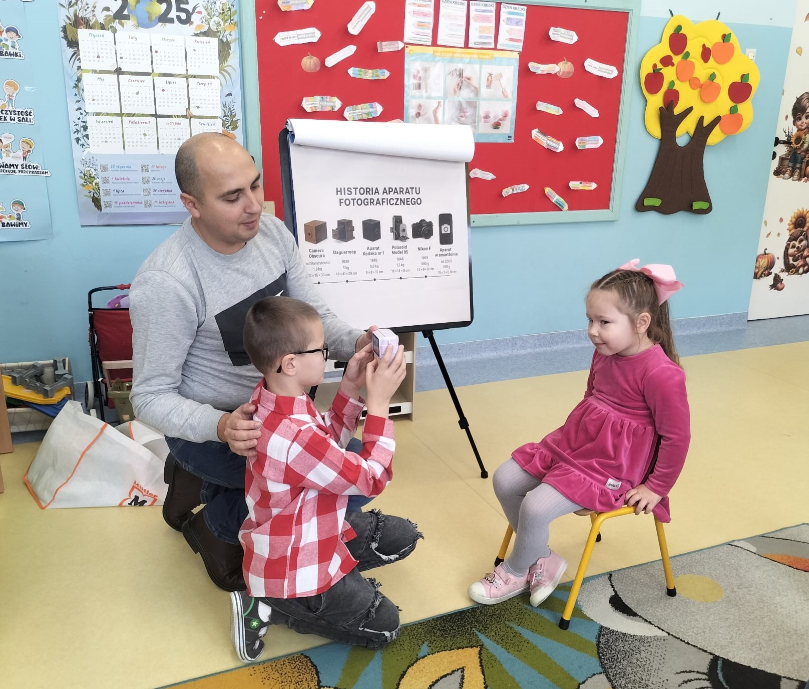 Dzieci miały możliwość zapoznania się z aparatem fotograficznym oraz zasadami, które pomagają uchwycić najlepsze ujęcia. Największą atrakcją okazała się część praktyczna – każdy mógł zrobić zdjęcie swojej koleżance lub koledze, a następnie wydrukować własną fotografię i zabrać ją na pamiątkę.