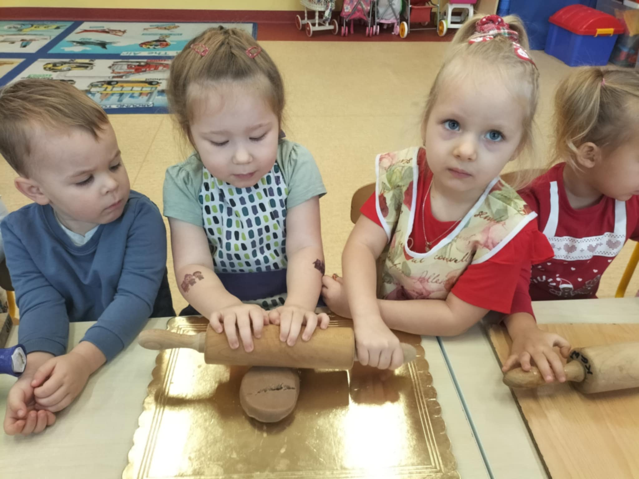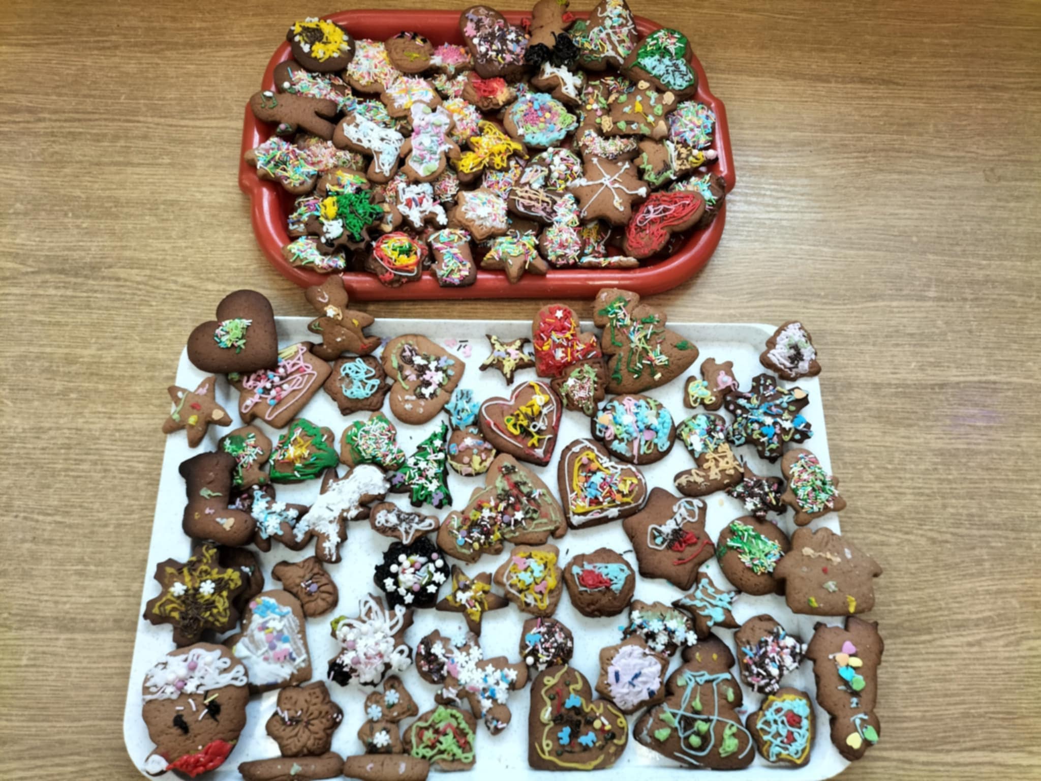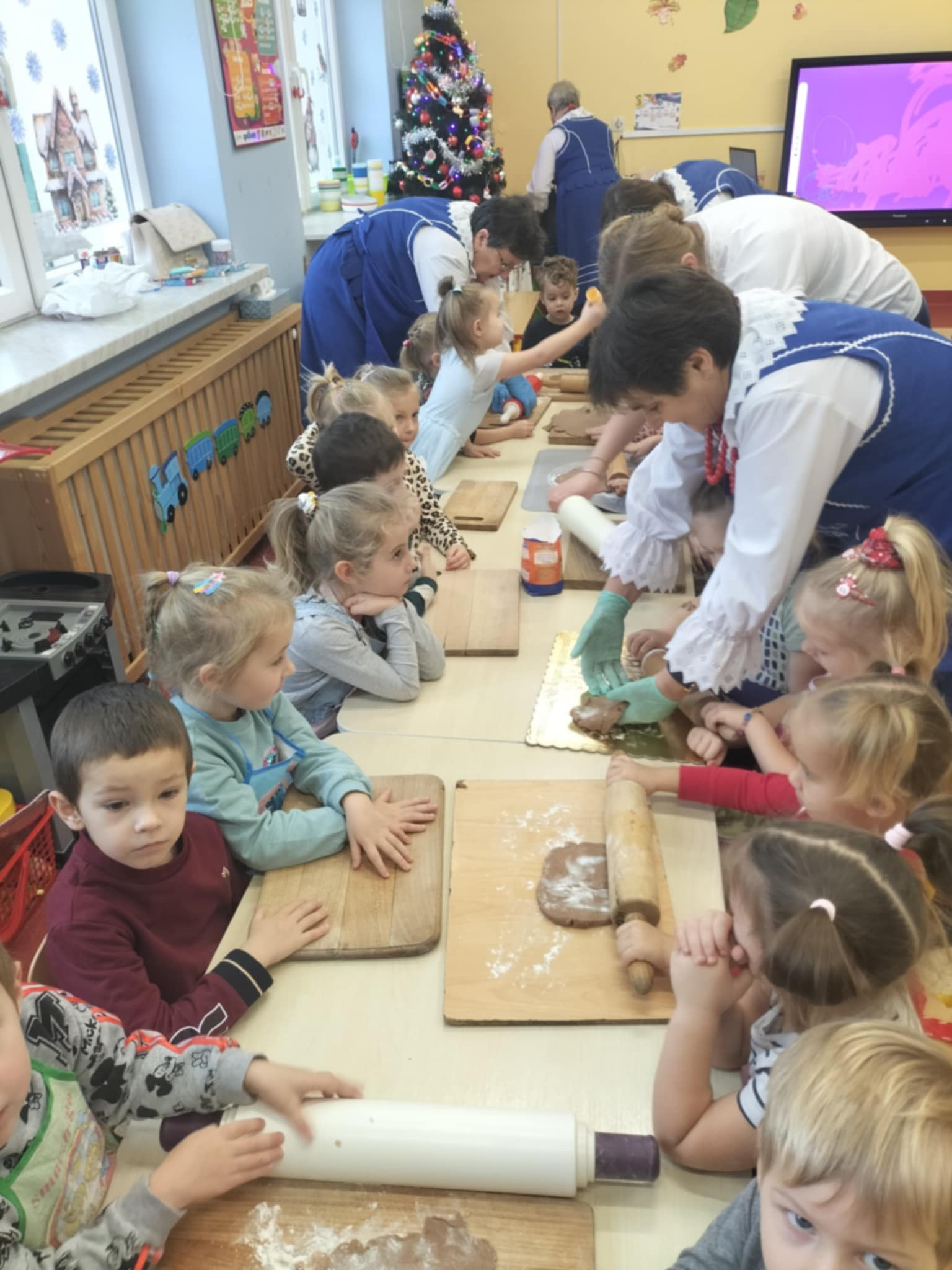 Panie na początku opowiedziały o tradycji związanej z pieczeniem pierniczków i pokazały, z jakich składników wykonuje się ciasto. Następnie dzieci otrzymały po kawałku ciasta, z którego przy pomocy Pań wykrawały pierniczki. Dzieci z niecierpliwością oczekiwały aż pierniki się upieką i będzie można je udekorować. Radości nie było końca!
