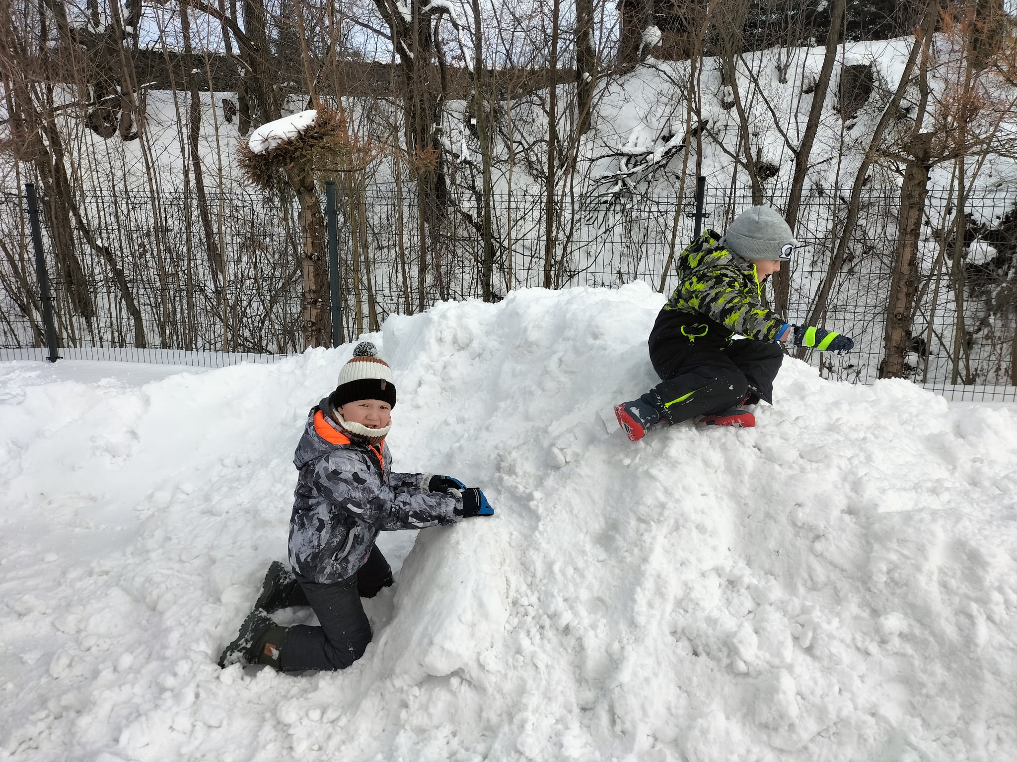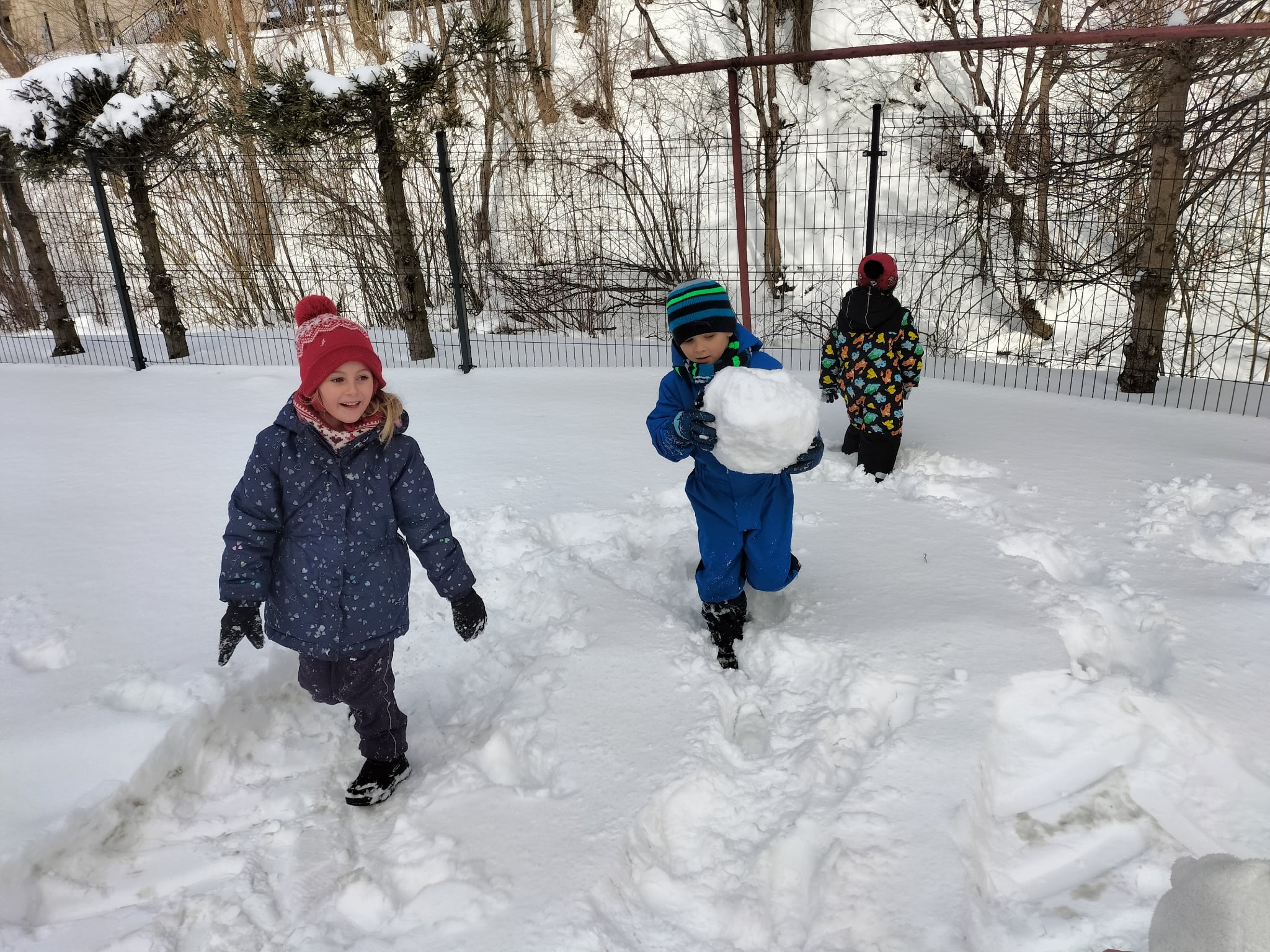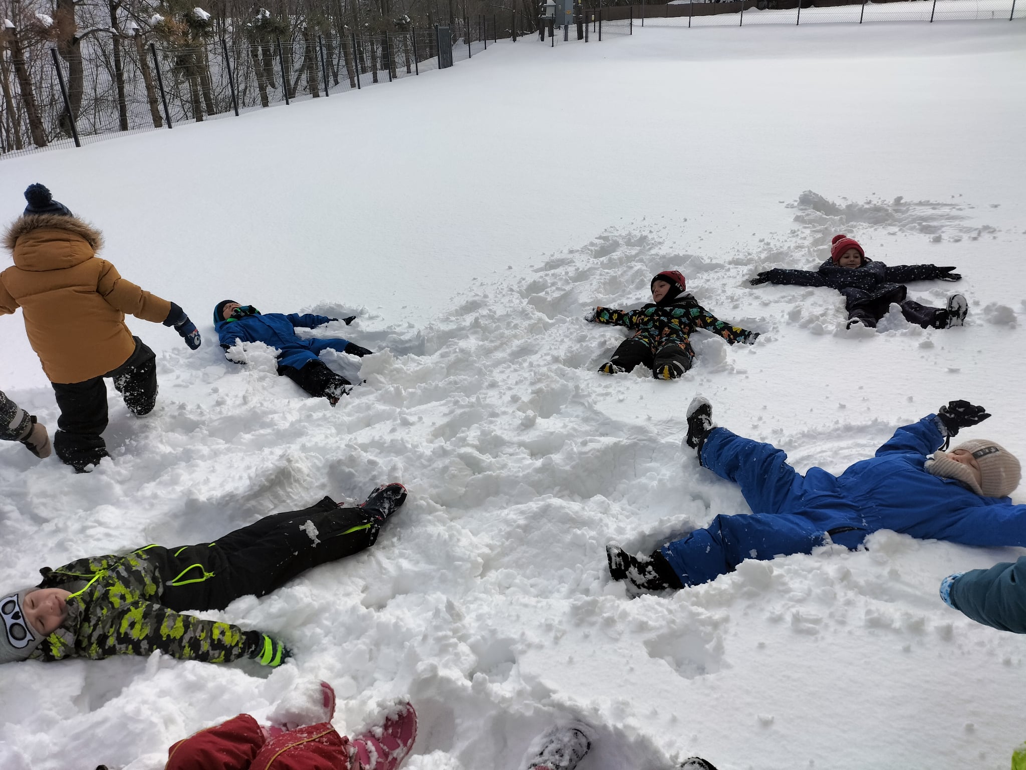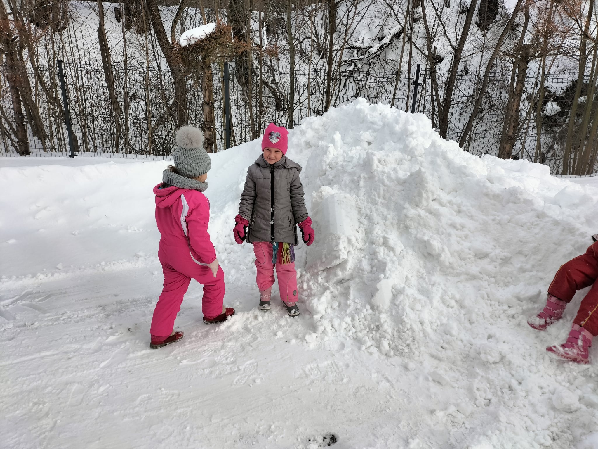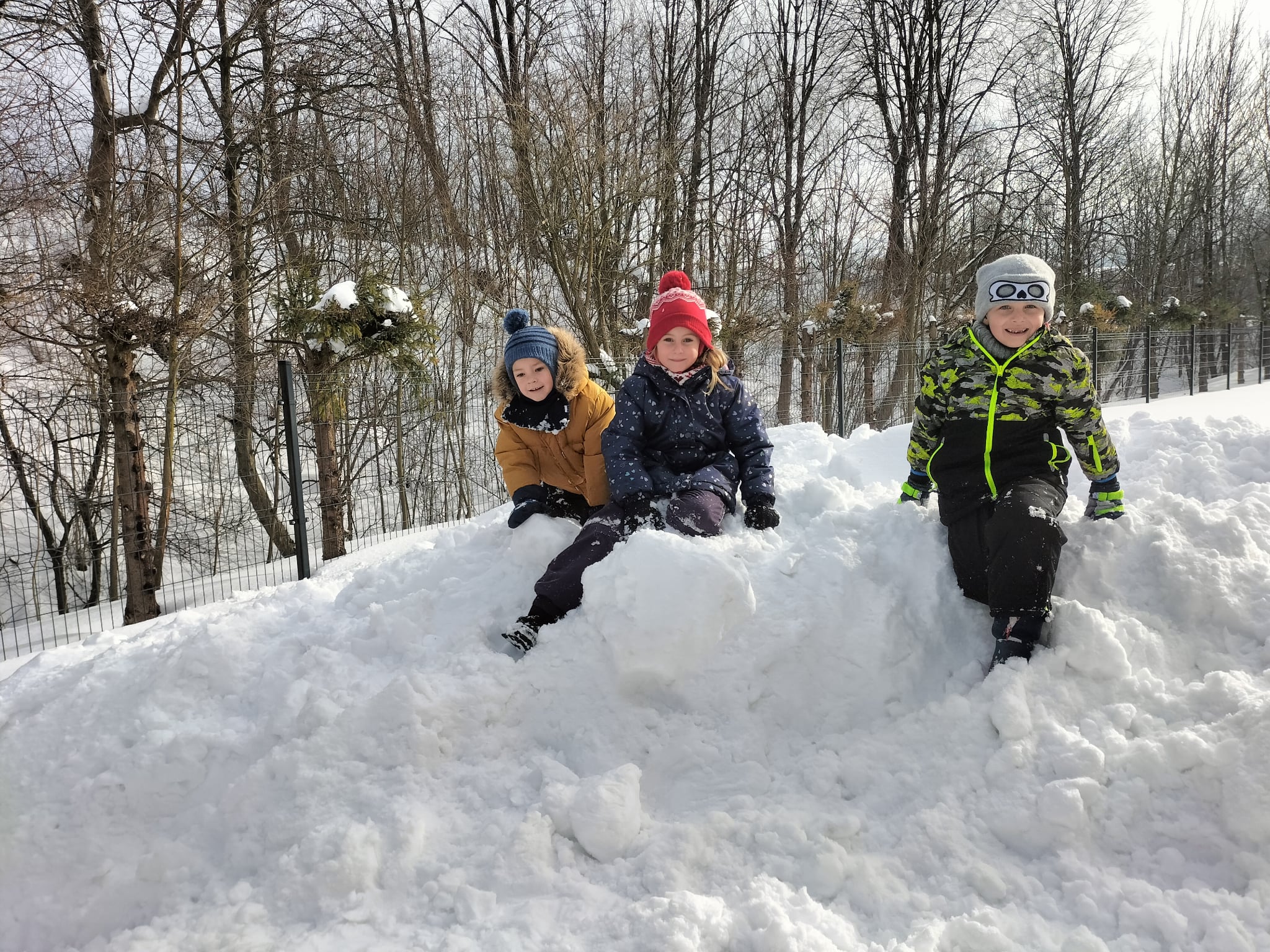 Dziś dzieci z grupy zerówkowej radośnie bawiły się na śniegu, korzystając z zimowej aury. Było dużo ruchu, uśmiechu i dobrej zabawy.
